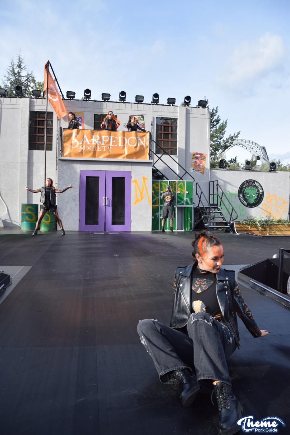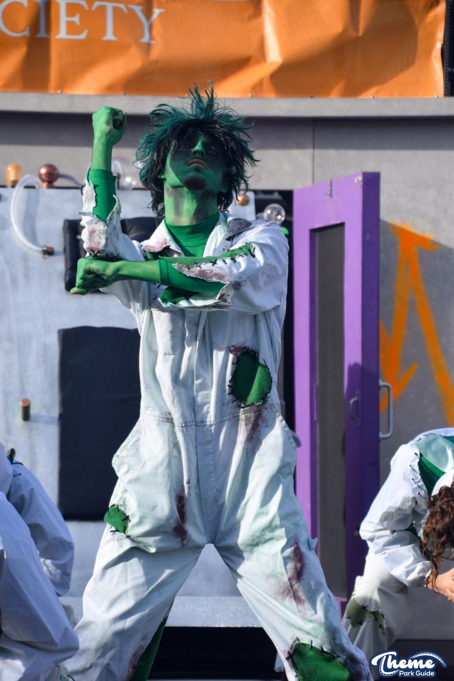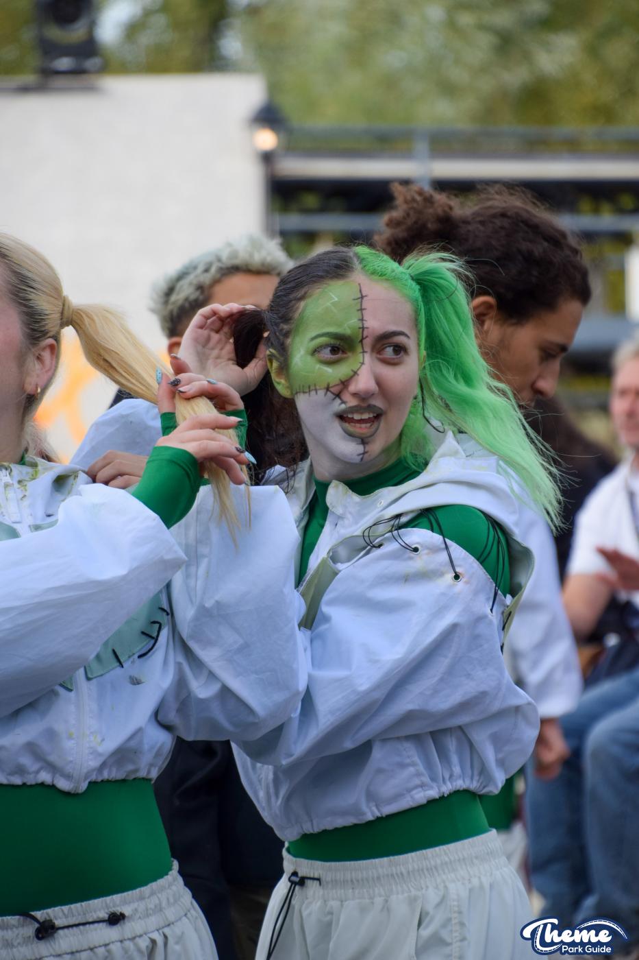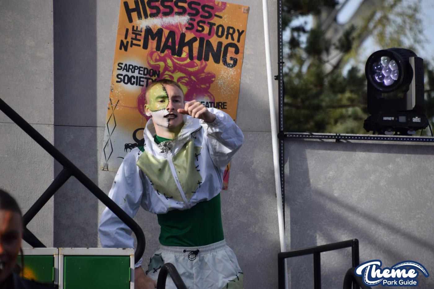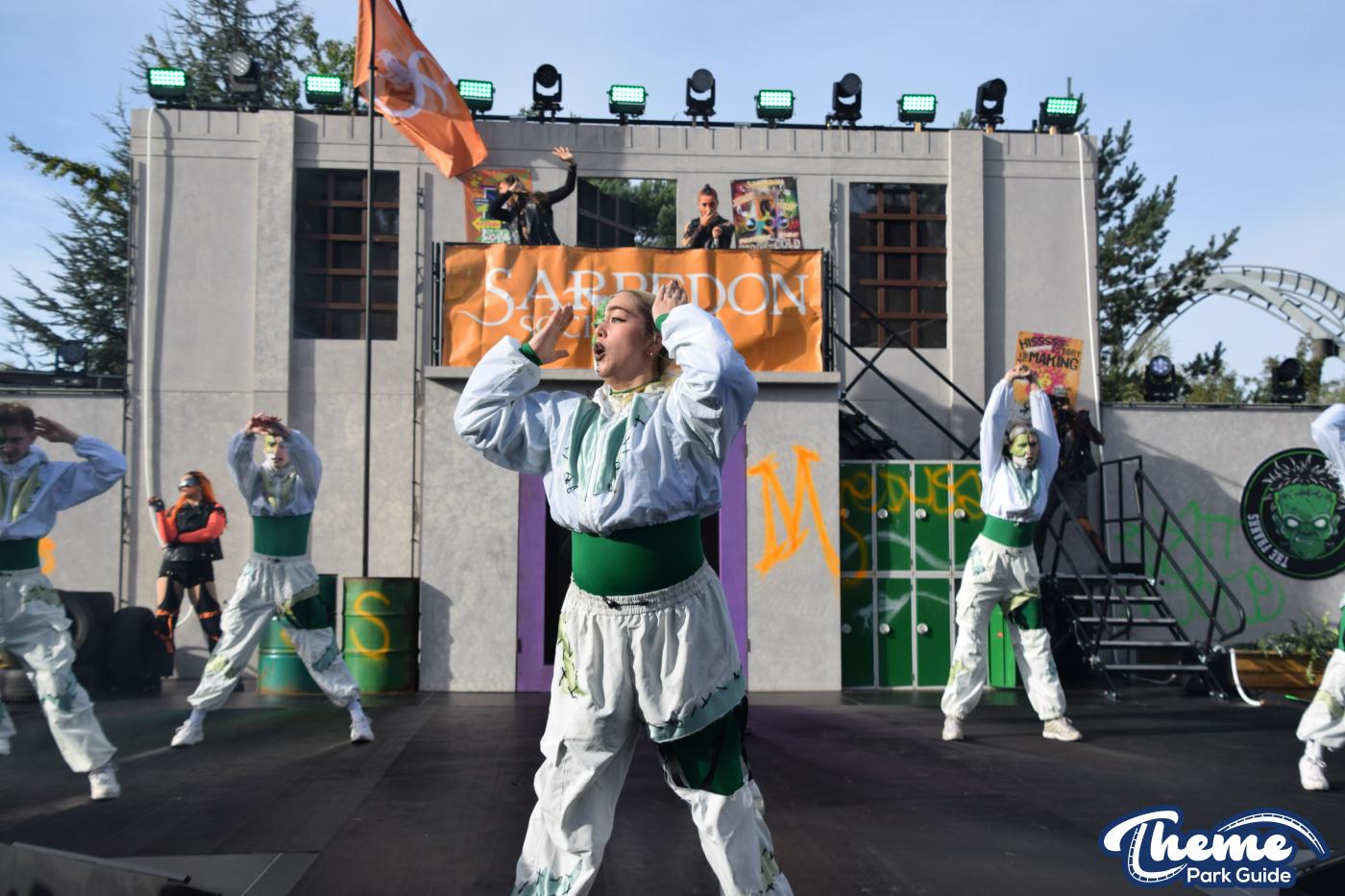 The showpiece of 2025 is undoubtedly Creature Campus: Shock to the System, a reinvention of Thorpe Park’s live entertainment. The stage has been raised, providing excellent sightlines for audiences, and the lighting rig is astonishing – brighter, bolder, and more dynamic than anything seen before at Fright Nights.
