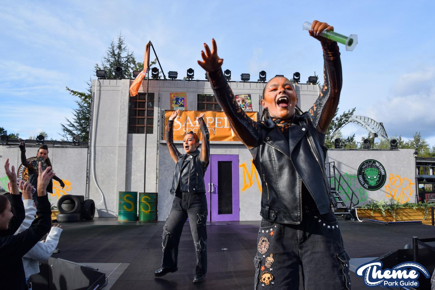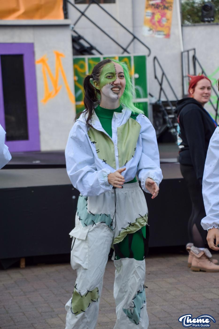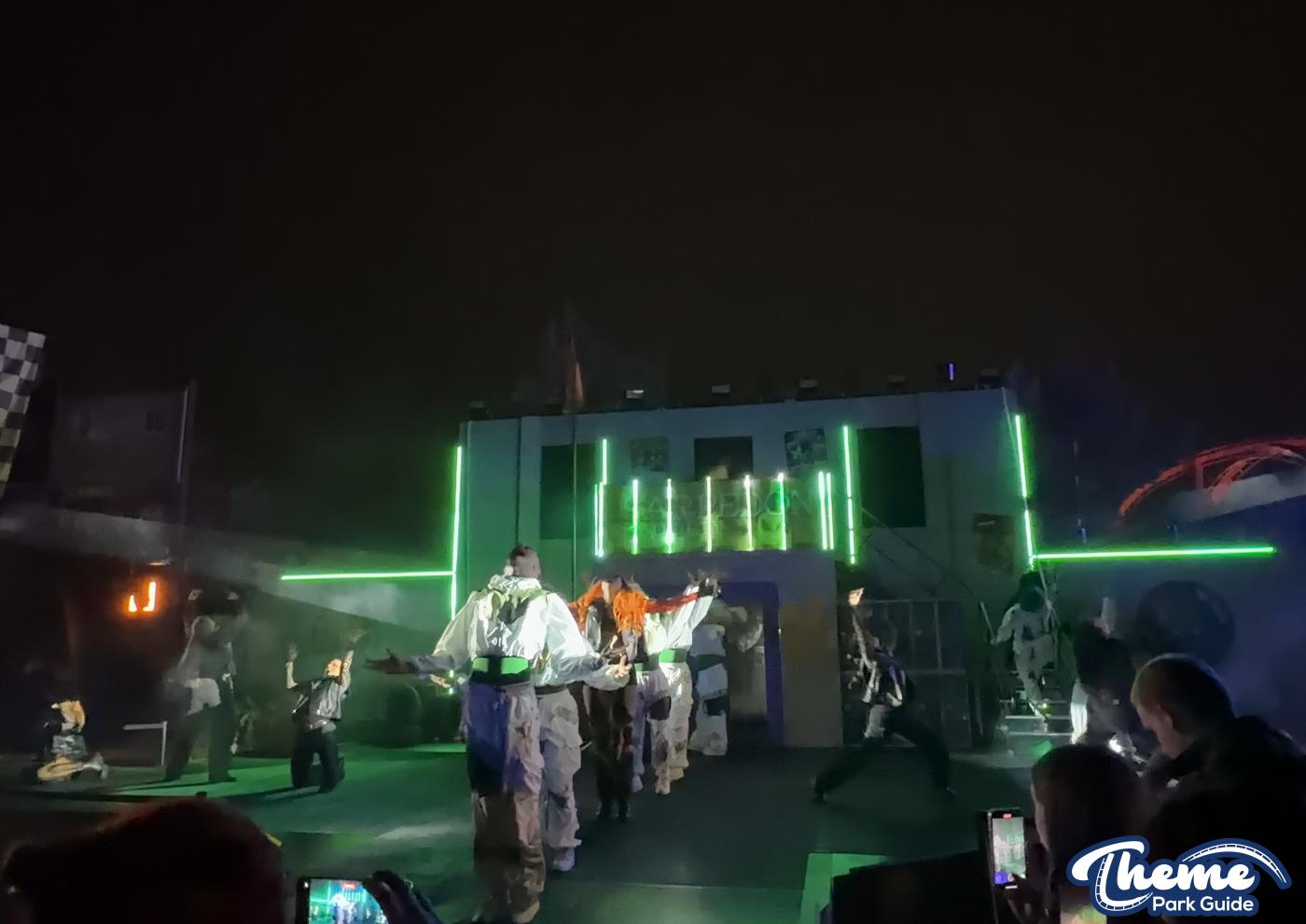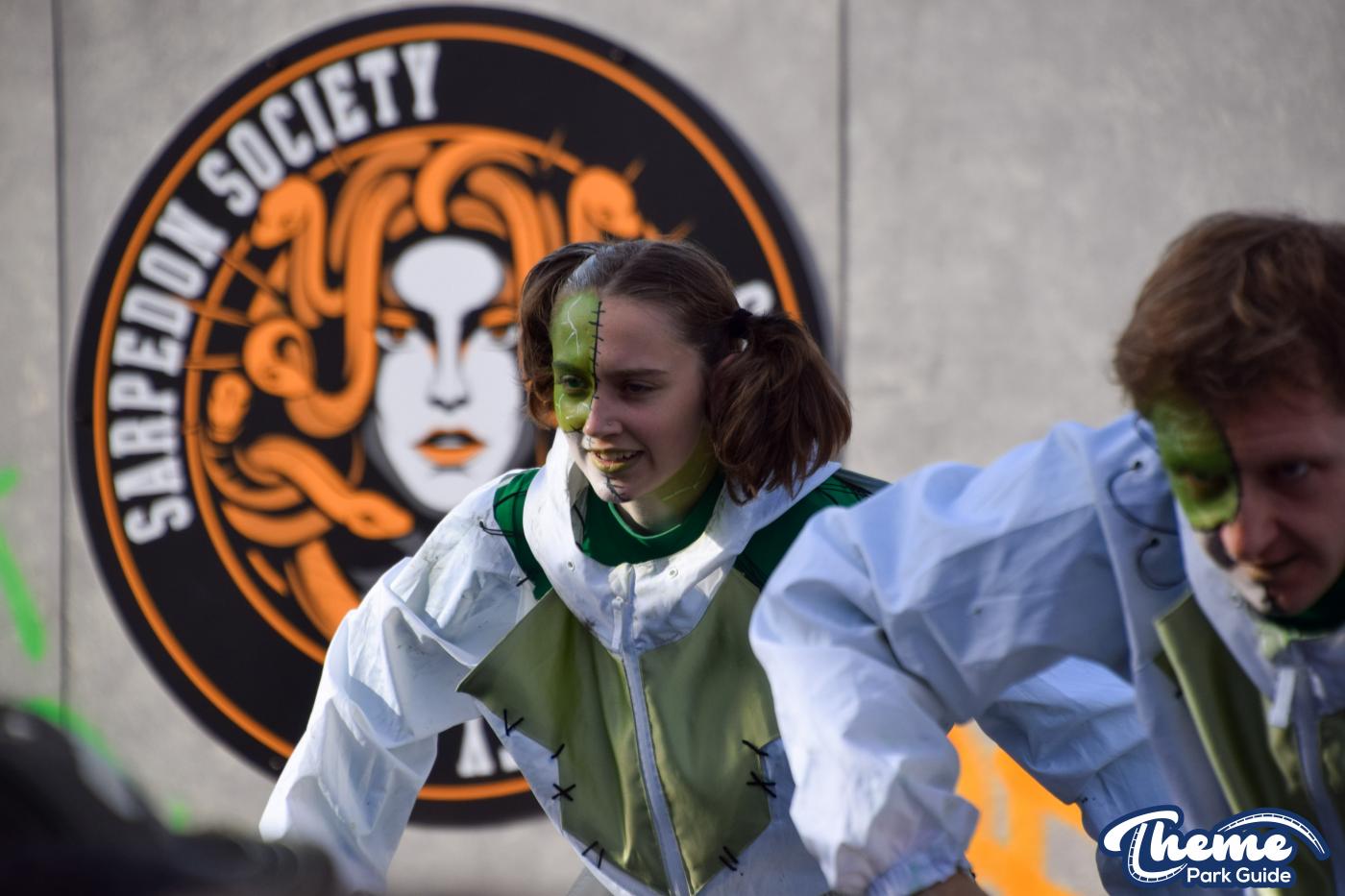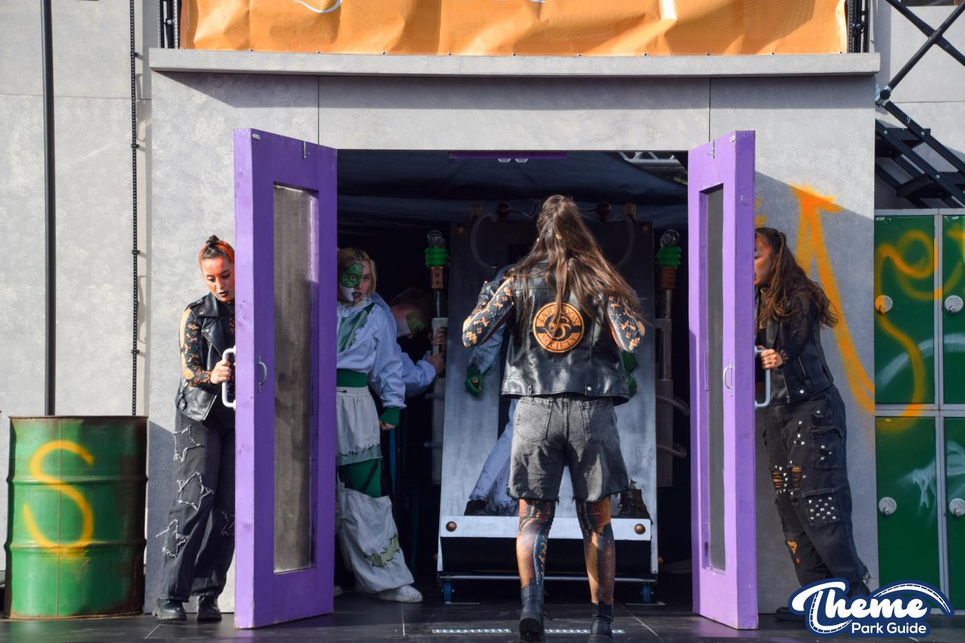 The showpiece of 2025 is undoubtedly Creature Campus: Shock to the System, a reinvention of Thorpe Park’s live entertainment. The stage has been raised, providing excellent sightlines for audiences, and the lighting rig is astonishing – brighter, bolder, and more dynamic than anything seen before at Fright Nights.