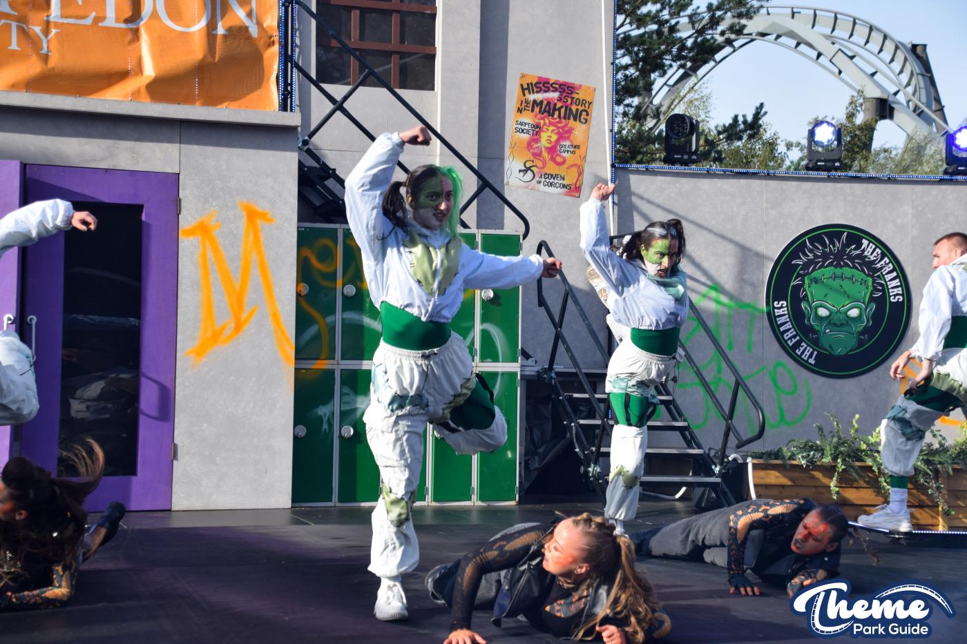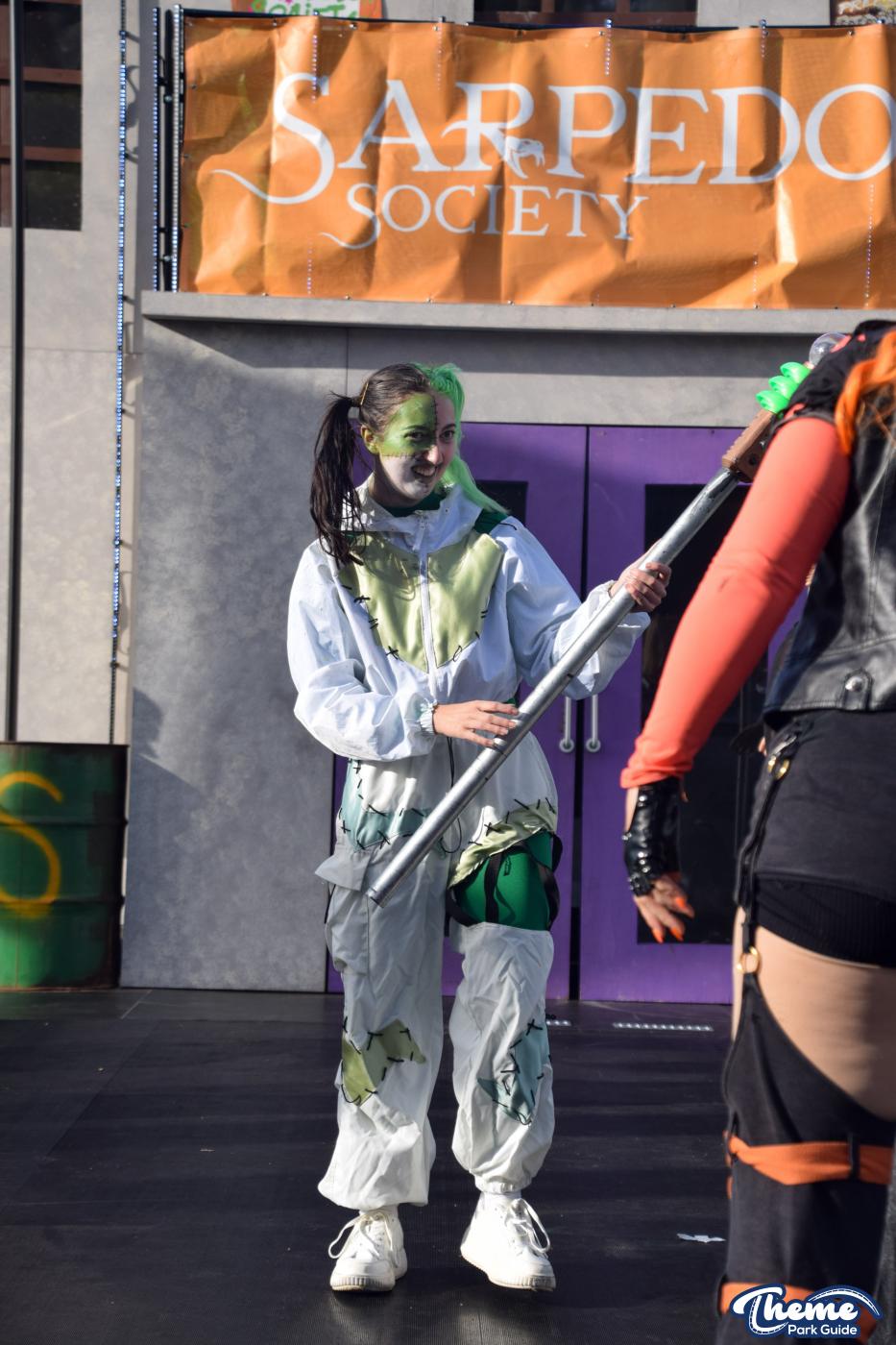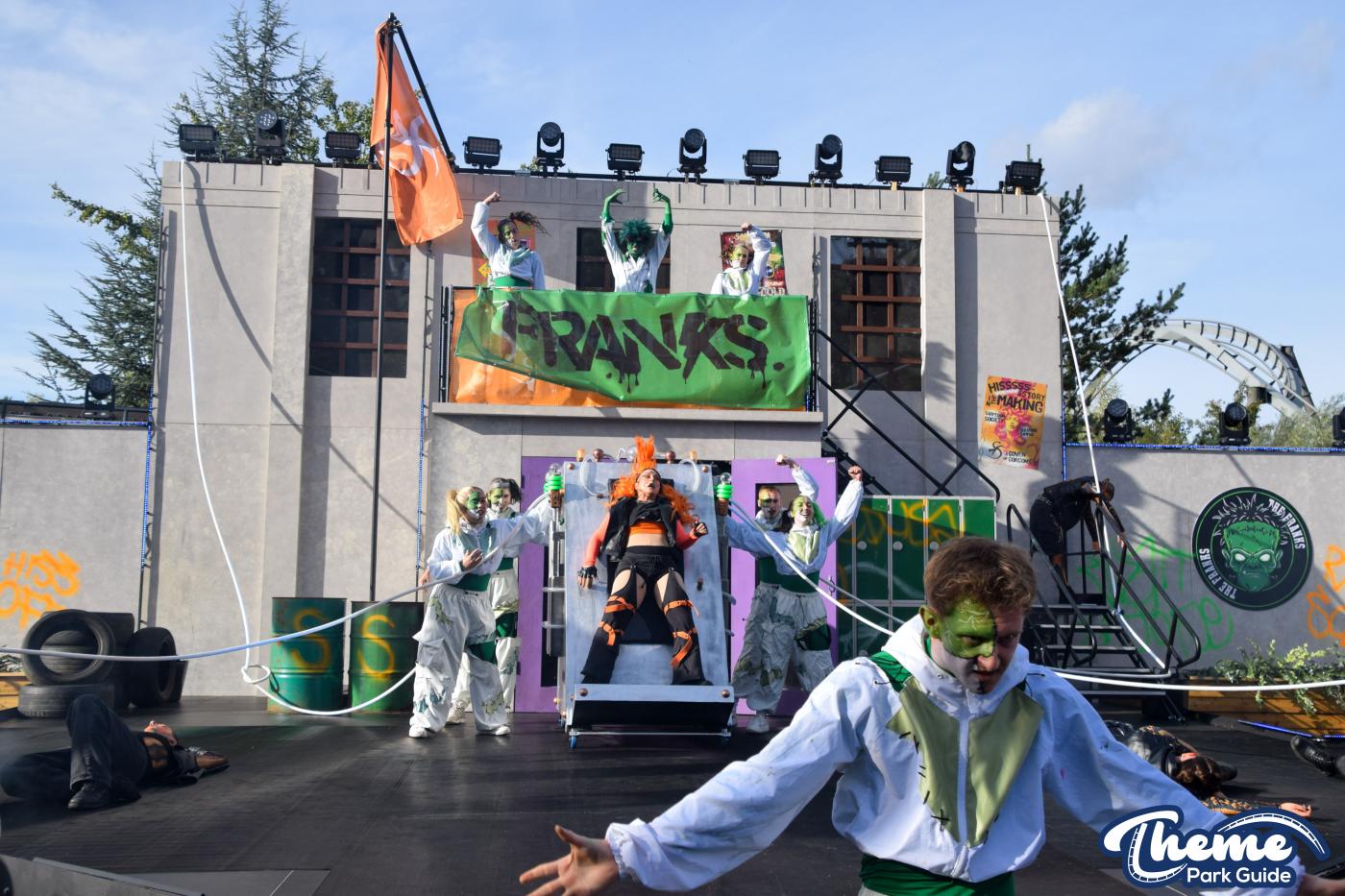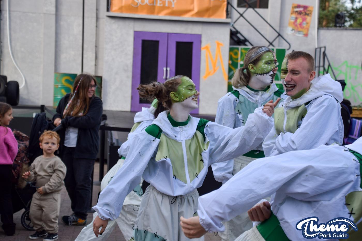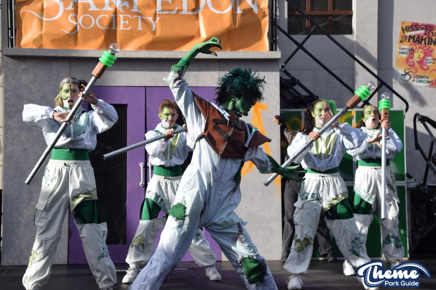 The showpiece of 2025 is undoubtedly Creature Campus: Shock to the System, a reinvention of Thorpe Park’s live entertainment. The stage has been raised, providing excellent sightlines for audiences, and the lighting rig is astonishing – brighter, bolder, and more dynamic than anything seen before at Fright Nights.