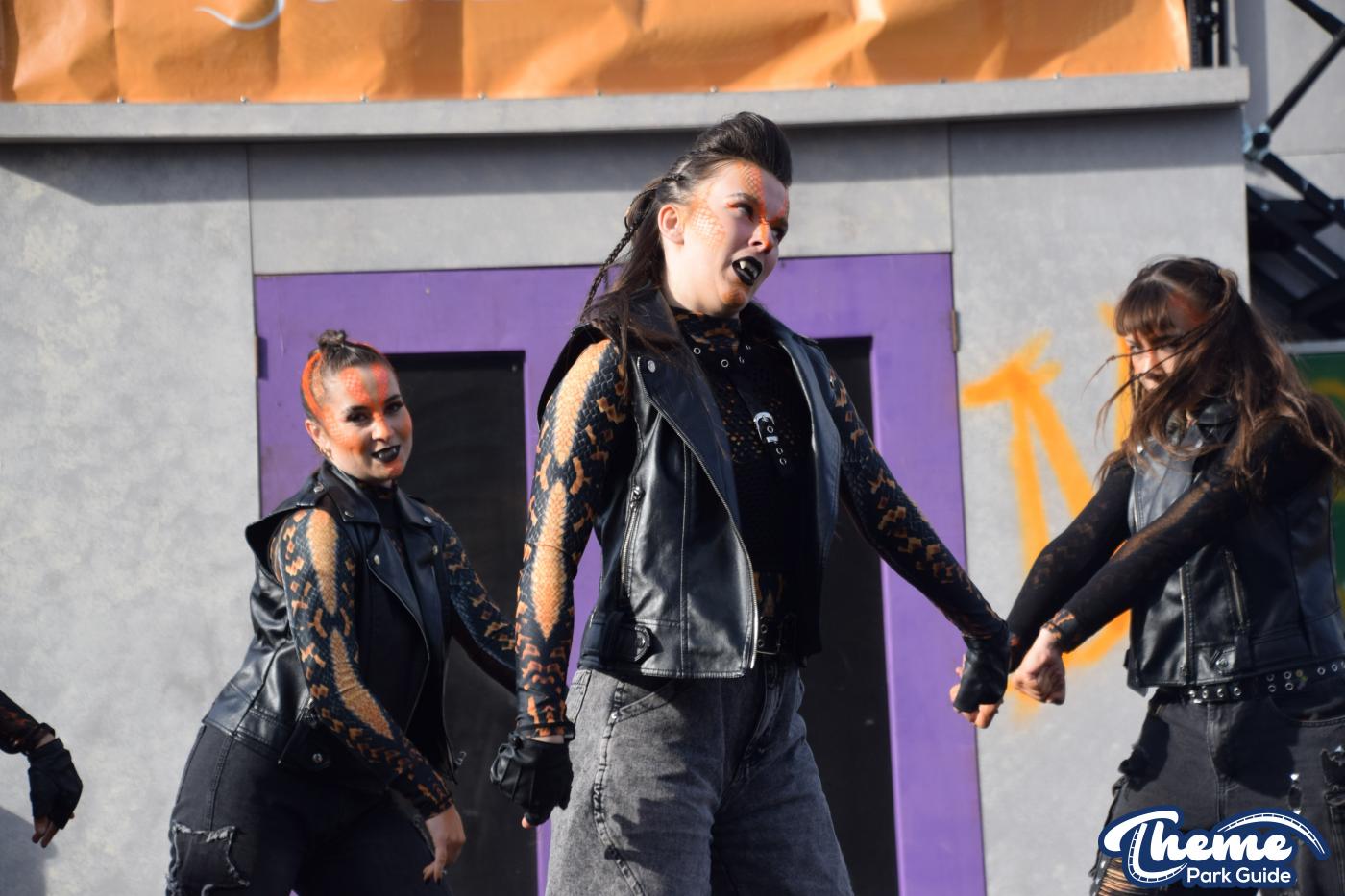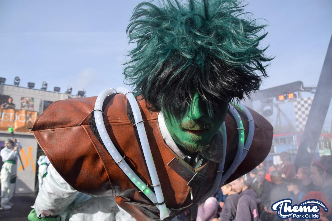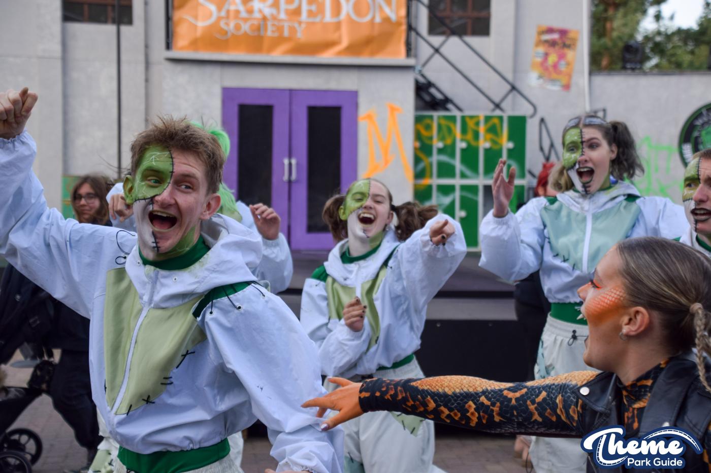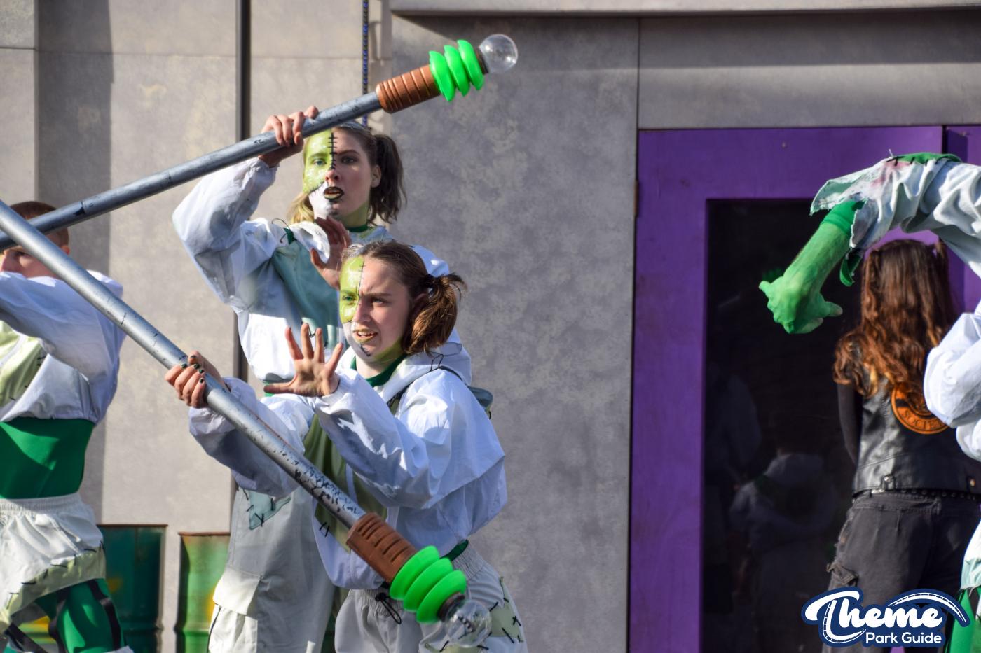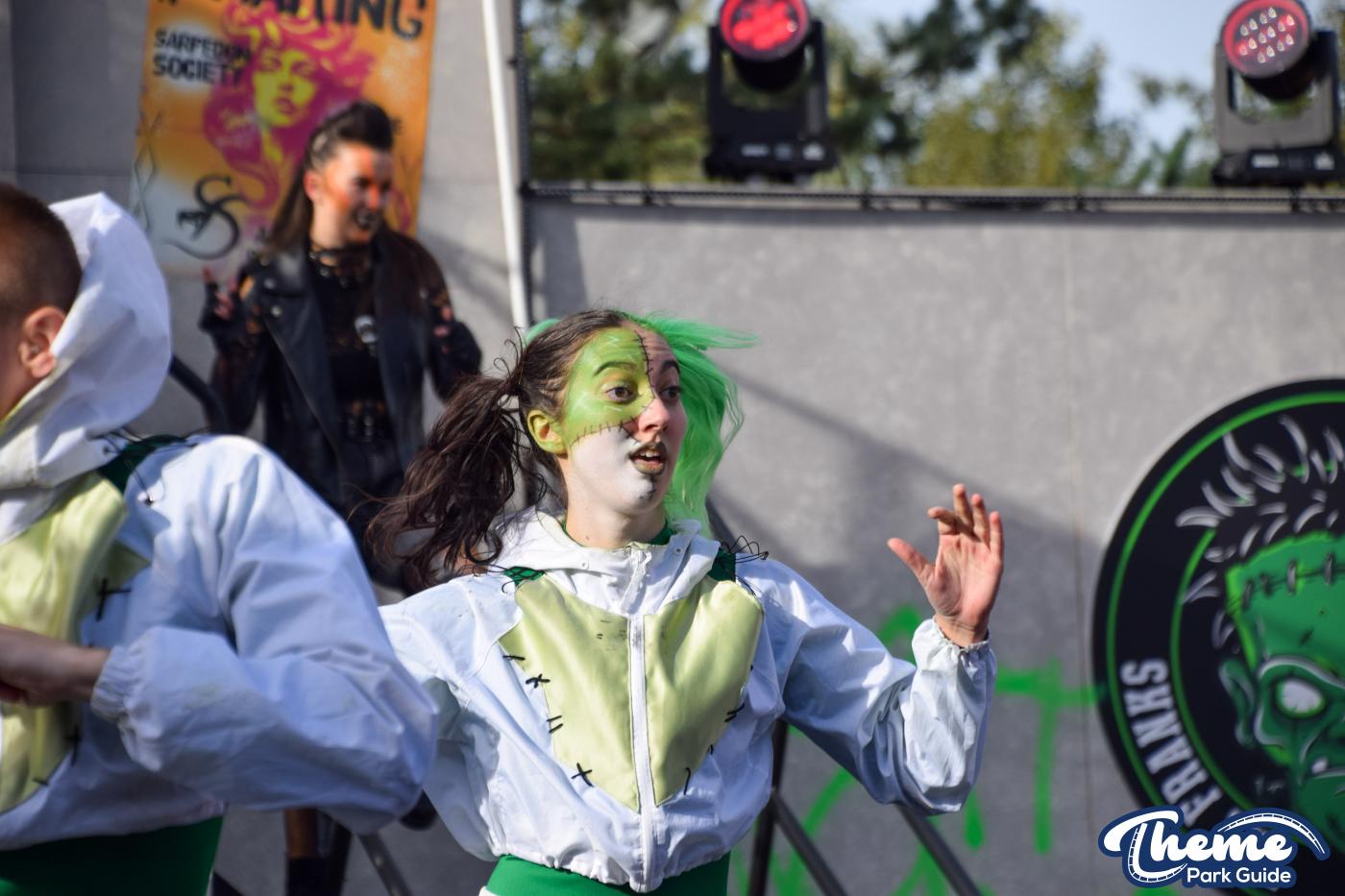 The showpiece of 2025 is undoubtedly Creature Campus: Shock to the System, a reinvention of Thorpe Park’s live entertainment. The stage has been raised, providing excellent sightlines for audiences, and the lighting rig is astonishing – brighter, bolder, and more dynamic than anything seen before at Fright Nights.