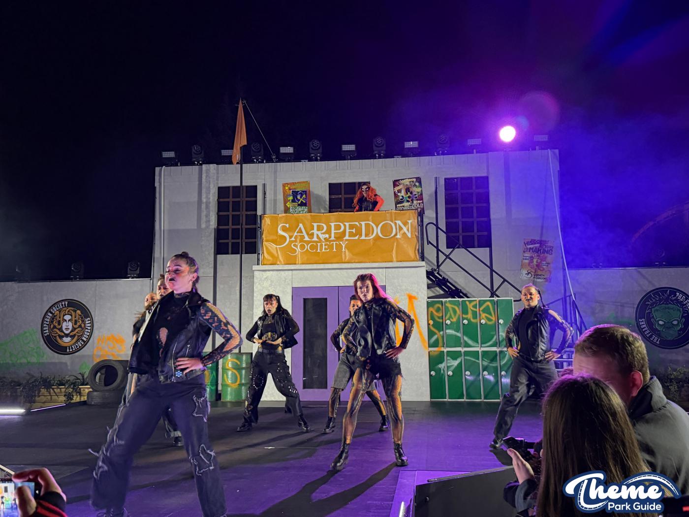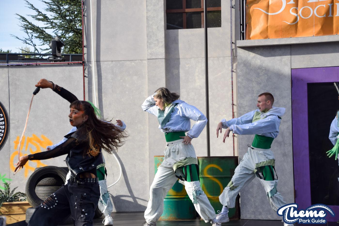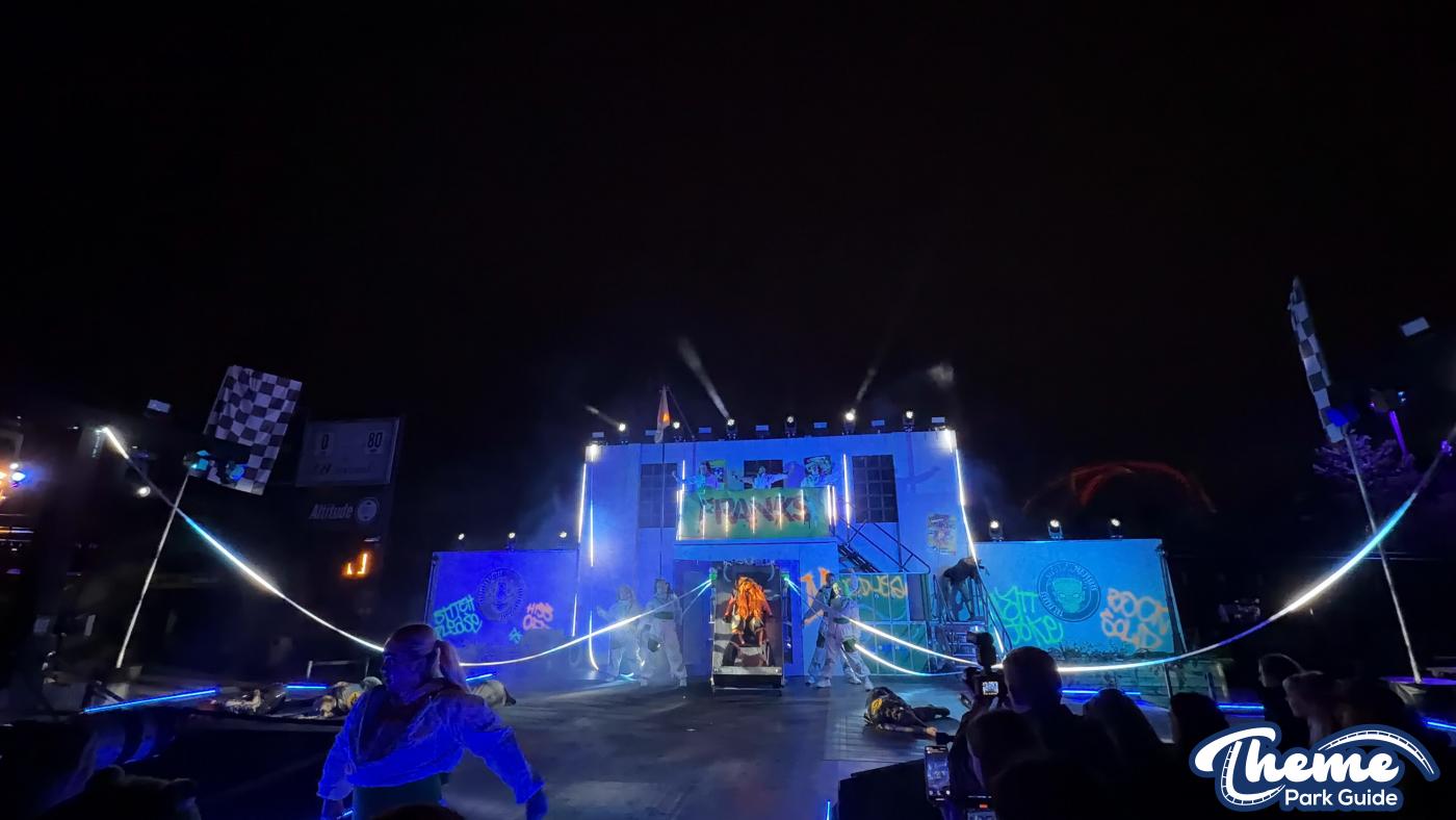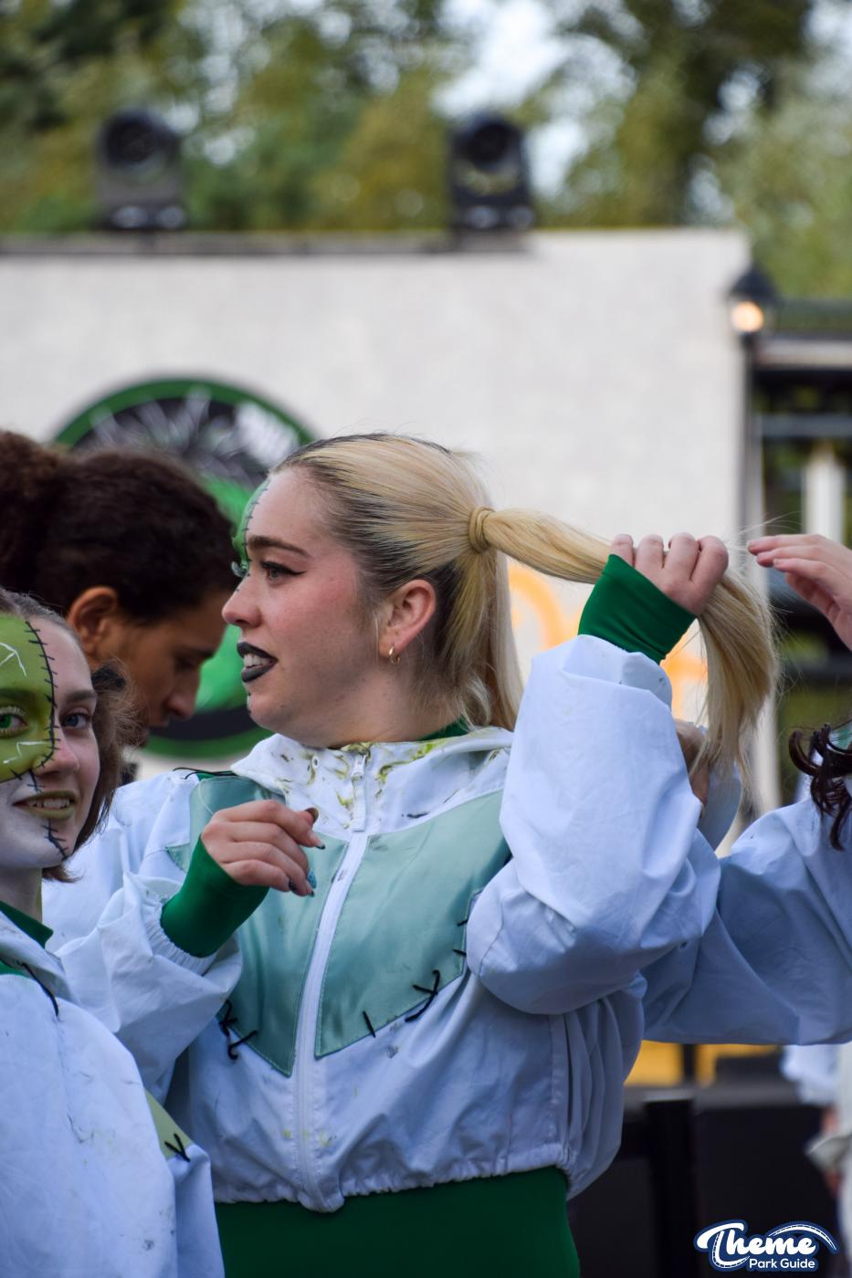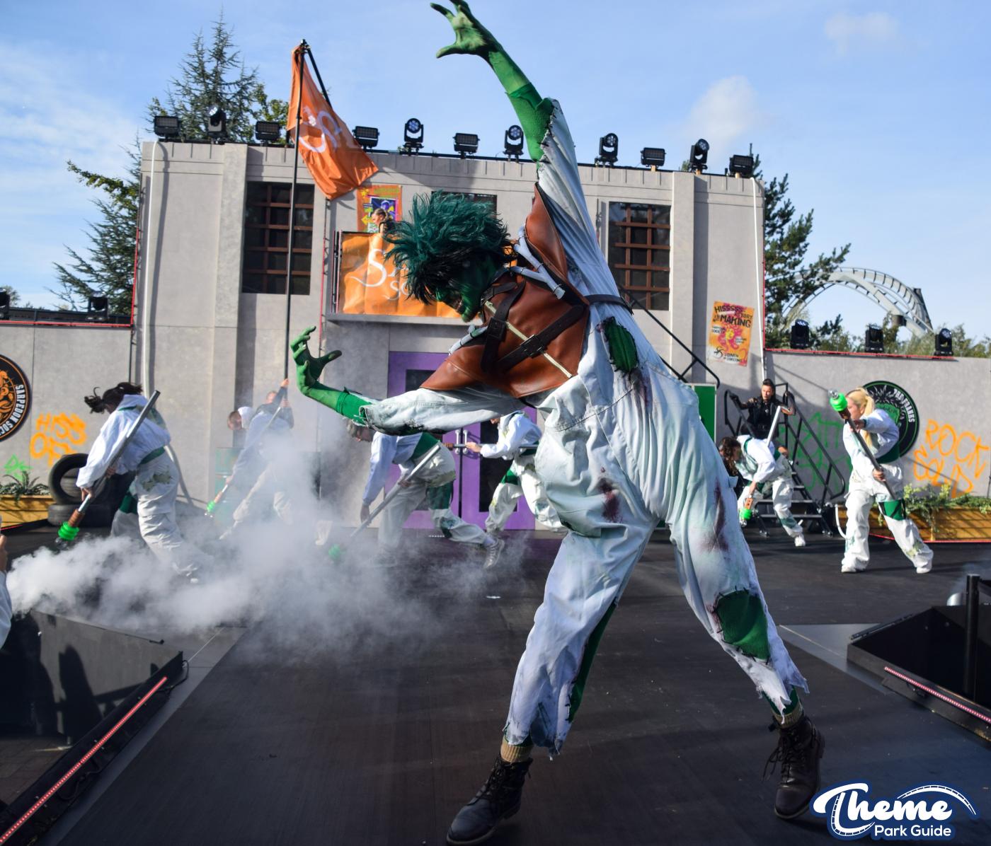 The showpiece of 2025 is undoubtedly Creature Campus: Shock to the System, a reinvention of Thorpe Park’s live entertainment. The stage has been raised, providing excellent sightlines for audiences, and the lighting rig is astonishing – brighter, bolder, and more dynamic than anything seen before at Fright Nights.