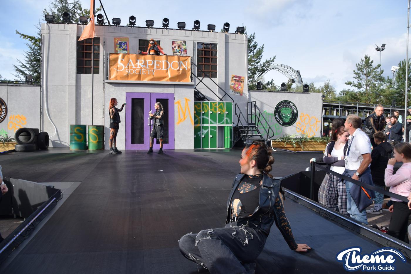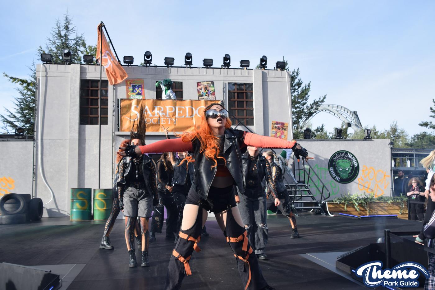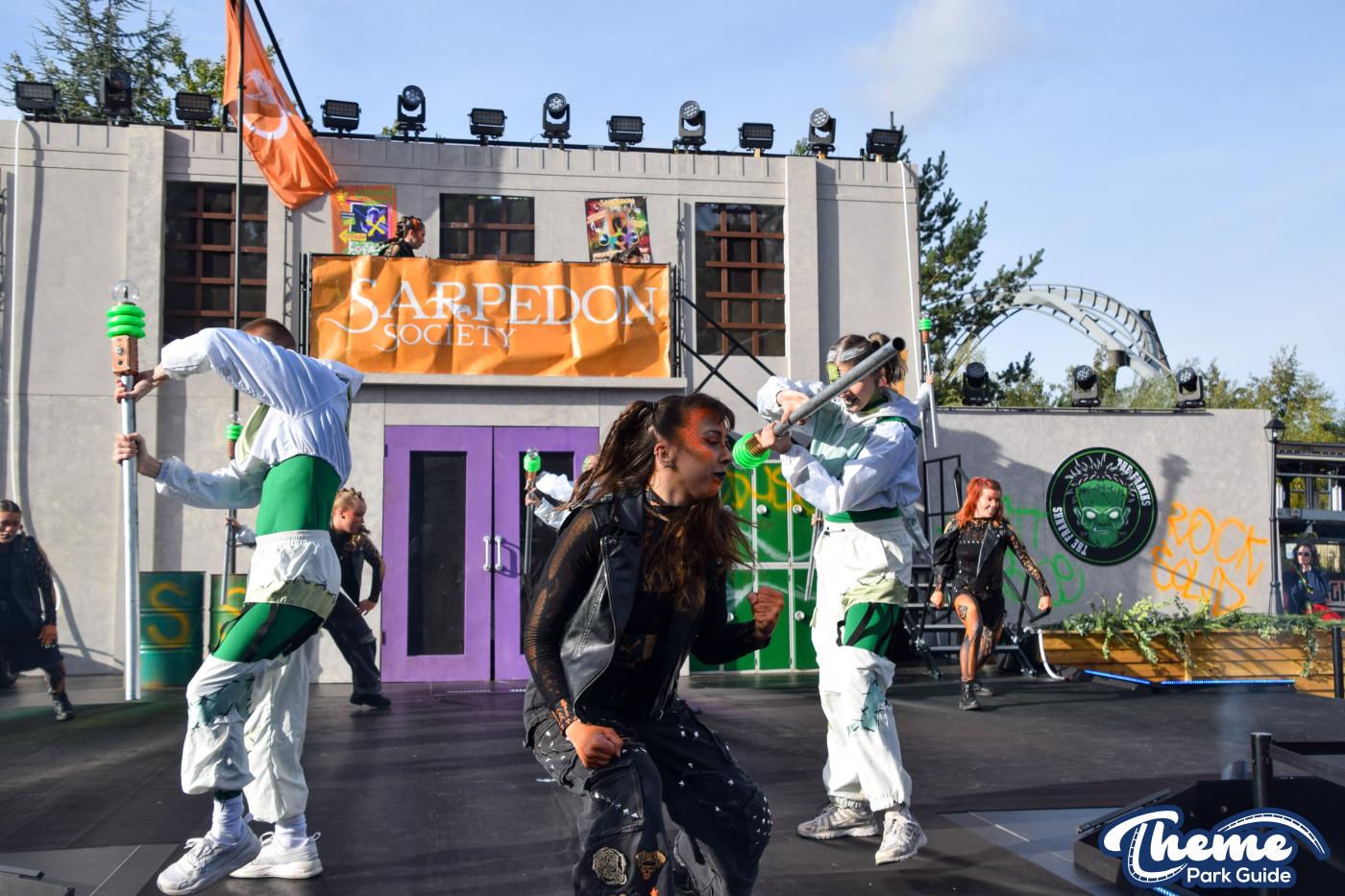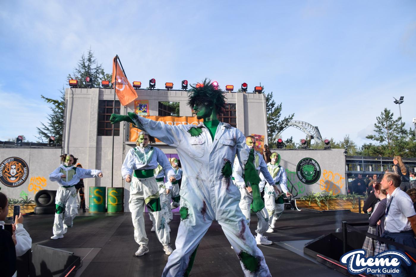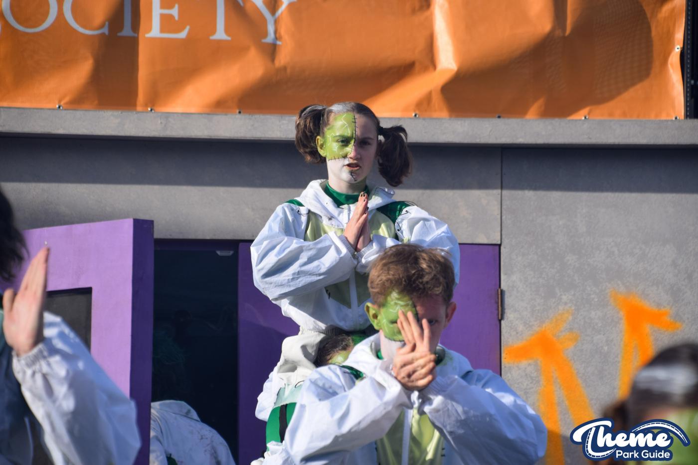 The showpiece of 2025 is undoubtedly Creature Campus: Shock to the System, a reinvention of Thorpe Park’s live entertainment. The stage has been raised, providing excellent sightlines for audiences, and the lighting rig is astonishing – brighter, bolder, and more dynamic than anything seen before at Fright Nights.