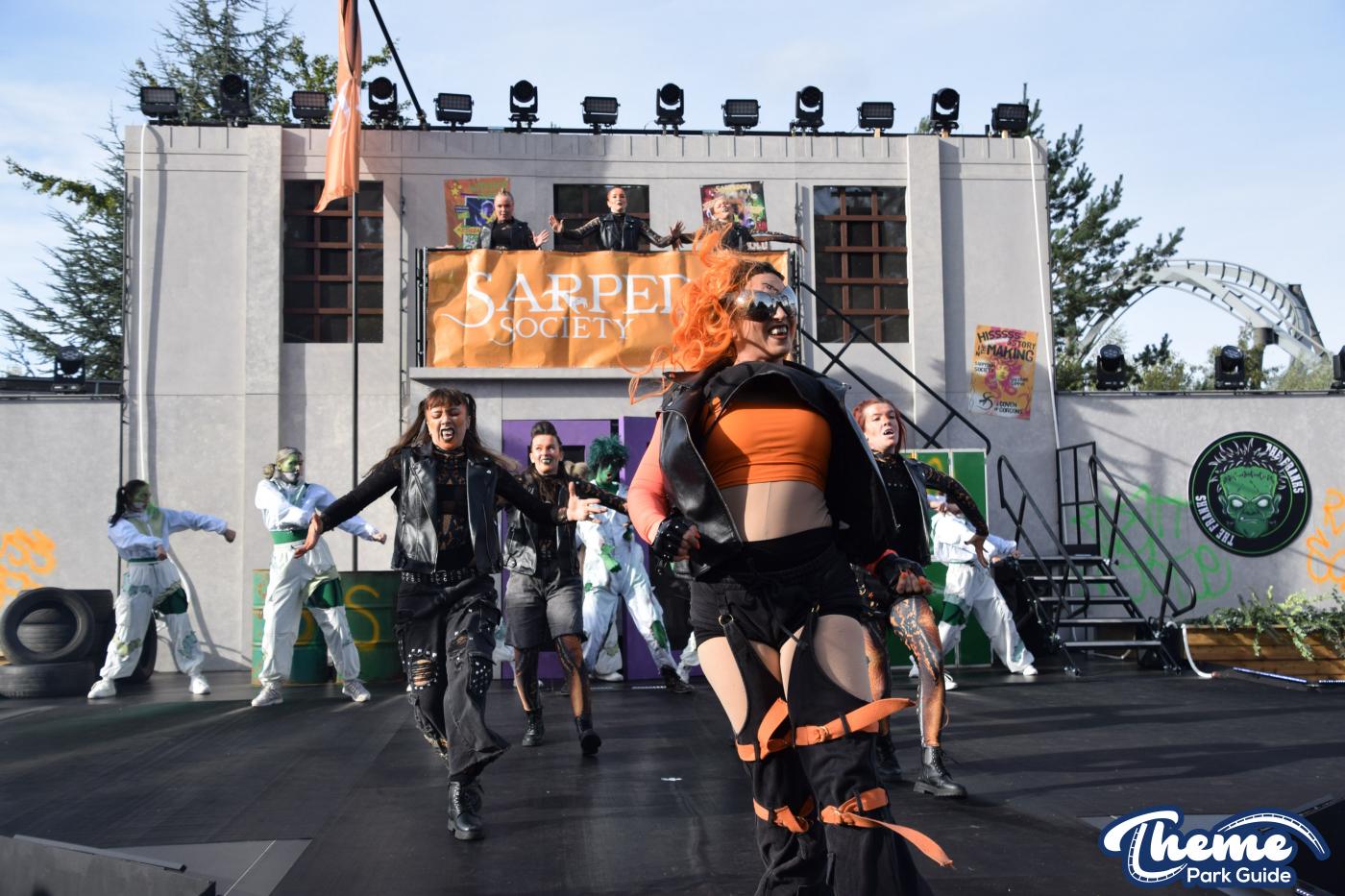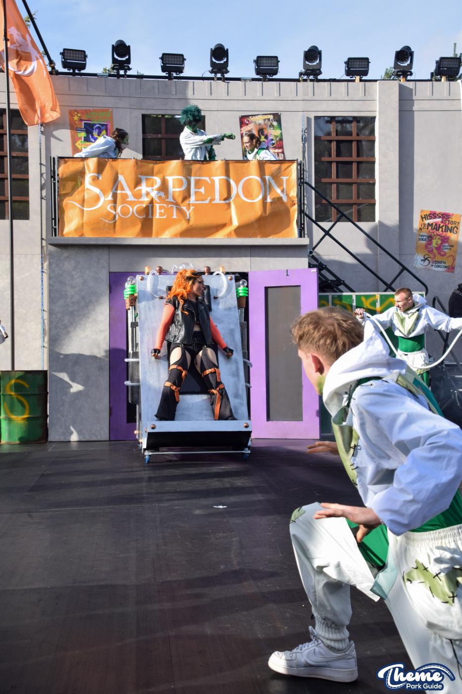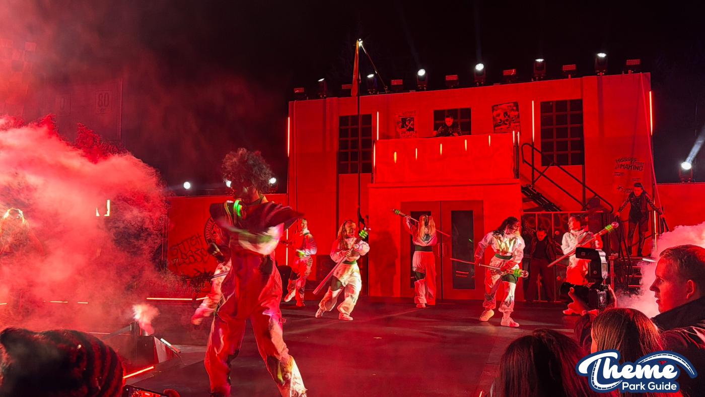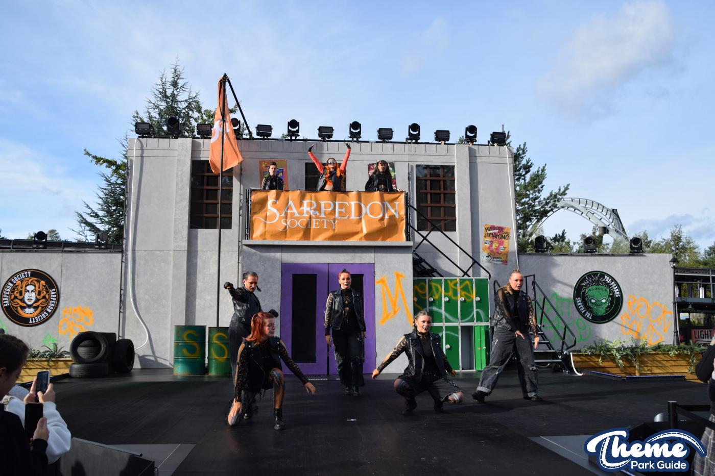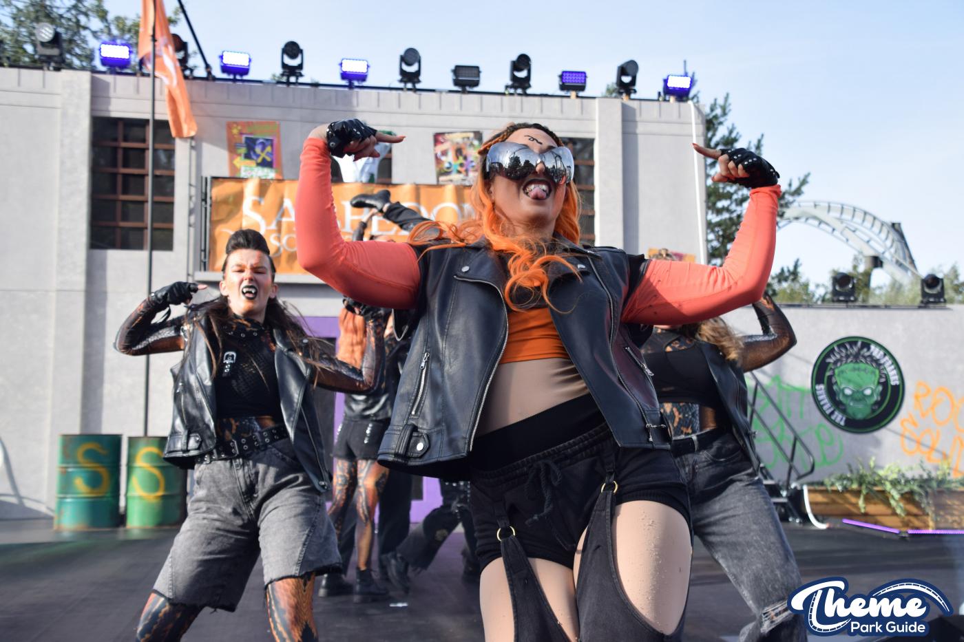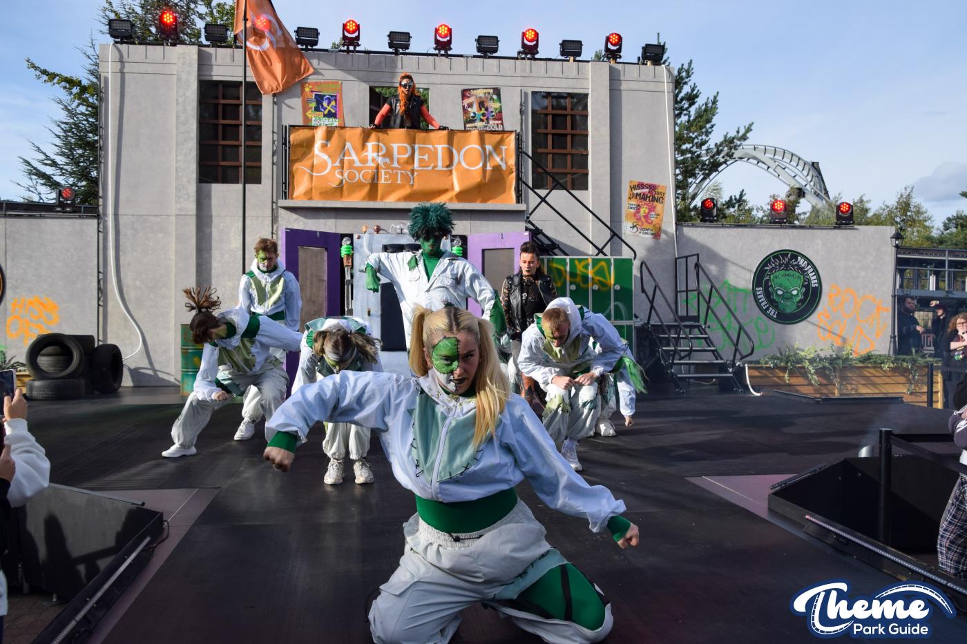 The showpiece of 2025 is undoubtedly Creature Campus: Shock to the System, a reinvention of Thorpe Park’s live entertainment. The stage has been raised, providing excellent sightlines for audiences, and the lighting rig is astonishing – brighter, bolder, and more dynamic than anything seen before at Fright Nights.