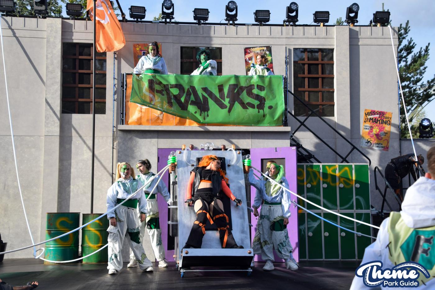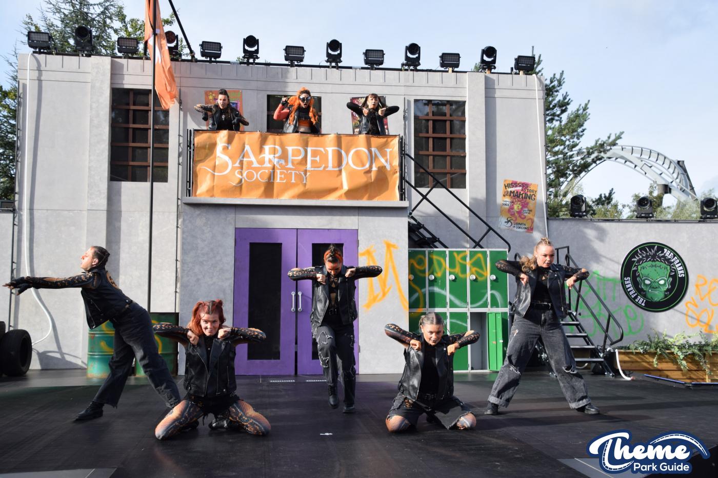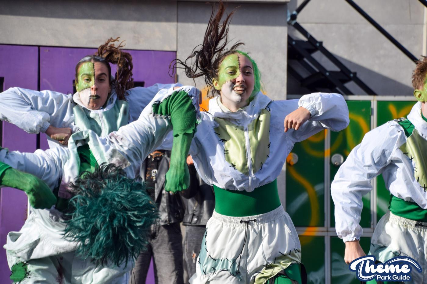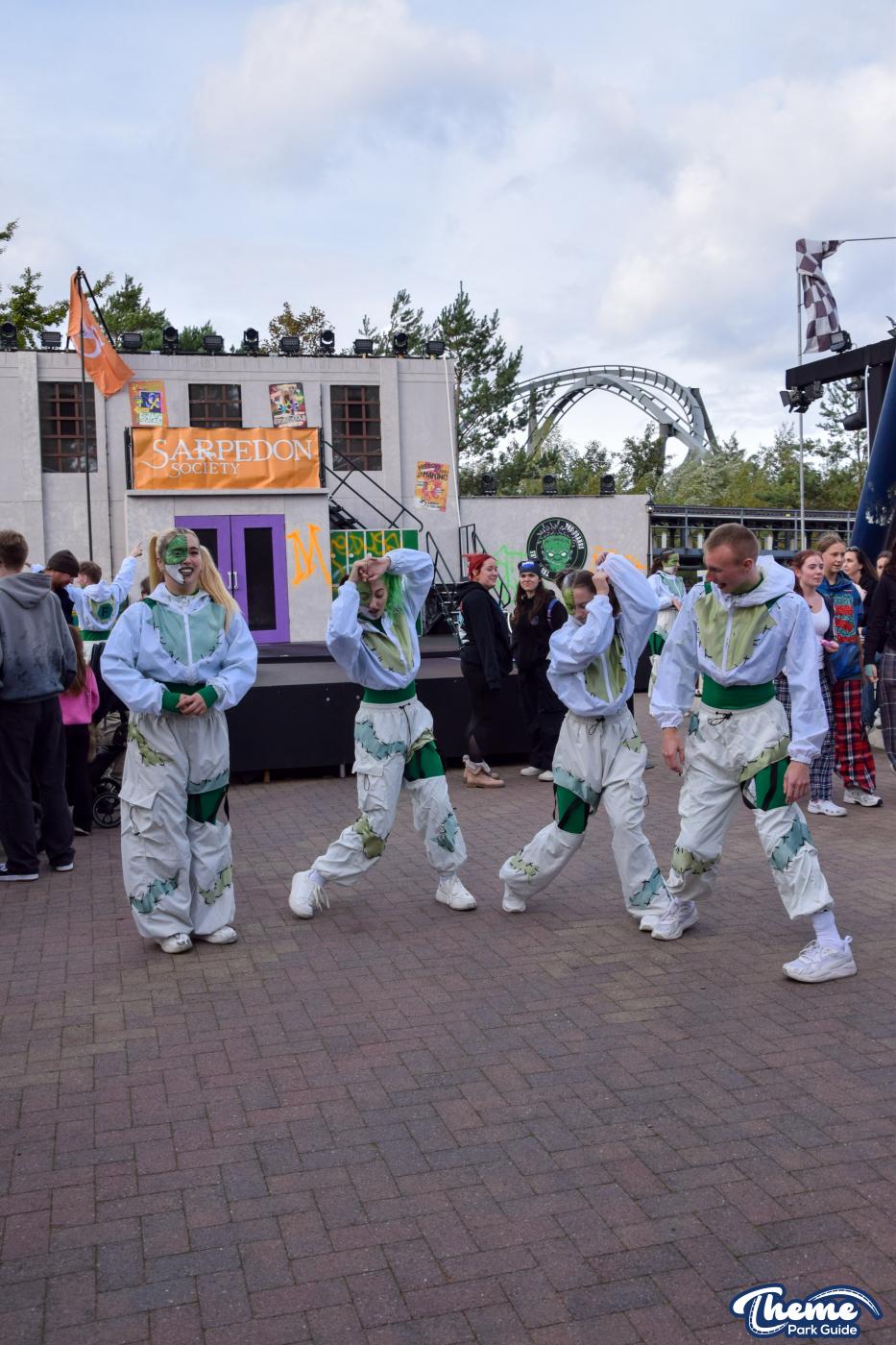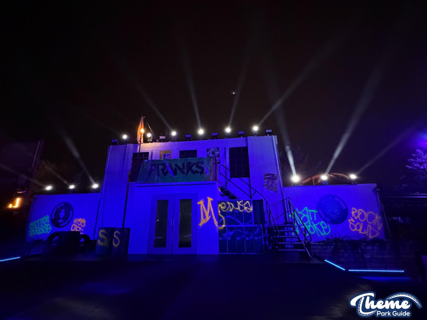 The showpiece of 2025 is undoubtedly Creature Campus: Shock to the System, a reinvention of Thorpe Park’s live entertainment. The stage has been raised, providing excellent sightlines for audiences, and the lighting rig is astonishing – brighter, bolder, and more dynamic than anything seen before at Fright Nights.