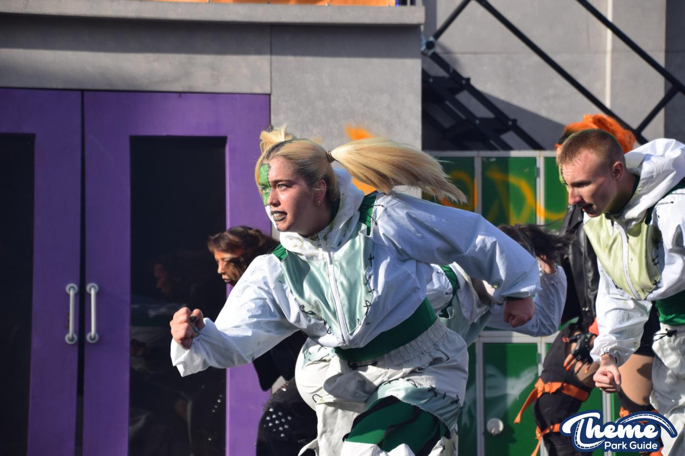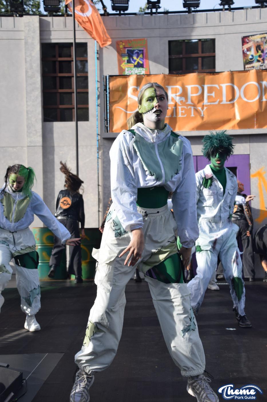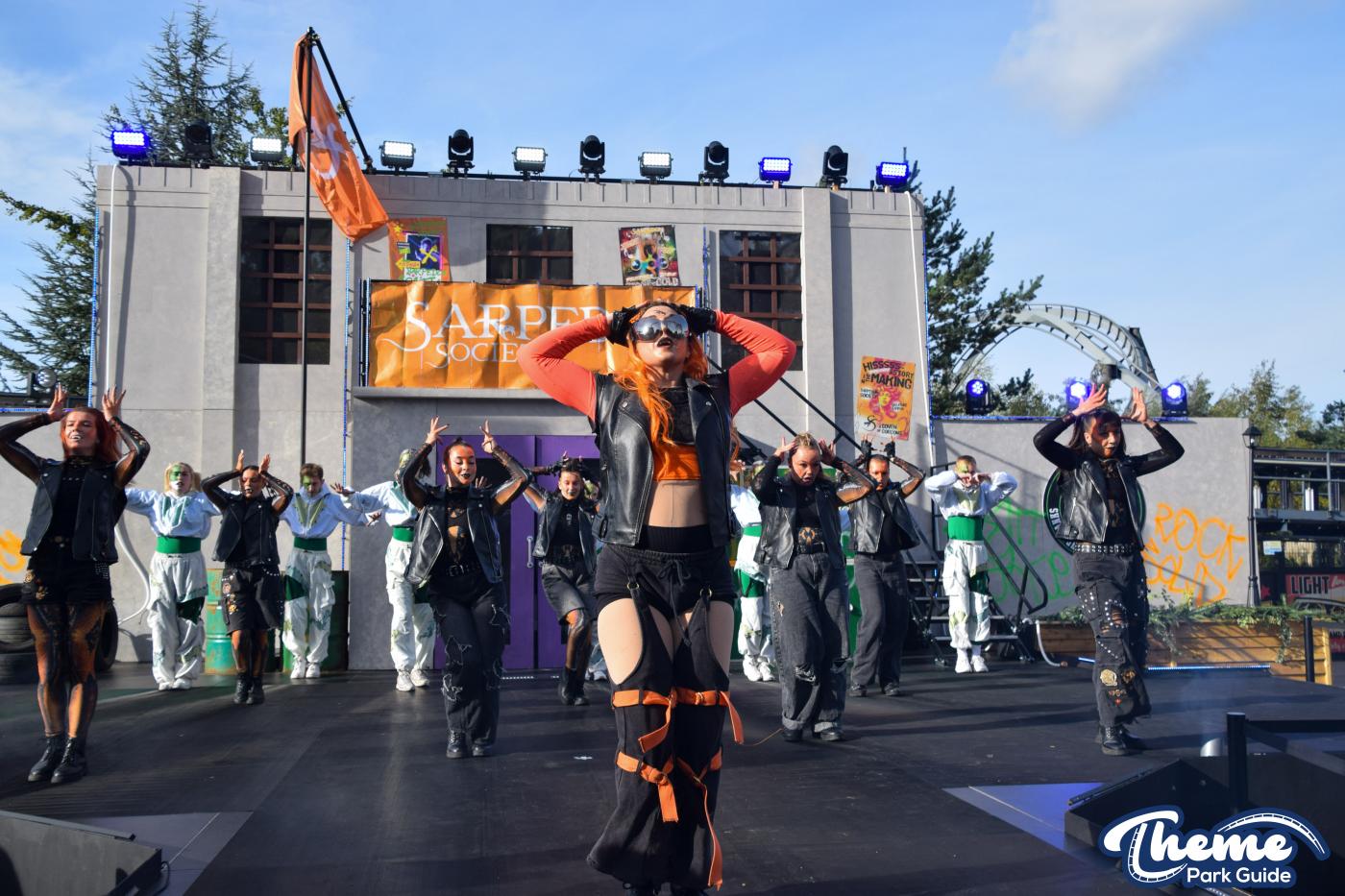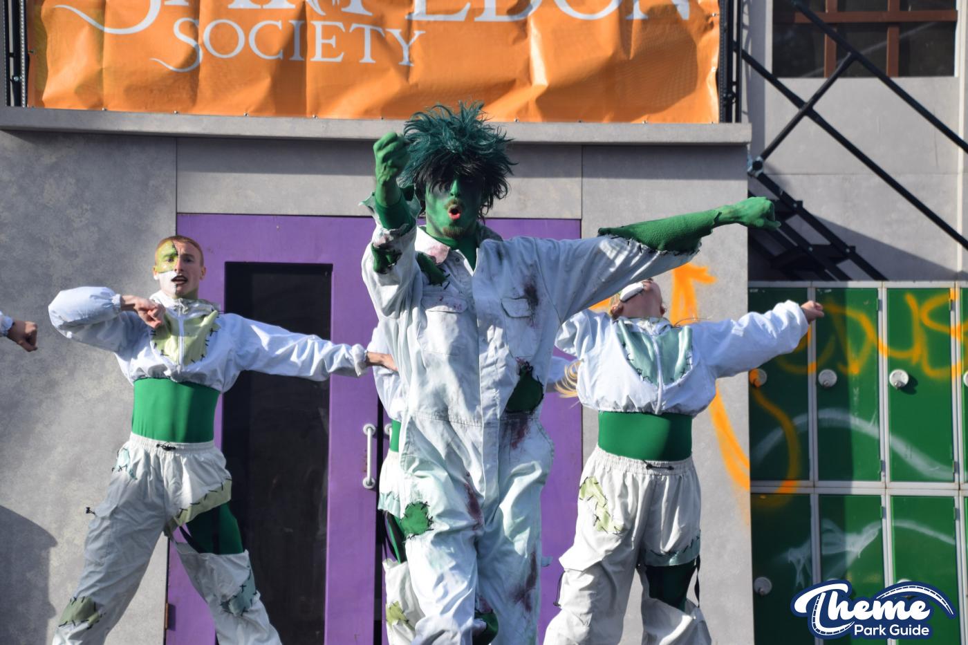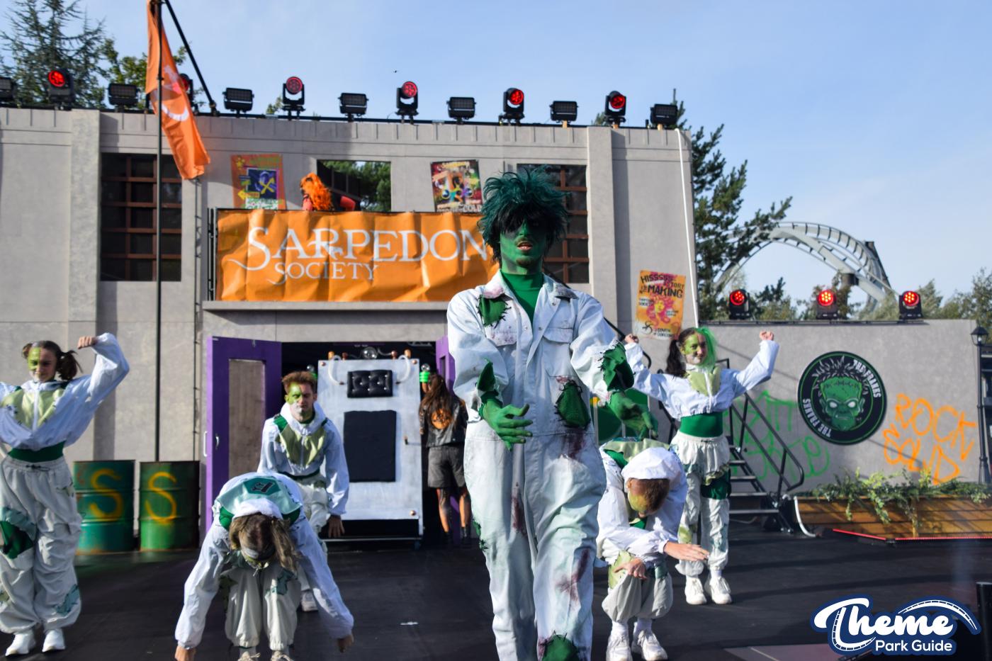 The showpiece of 2025 is undoubtedly Creature Campus: Shock to the System, a reinvention of Thorpe Park’s live entertainment. The stage has been raised, providing excellent sightlines for audiences, and the lighting rig is astonishing – brighter, bolder, and more dynamic than anything seen before at Fright Nights.