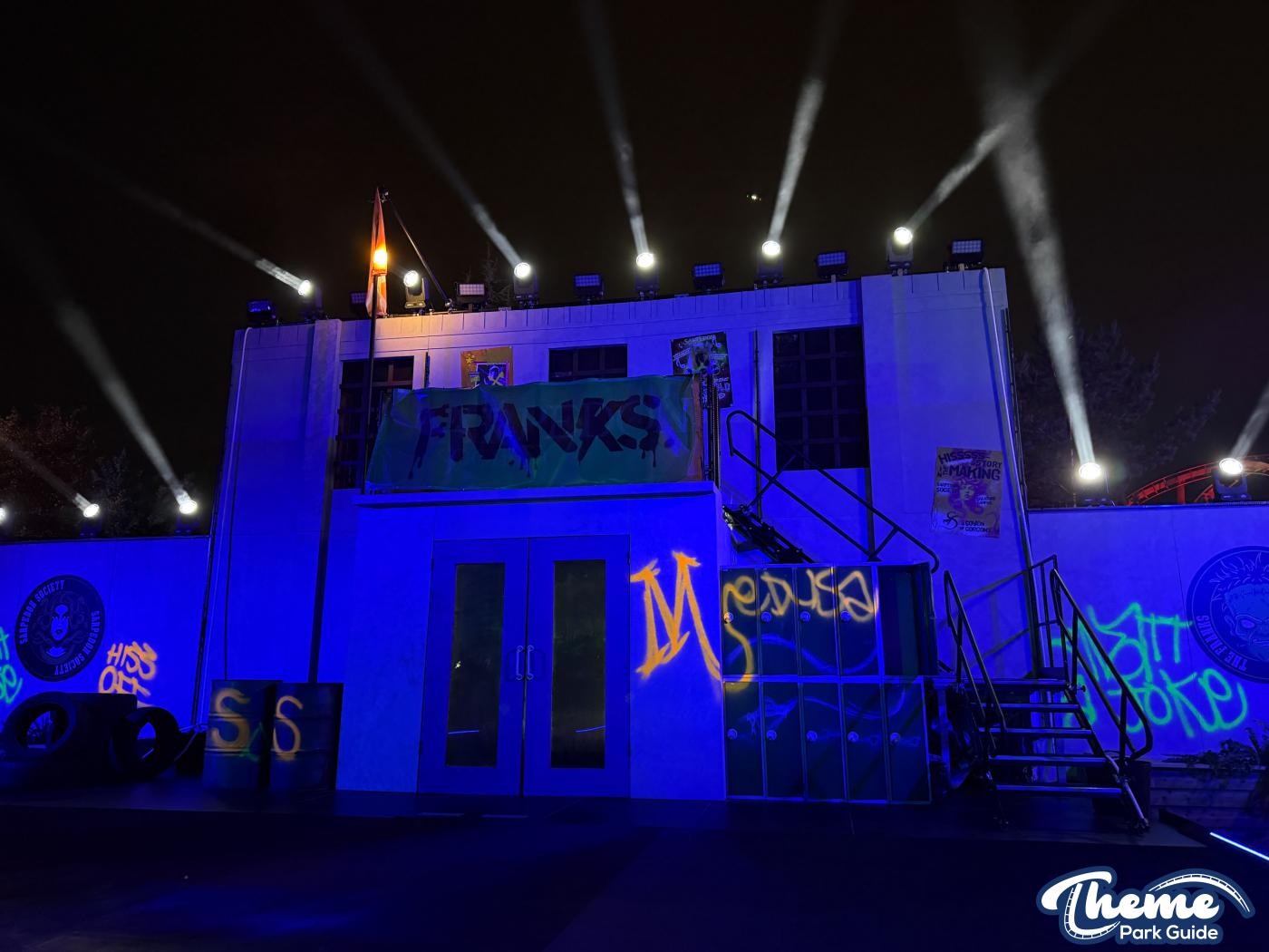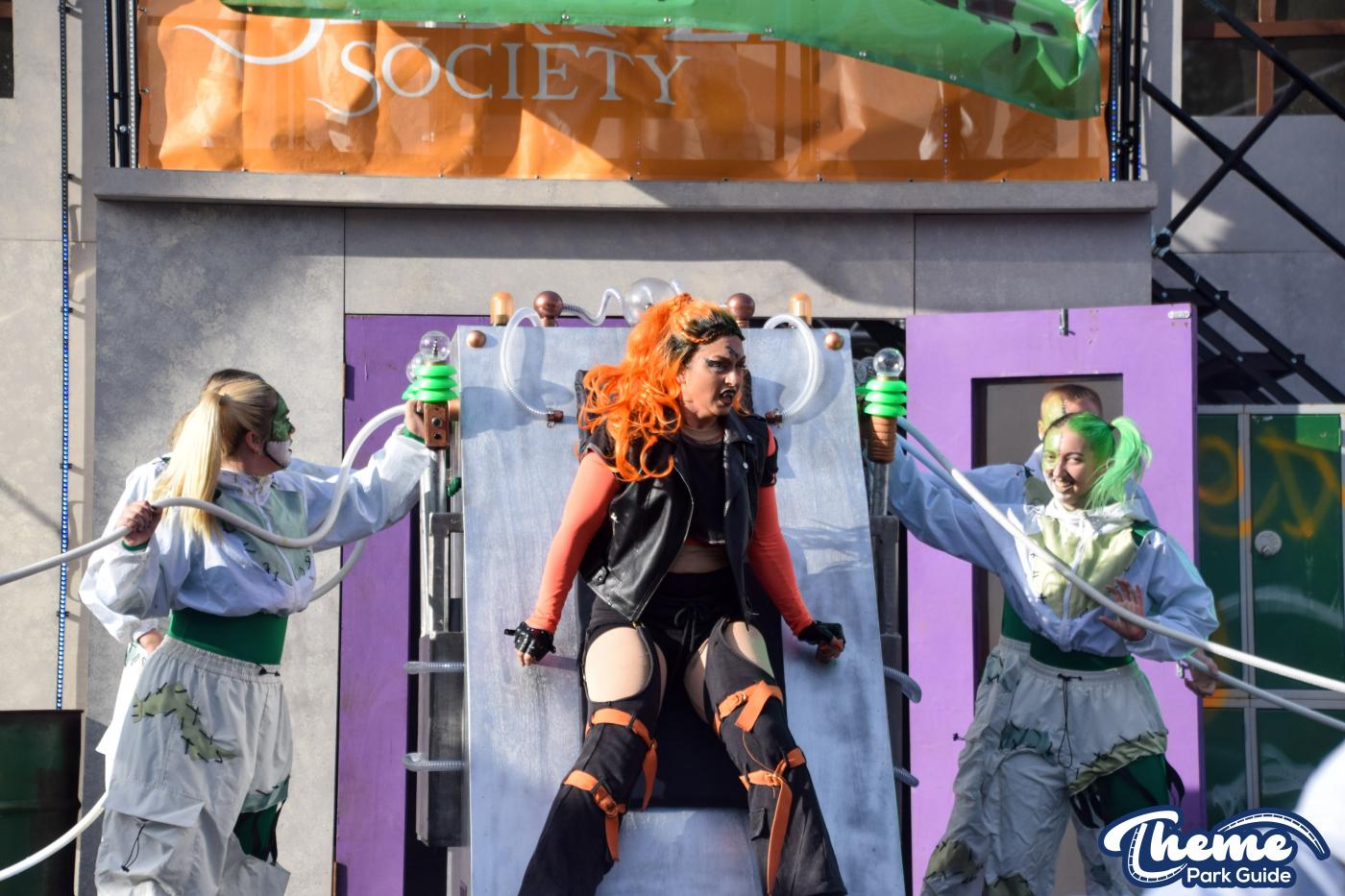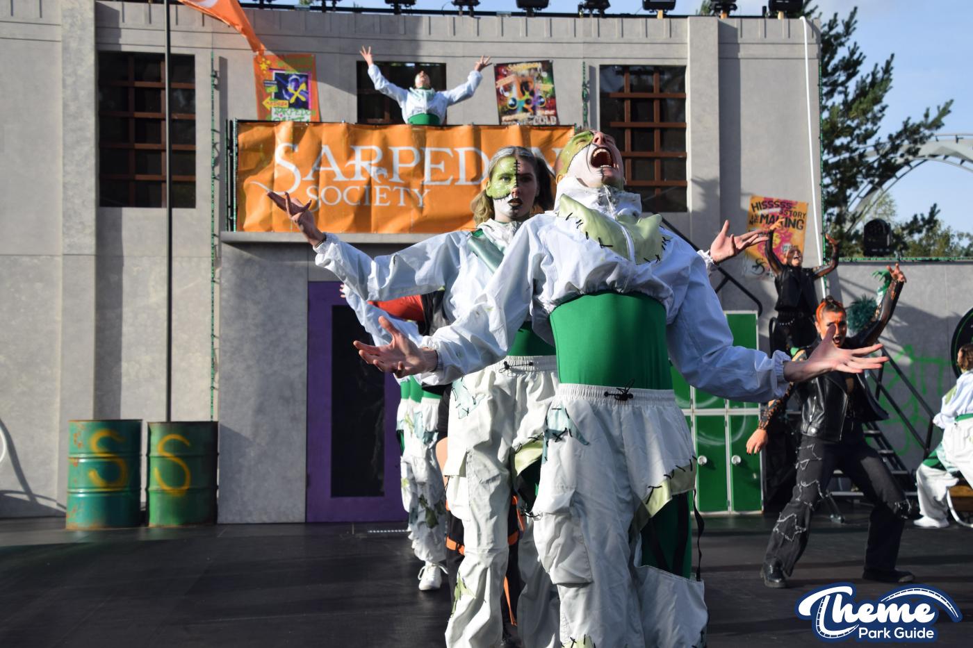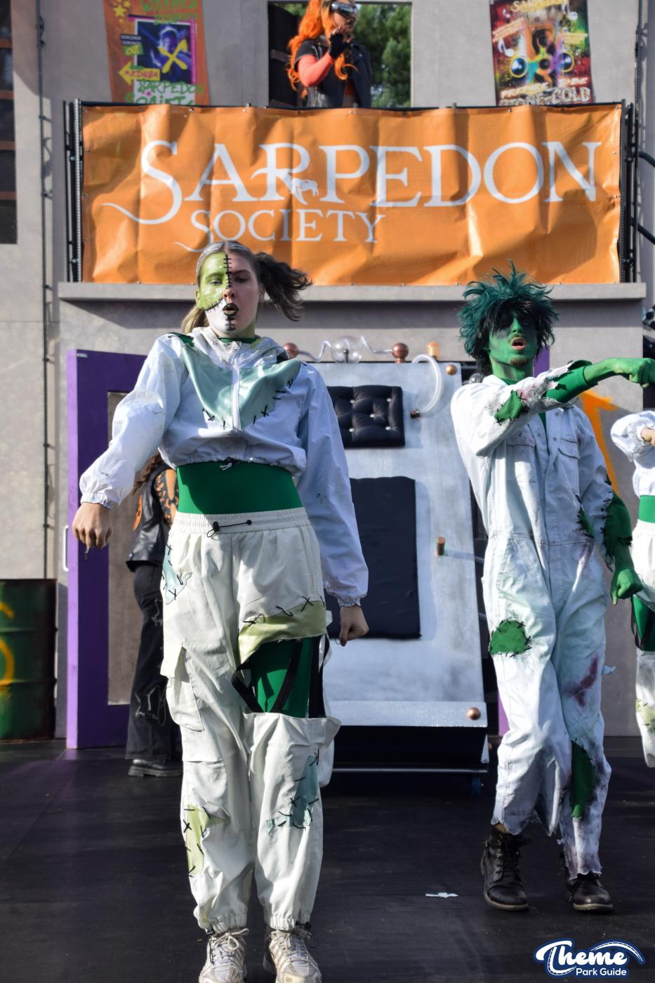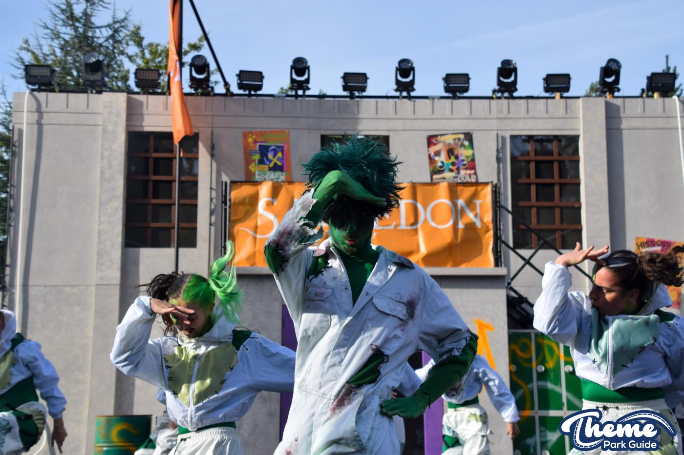 The showpiece of 2025 is undoubtedly Creature Campus: Shock to the System, a reinvention of Thorpe Park’s live entertainment. The stage has been raised, providing excellent sightlines for audiences, and the lighting rig is astonishing – brighter, bolder, and more dynamic than anything seen before at Fright Nights.