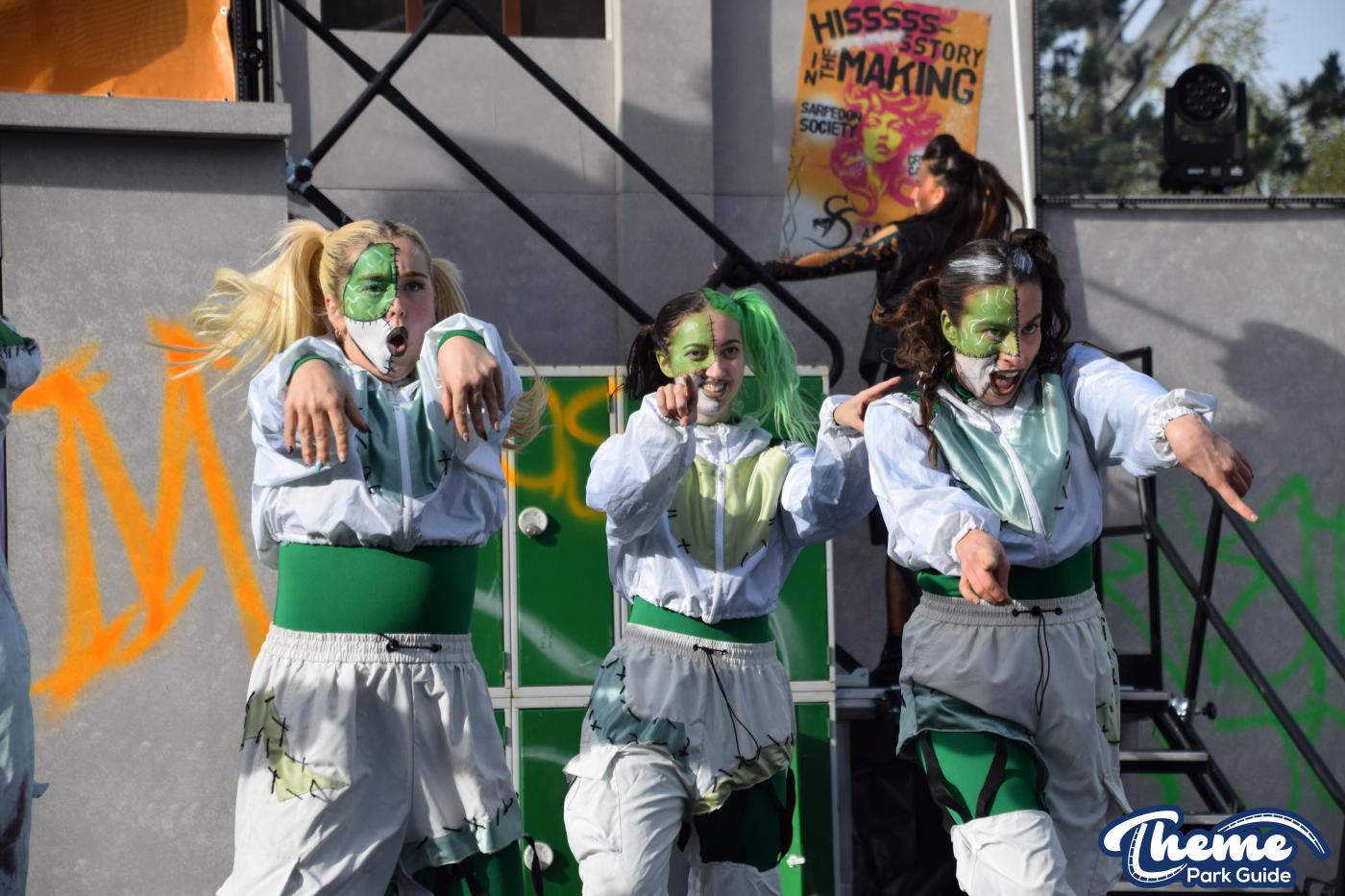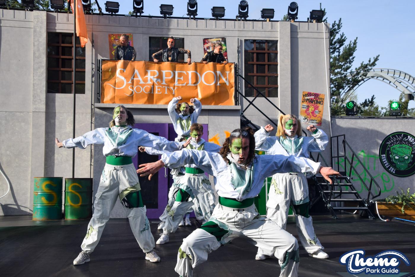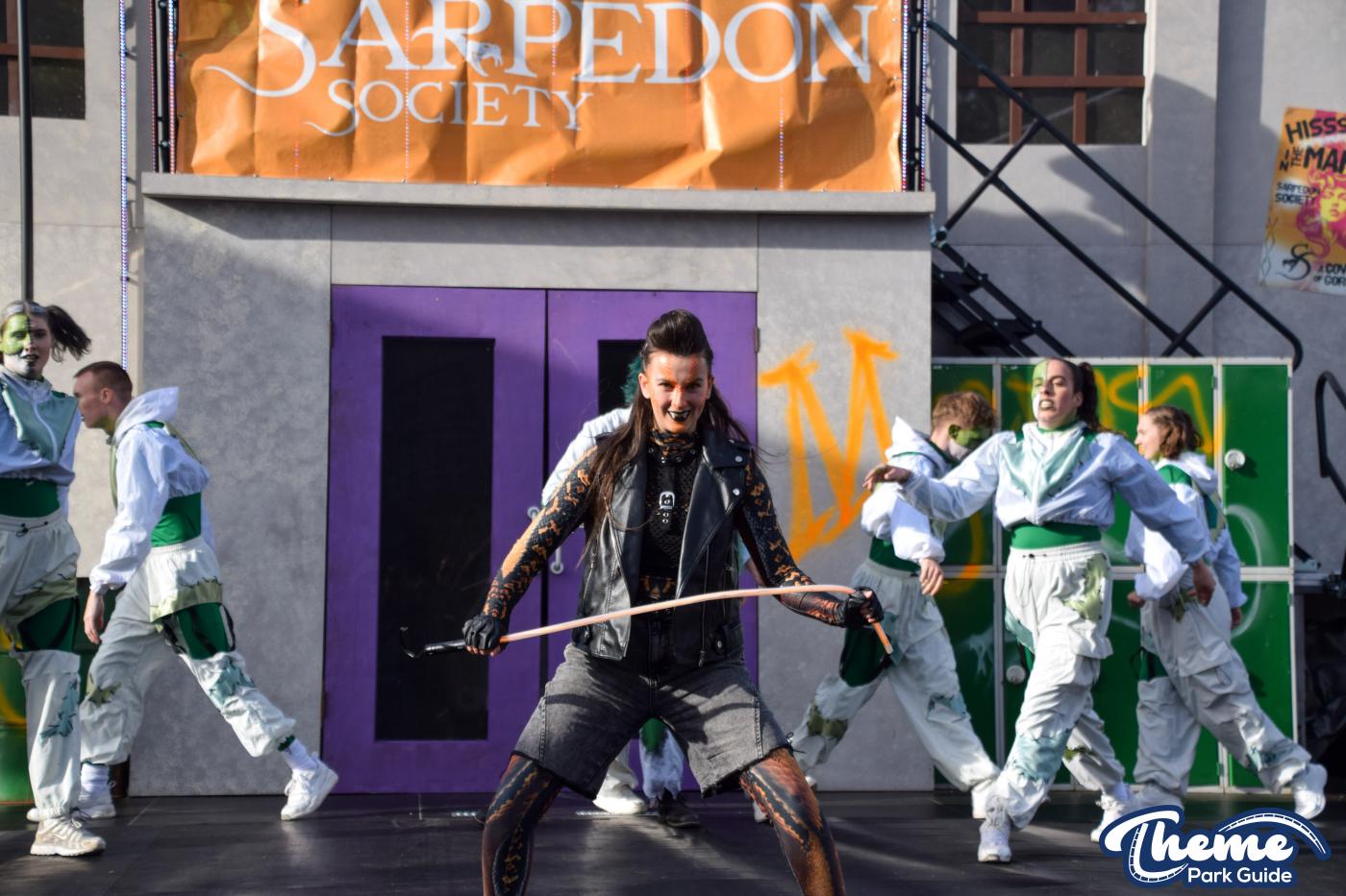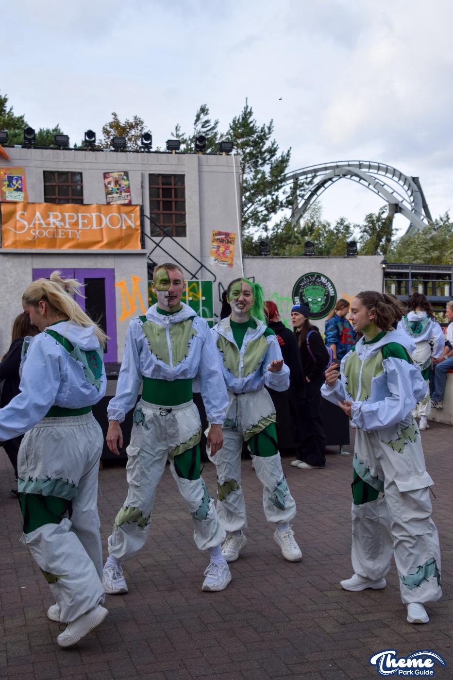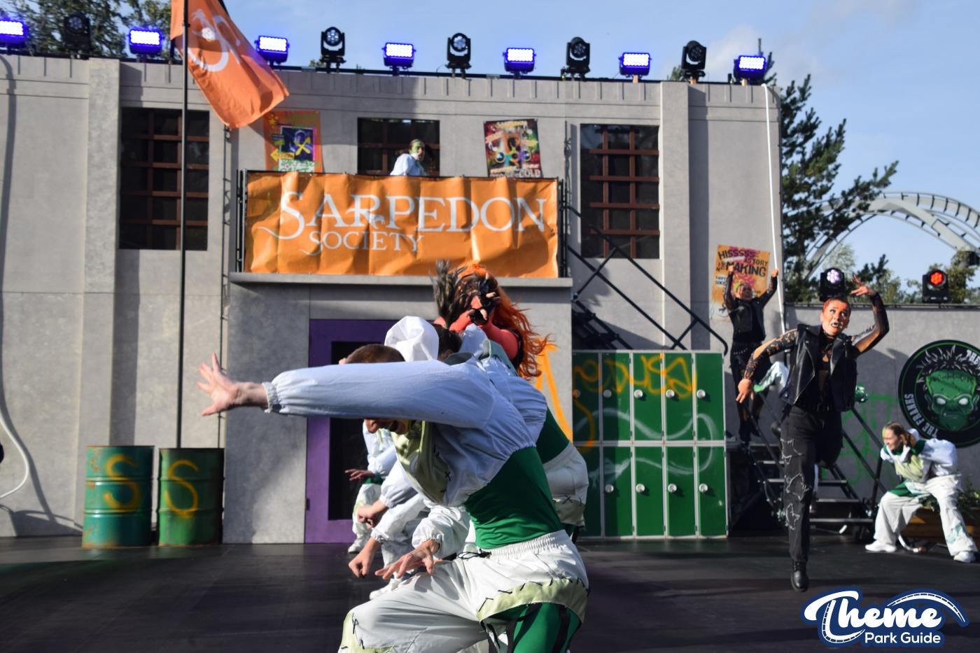 The showpiece of 2025 is undoubtedly Creature Campus: Shock to the System, a reinvention of Thorpe Park’s live entertainment. The stage has been raised, providing excellent sightlines for audiences, and the lighting rig is astonishing – brighter, bolder, and more dynamic than anything seen before at Fright Nights.