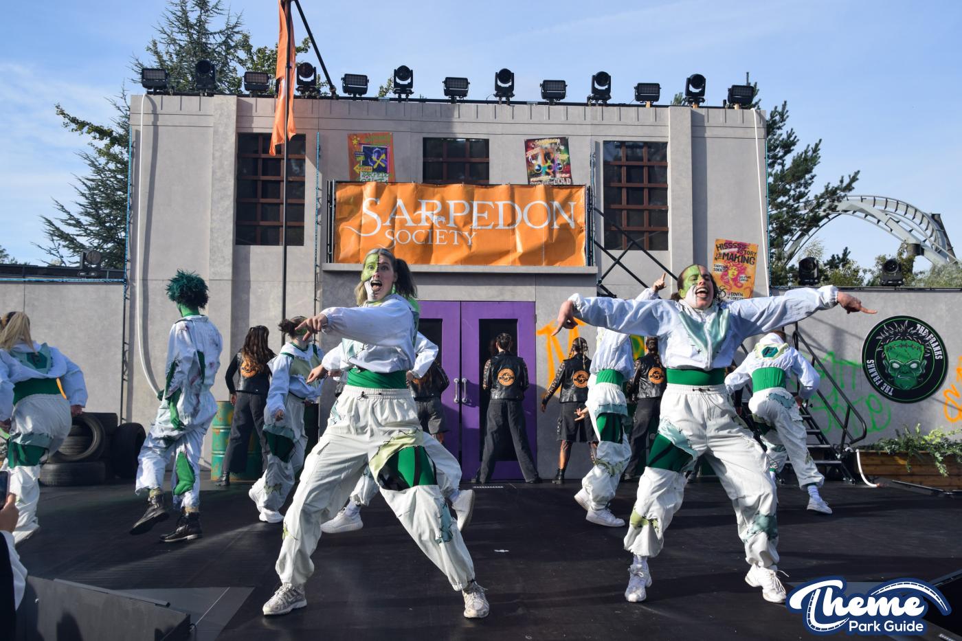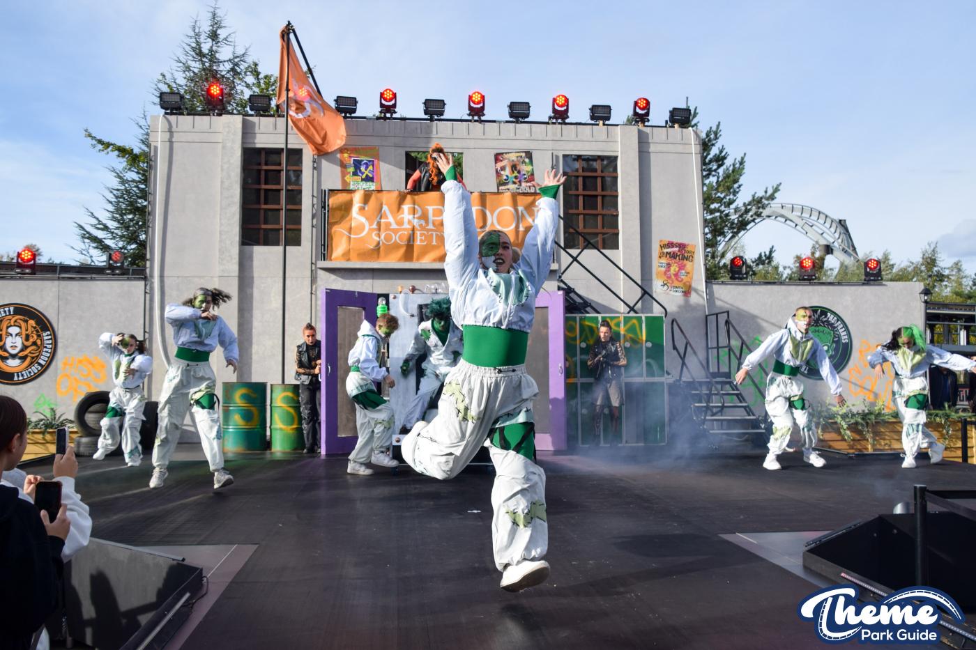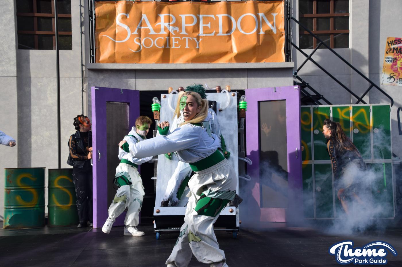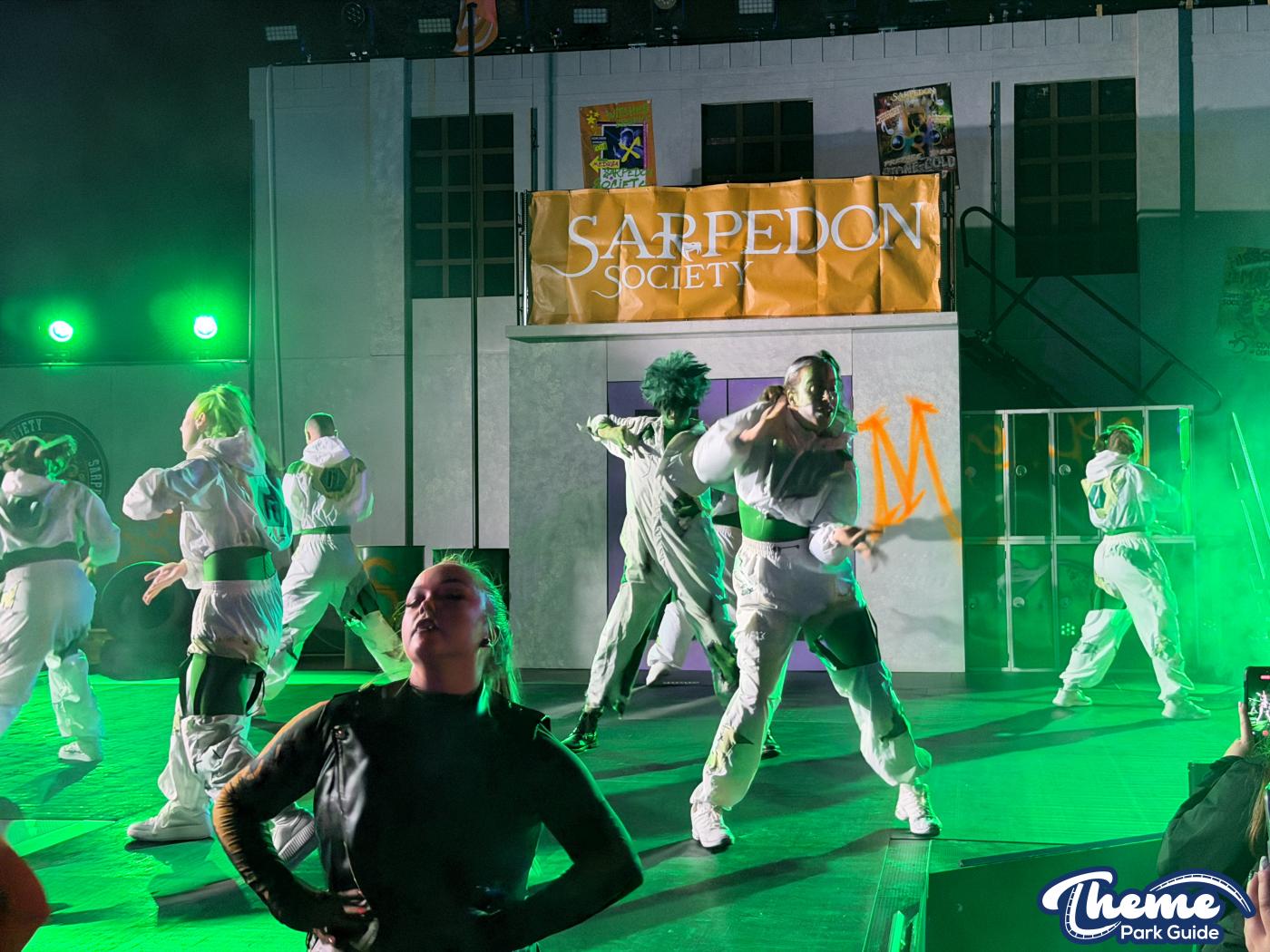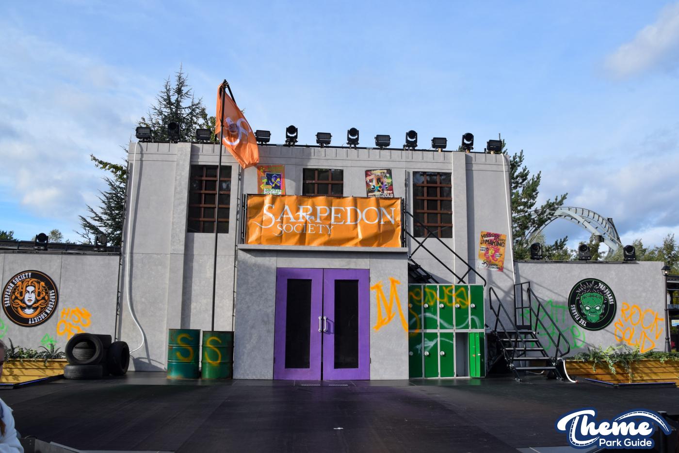 The showpiece of 2025 is undoubtedly Creature Campus: Shock to the System, a reinvention of Thorpe Park’s live entertainment. The stage has been raised, providing excellent sightlines for audiences, and the lighting rig is astonishing – brighter, bolder, and more dynamic than anything seen before at Fright Nights.