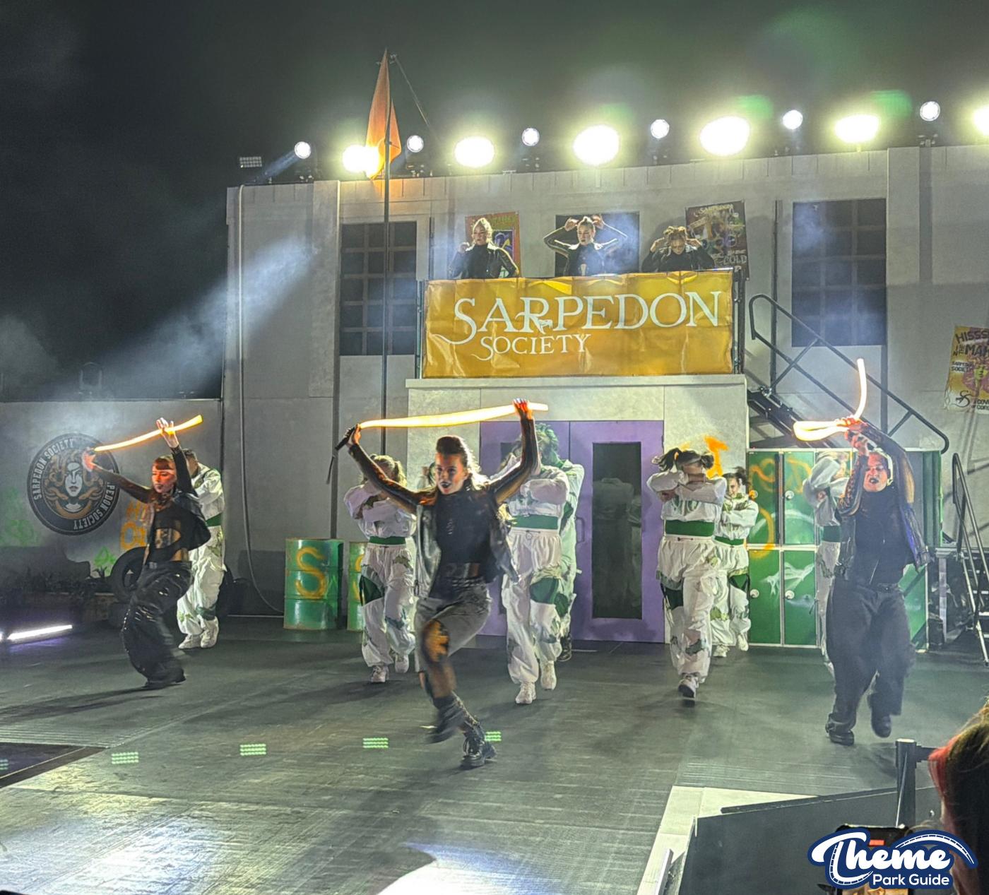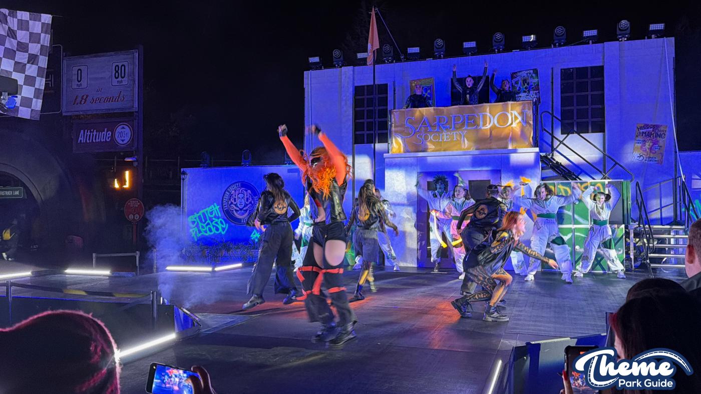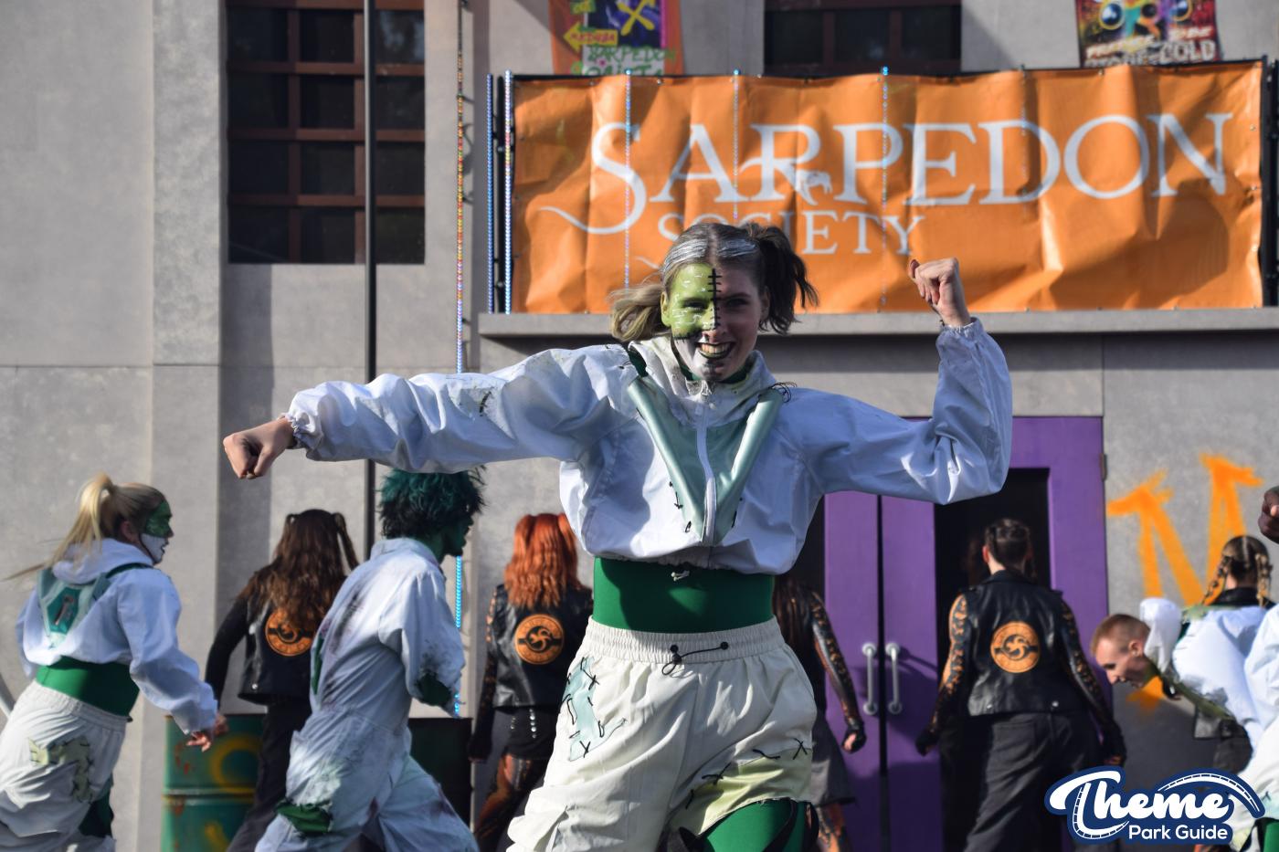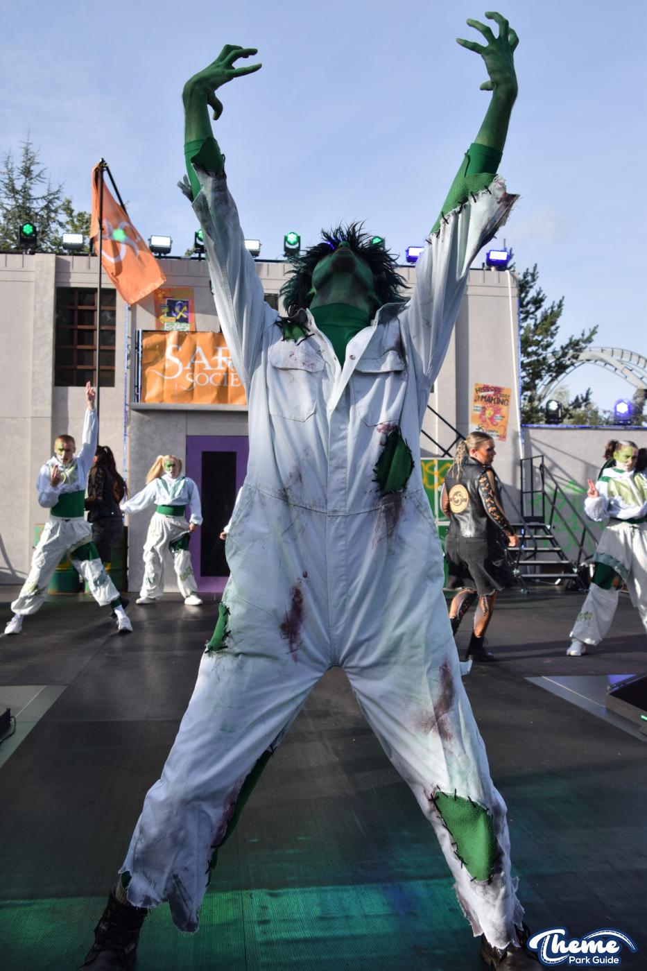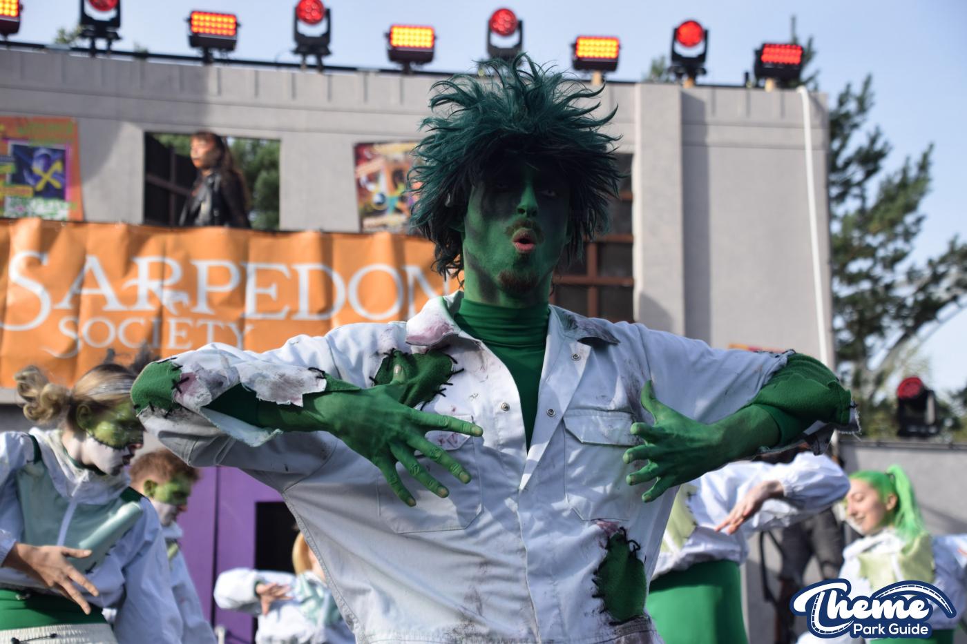 The showpiece of 2025 is undoubtedly Creature Campus: Shock to the System, a reinvention of Thorpe Park’s live entertainment. The stage has been raised, providing excellent sightlines for audiences, and the lighting rig is astonishing – brighter, bolder, and more dynamic than anything seen before at Fright Nights.