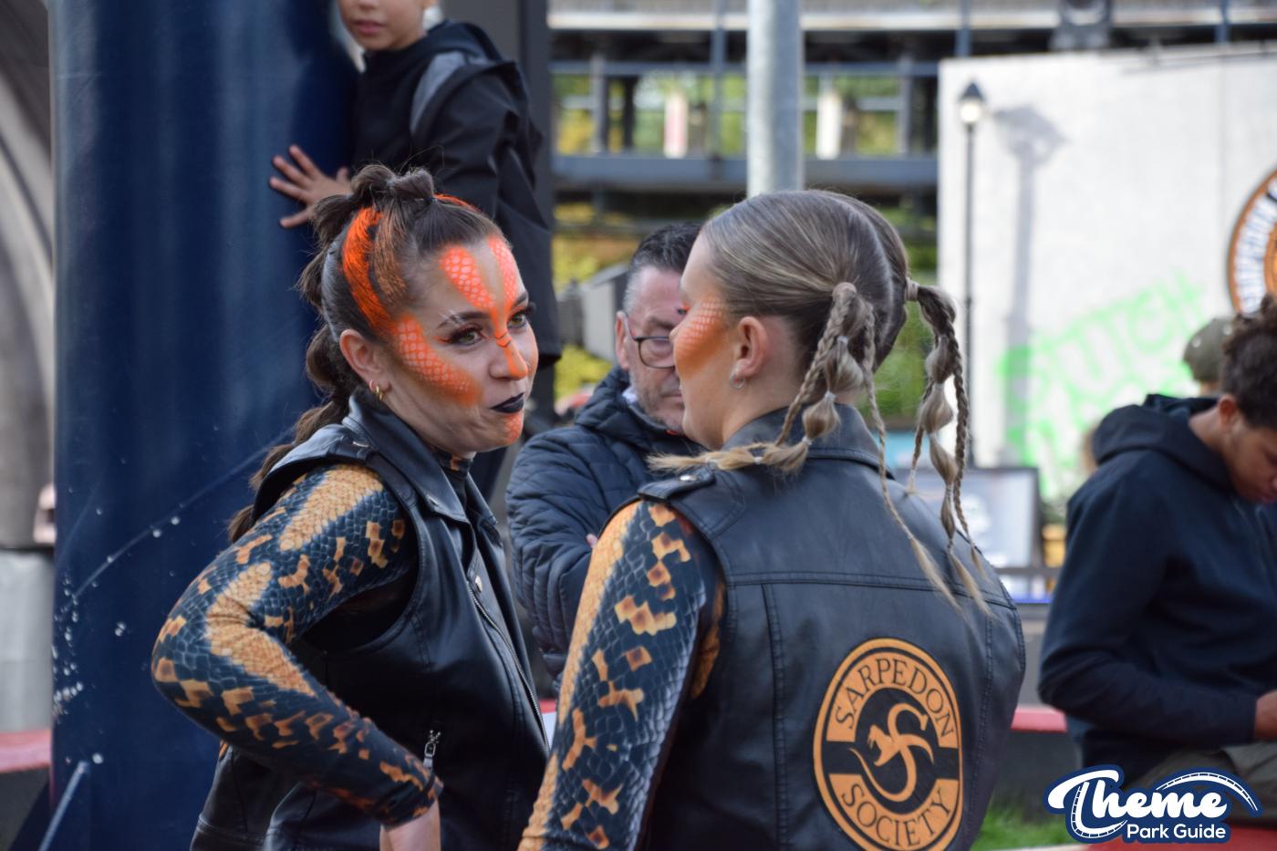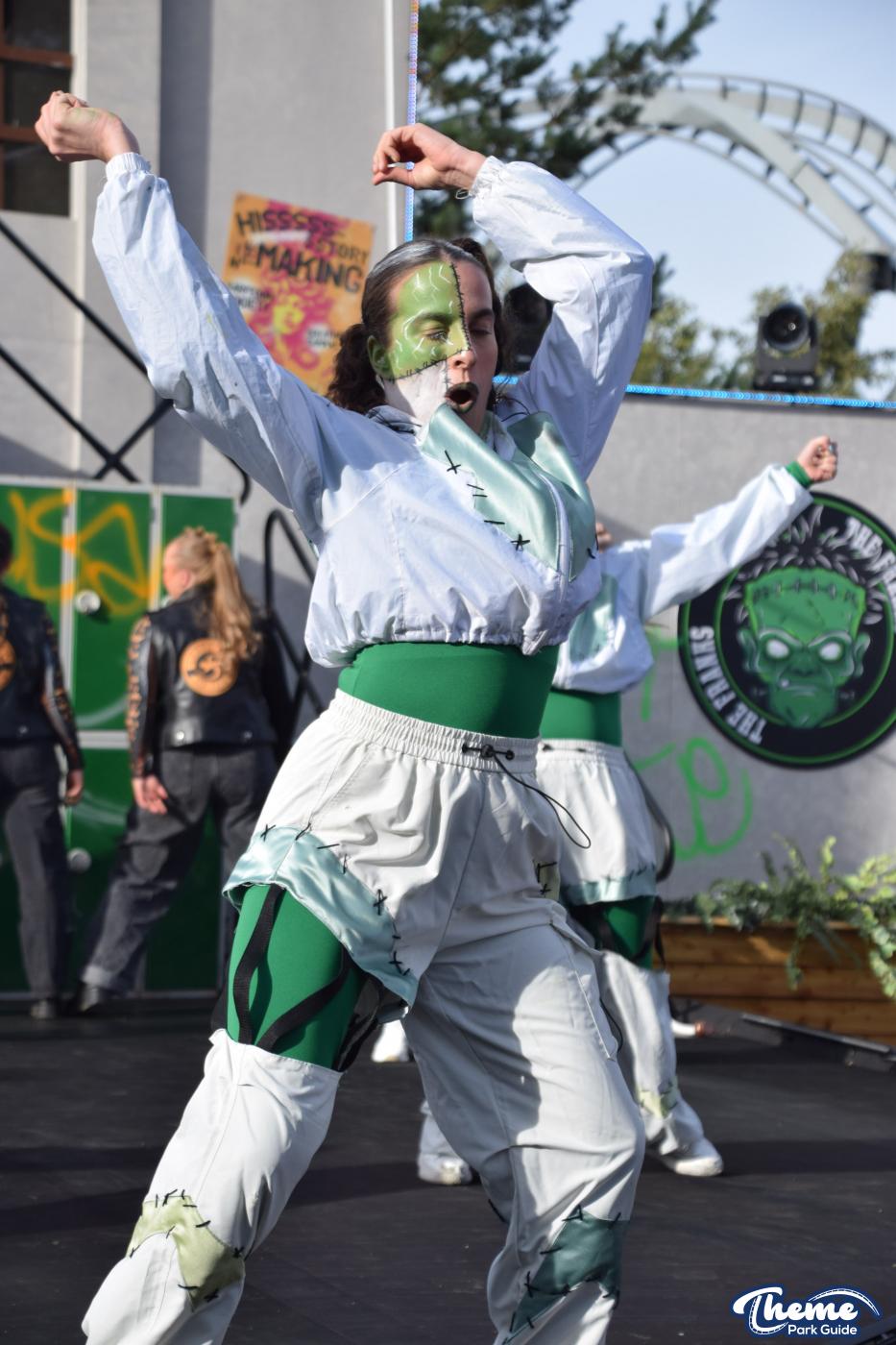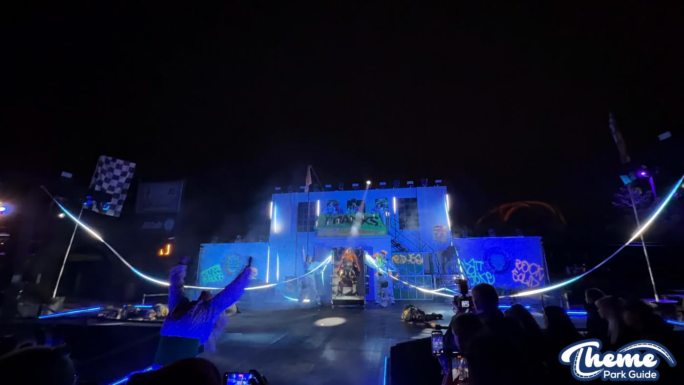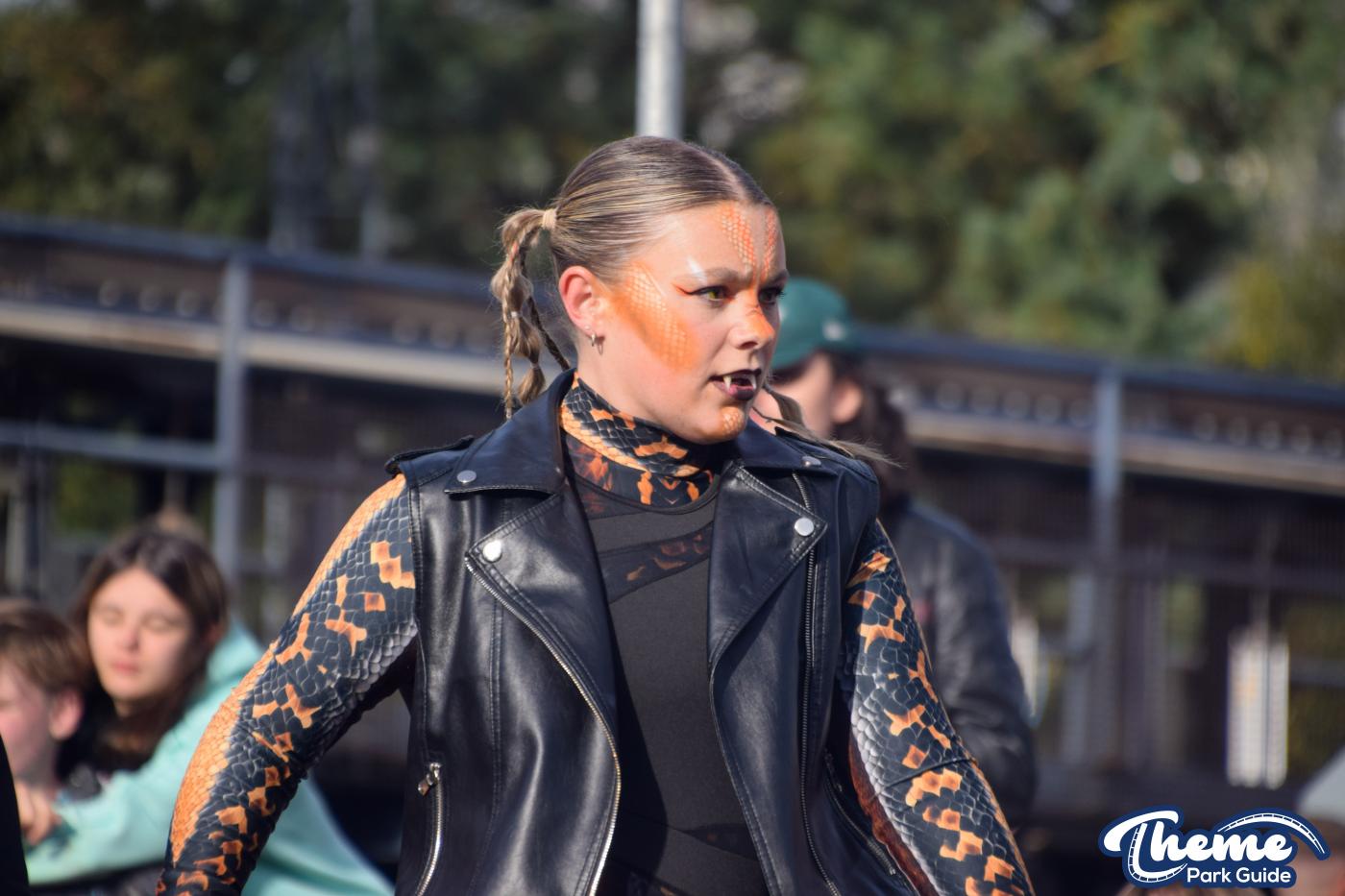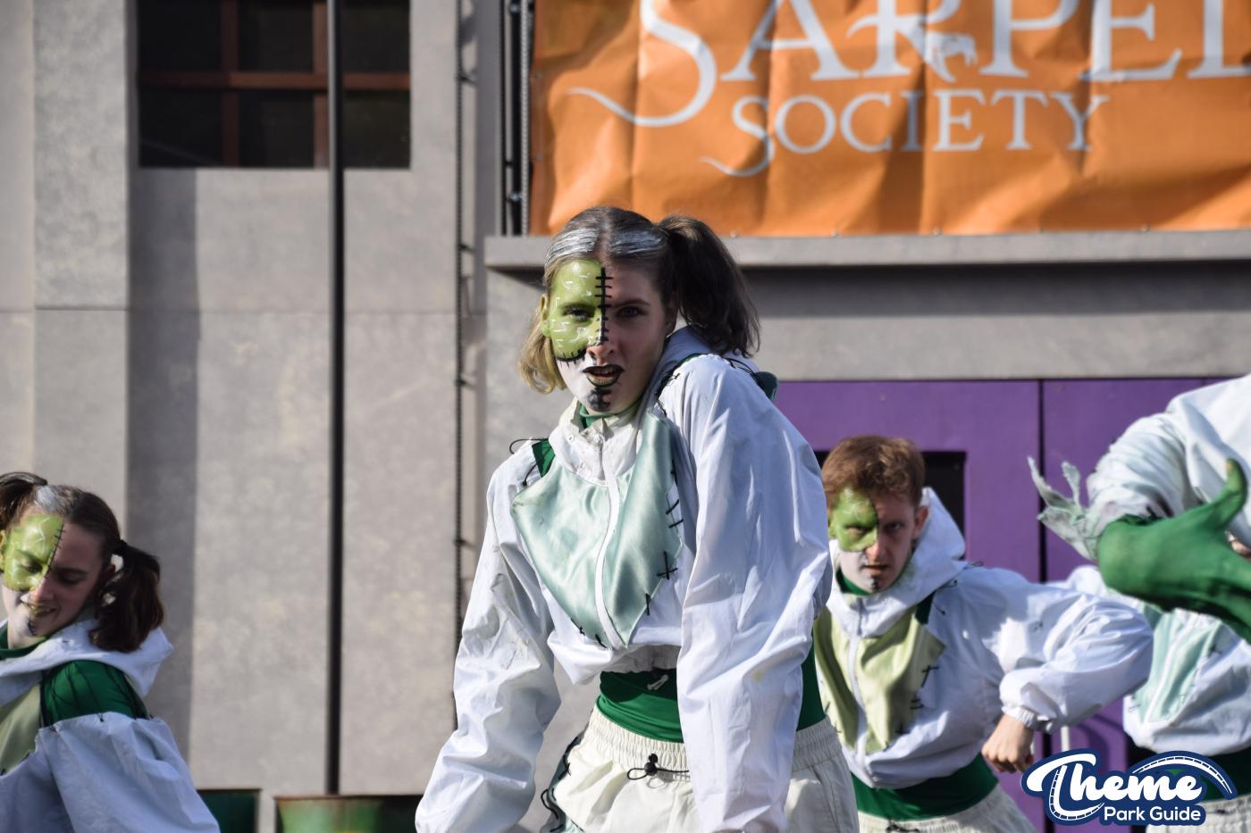 The showpiece of 2025 is undoubtedly Creature Campus: Shock to the System, a reinvention of Thorpe Park’s live entertainment. The stage has been raised, providing excellent sightlines for audiences, and the lighting rig is astonishing – brighter, bolder, and more dynamic than anything seen before at Fright Nights.
