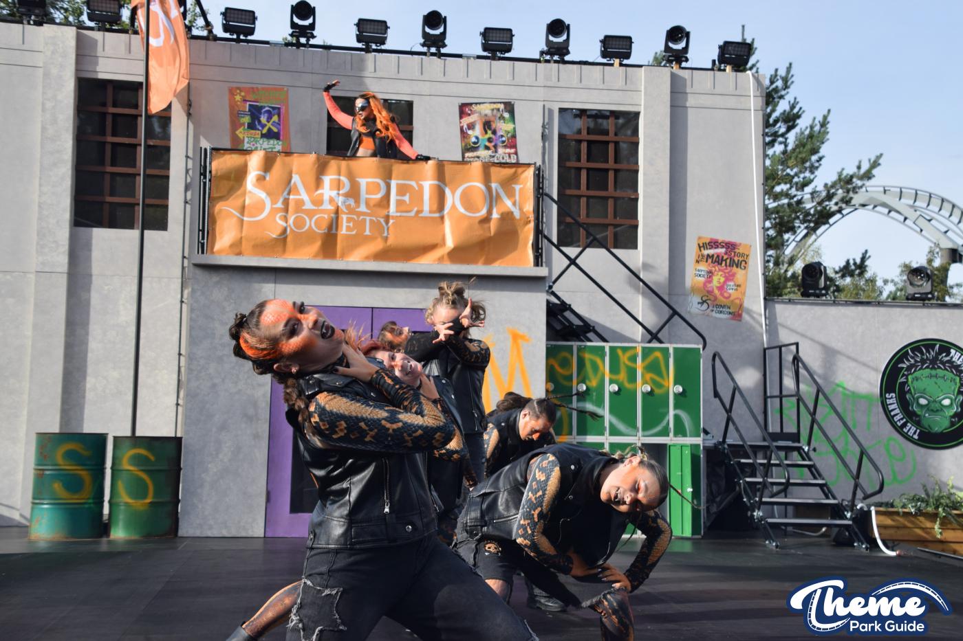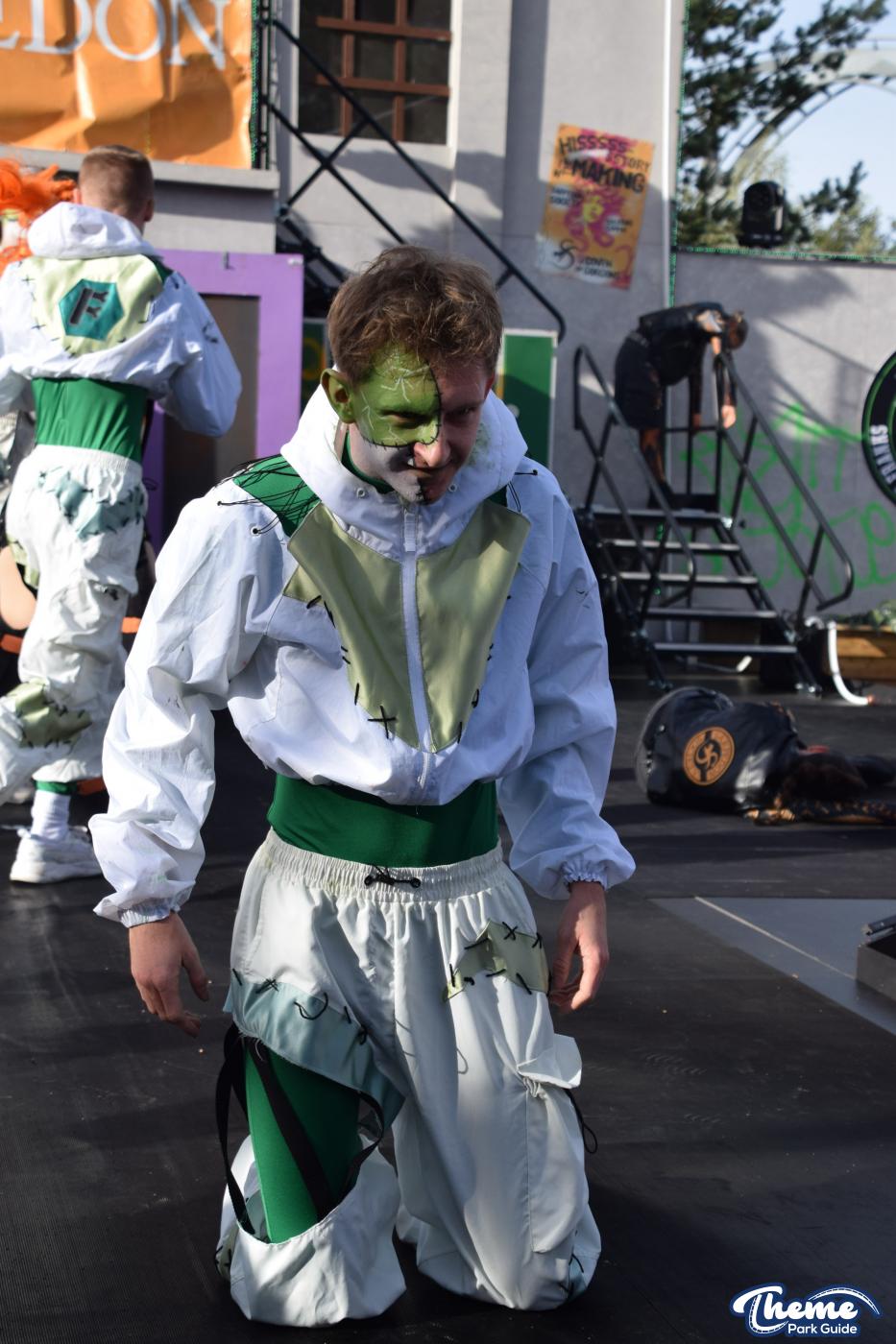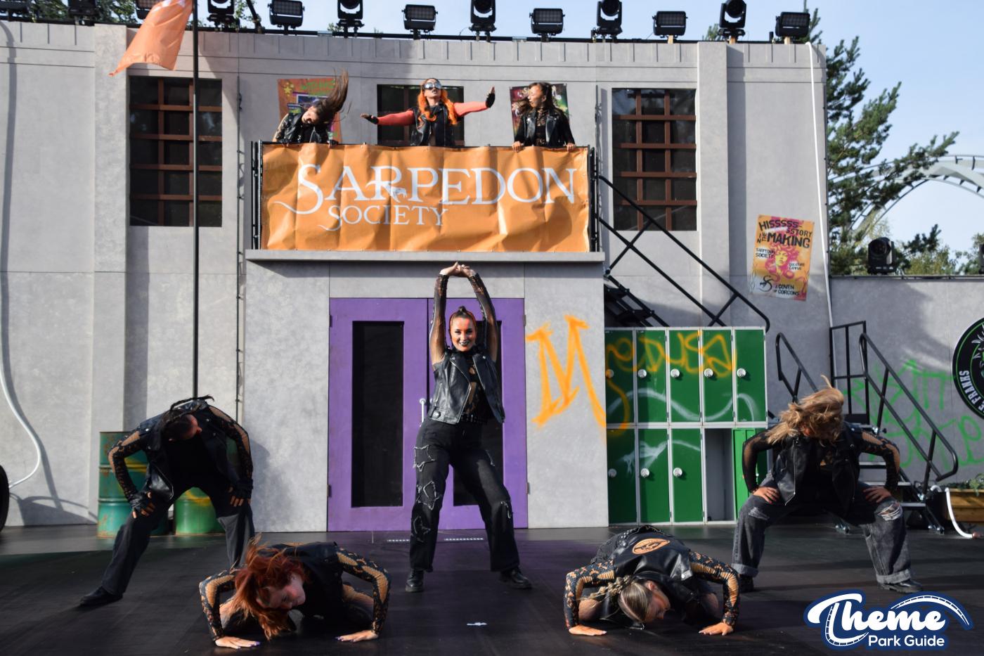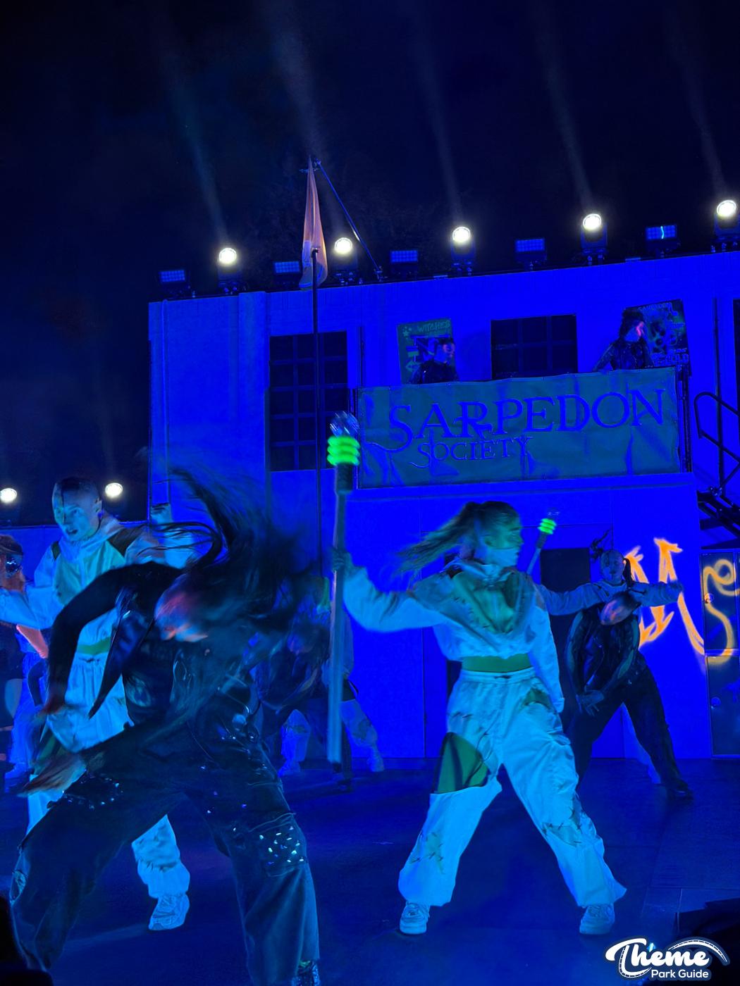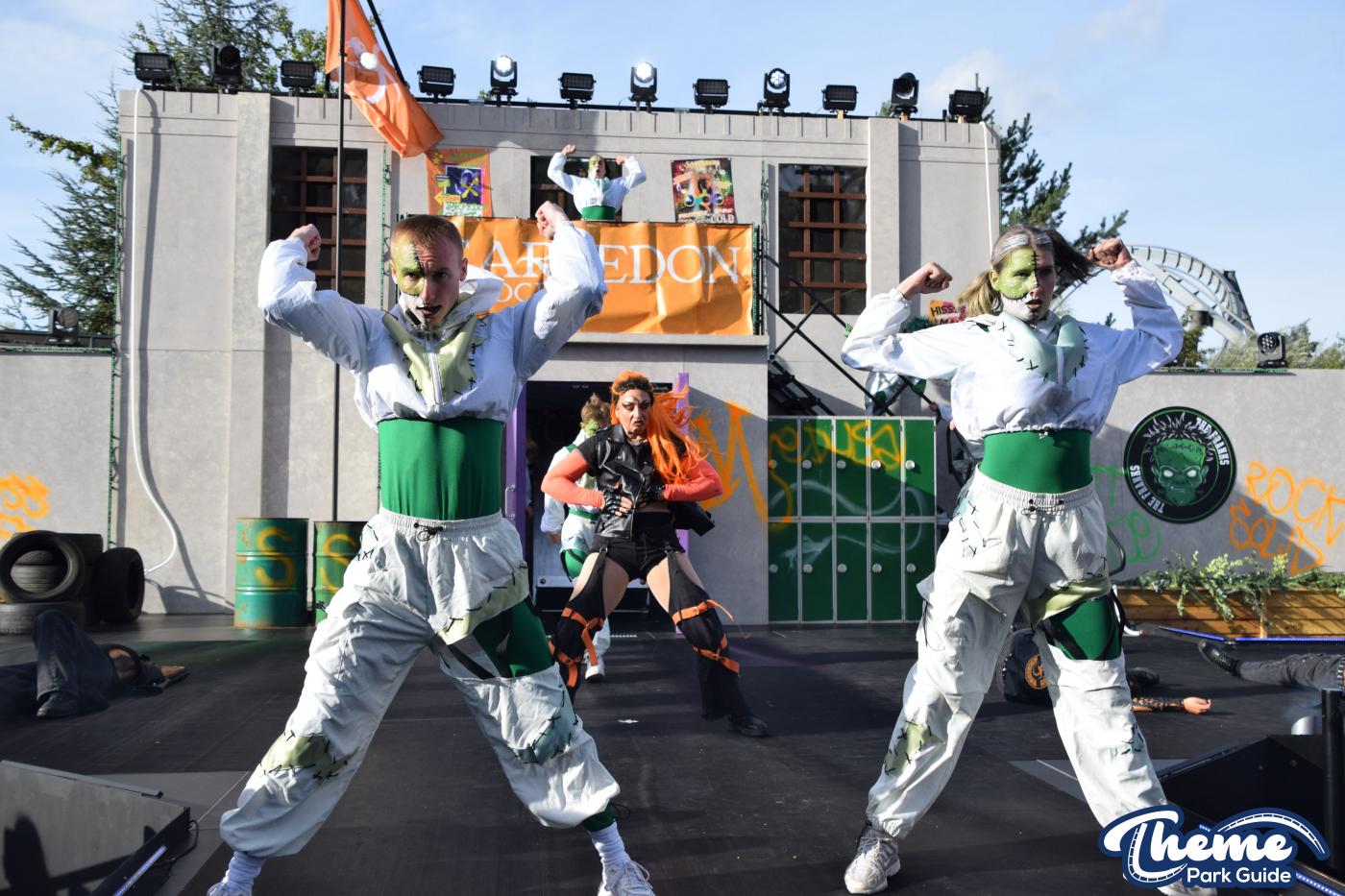 The showpiece of 2025 is undoubtedly Creature Campus: Shock to the System, a reinvention of Thorpe Park’s live entertainment. The stage has been raised, providing excellent sightlines for audiences, and the lighting rig is astonishing – brighter, bolder, and more dynamic than anything seen before at Fright Nights.