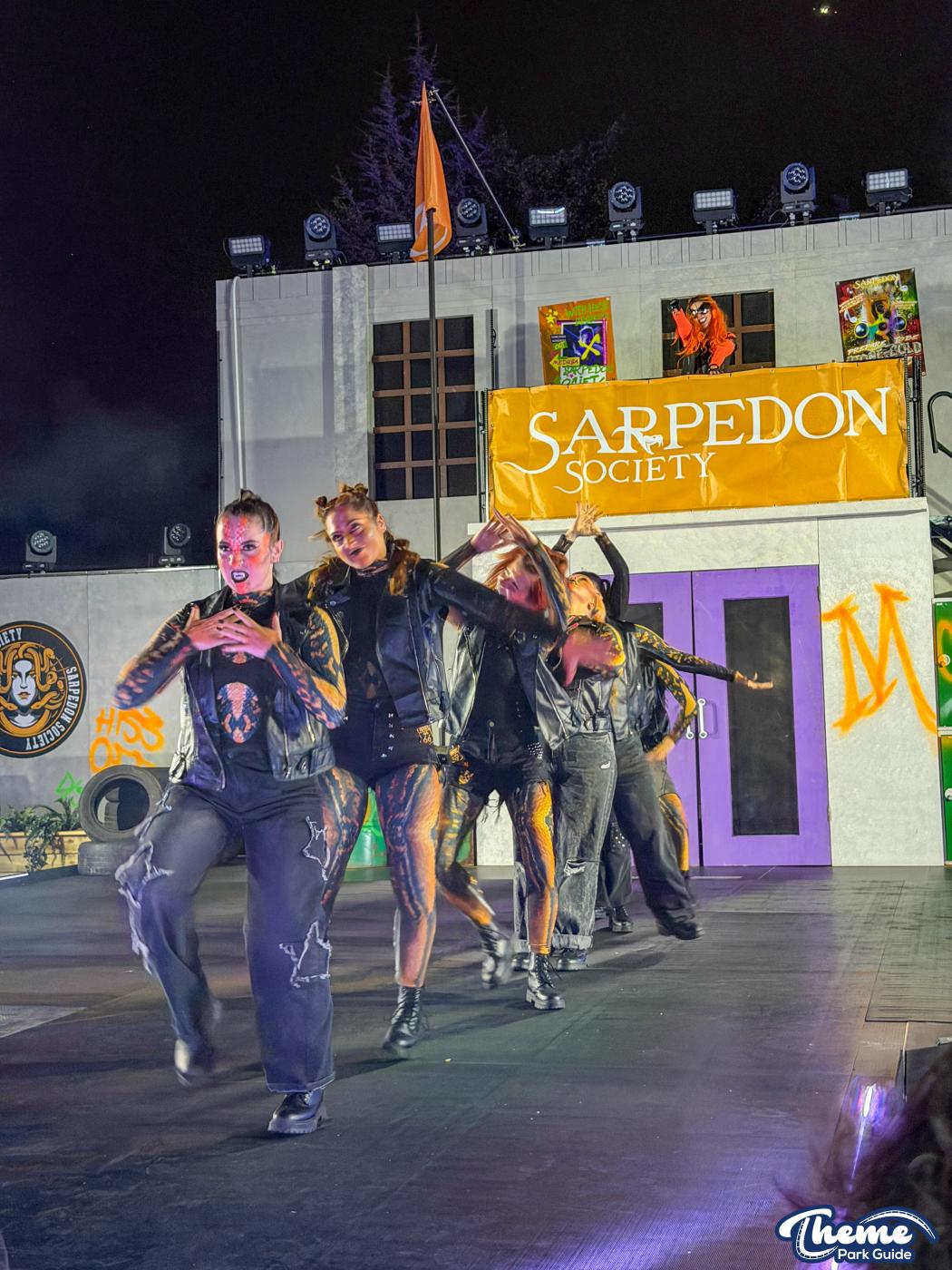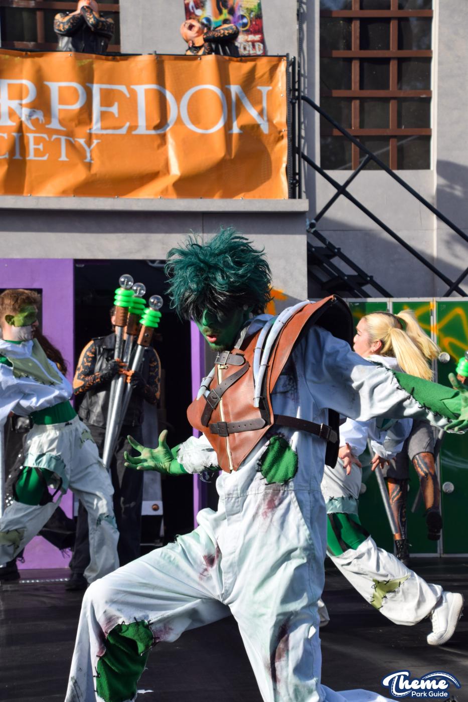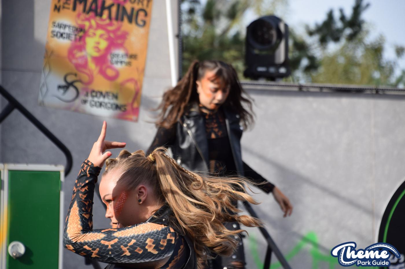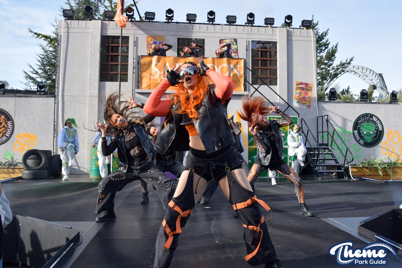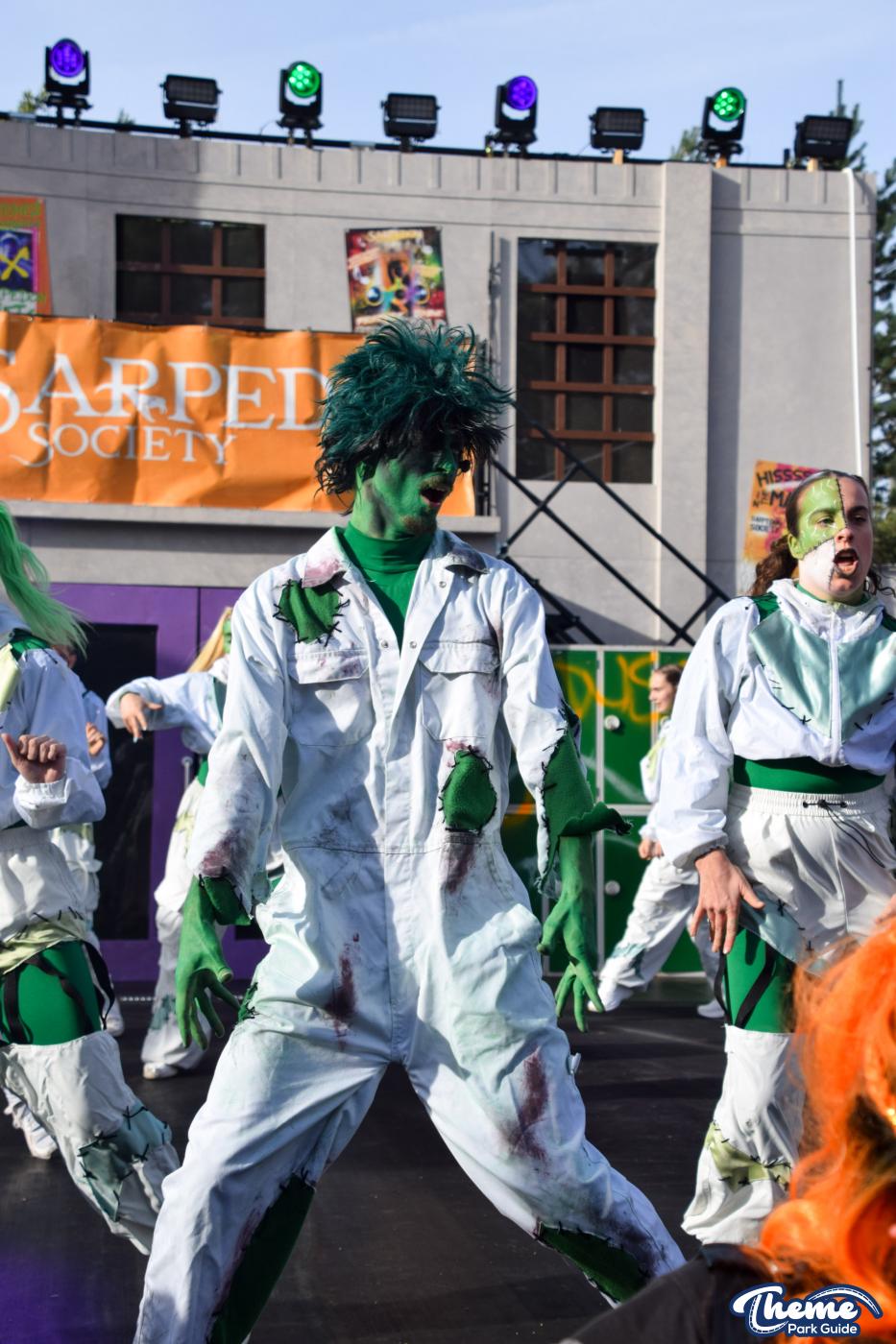 The showpiece of 2025 is undoubtedly Creature Campus: Shock to the System, a reinvention of Thorpe Park’s live entertainment. The stage has been raised, providing excellent sightlines for audiences, and the lighting rig is astonishing – brighter, bolder, and more dynamic than anything seen before at Fright Nights.