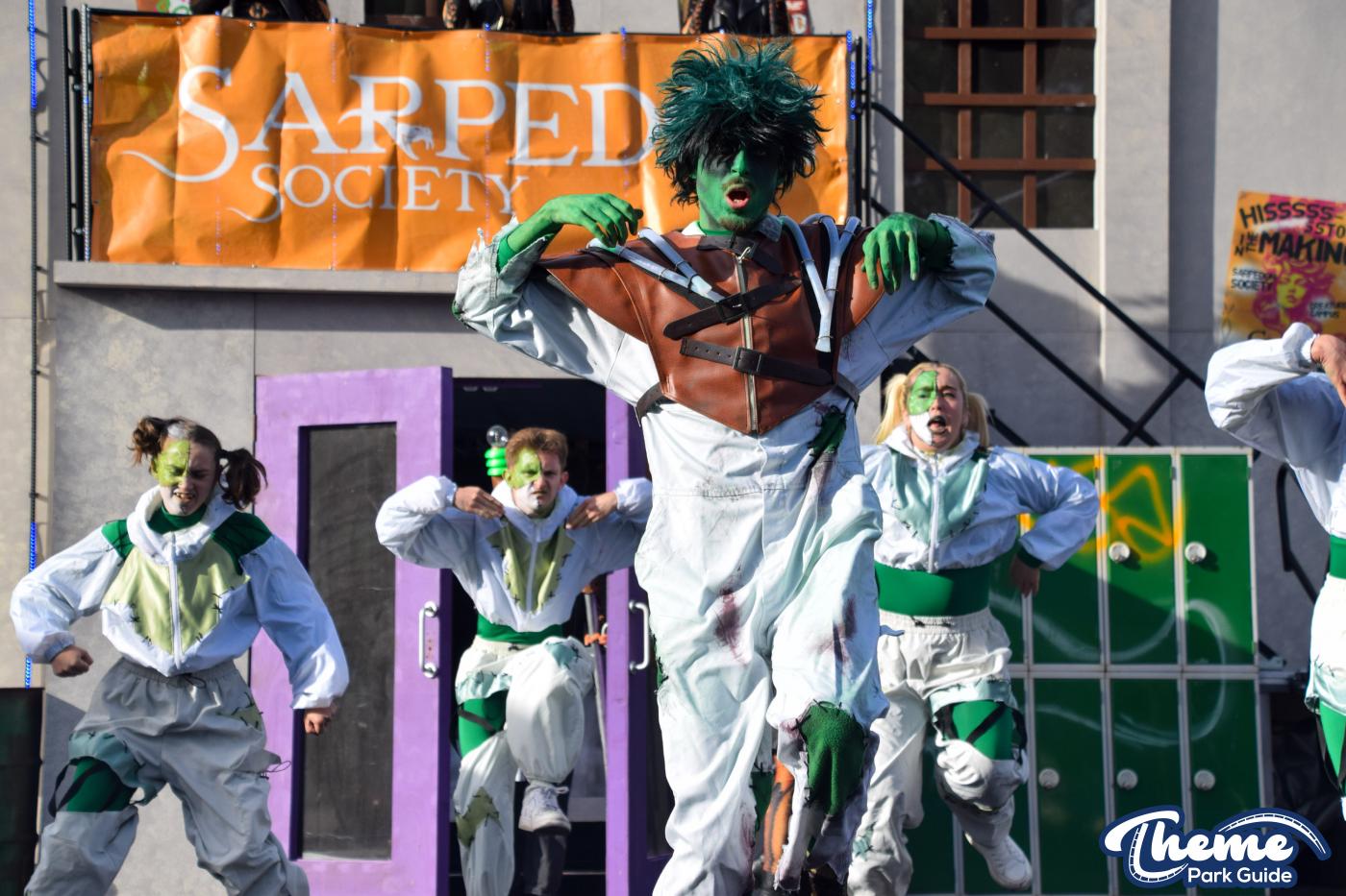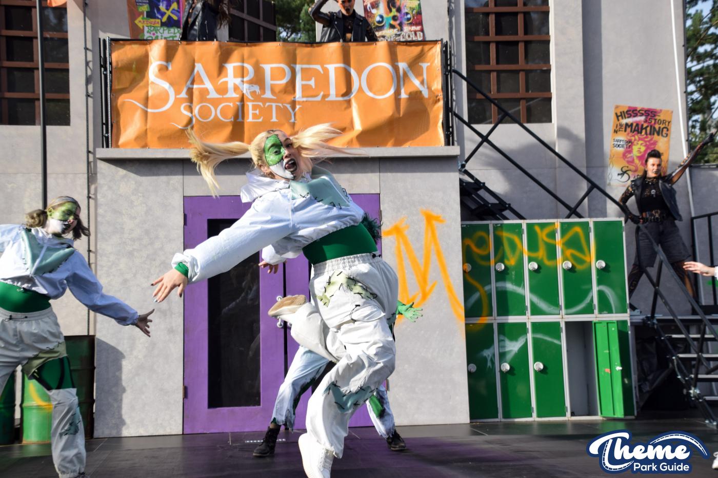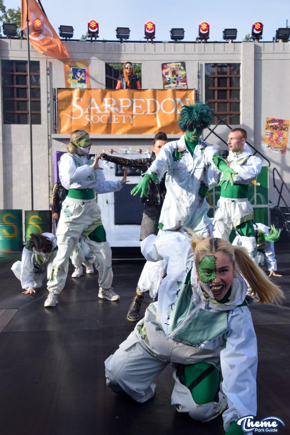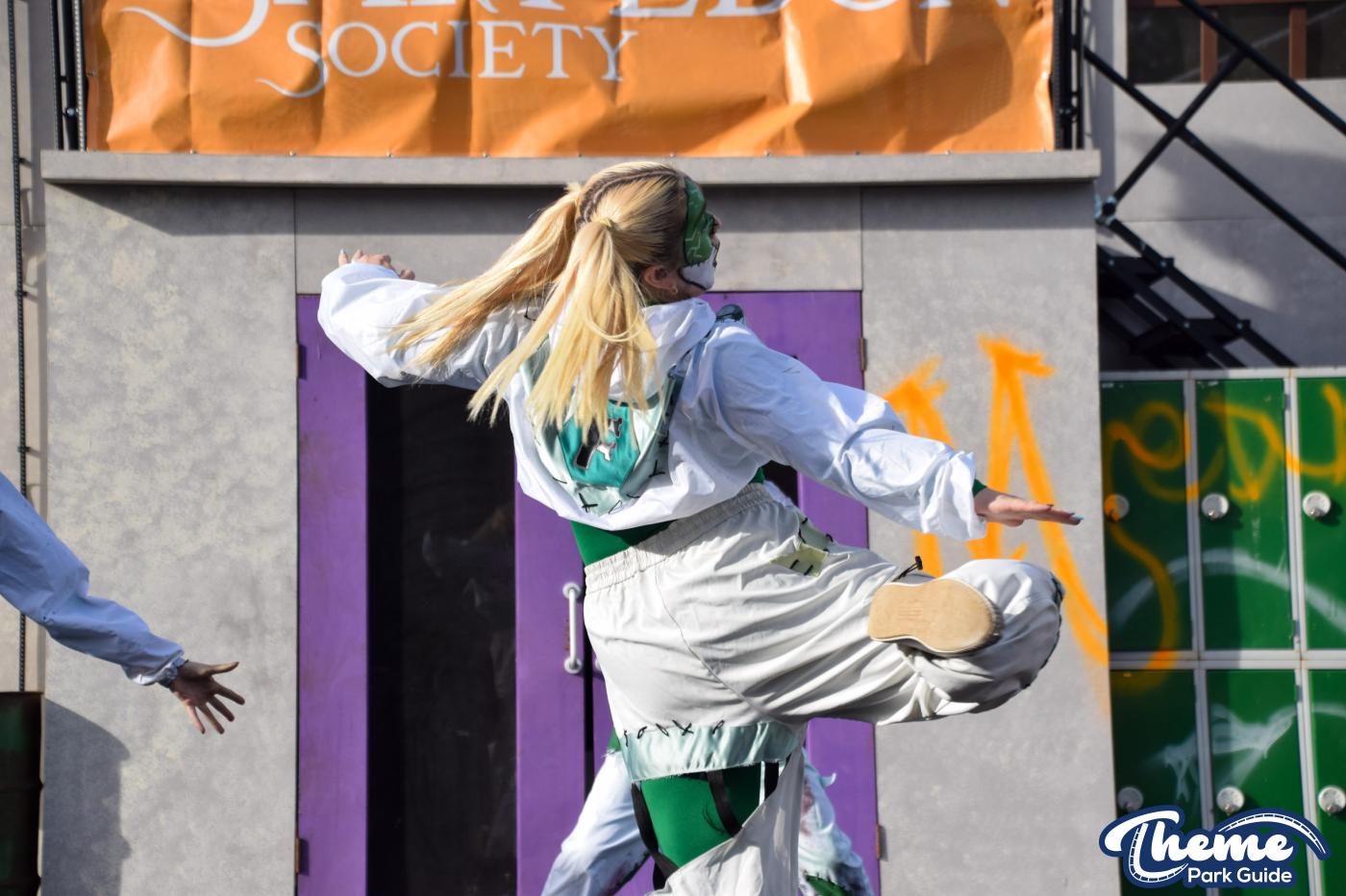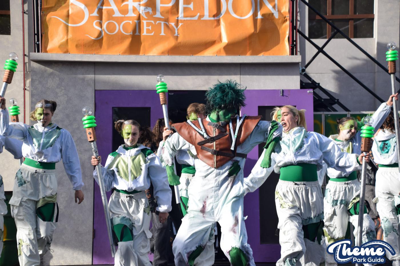 The showpiece of 2025 is undoubtedly Creature Campus: Shock to the System, a reinvention of Thorpe Park’s live entertainment. The stage has been raised, providing excellent sightlines for audiences, and the lighting rig is astonishing – brighter, bolder, and more dynamic than anything seen before at Fright Nights.