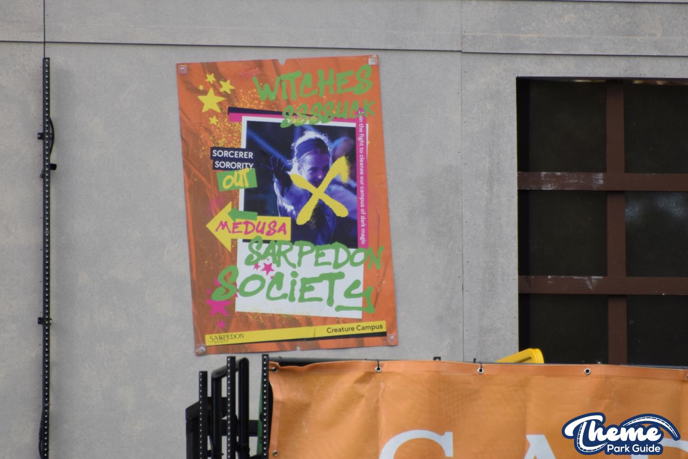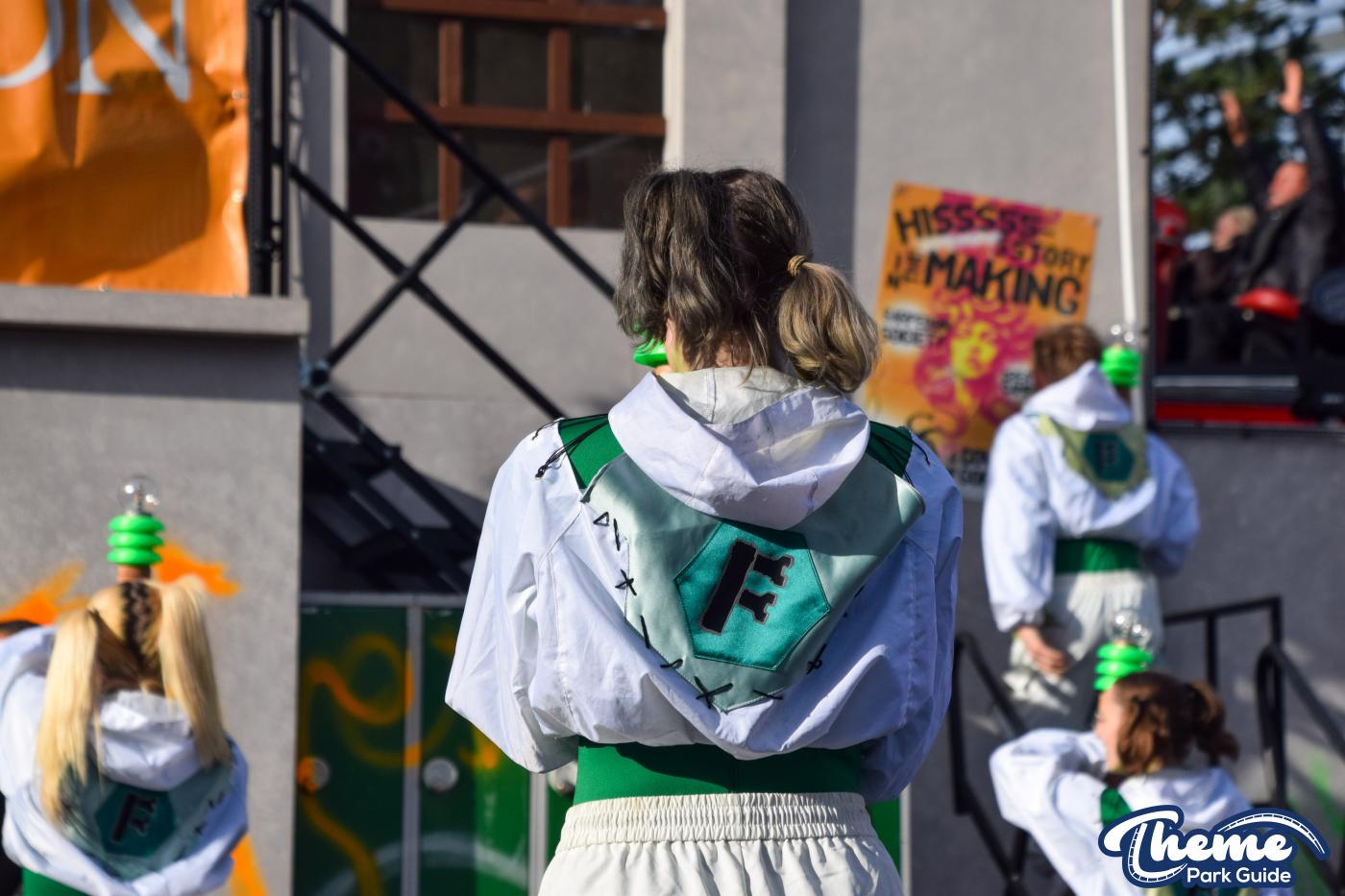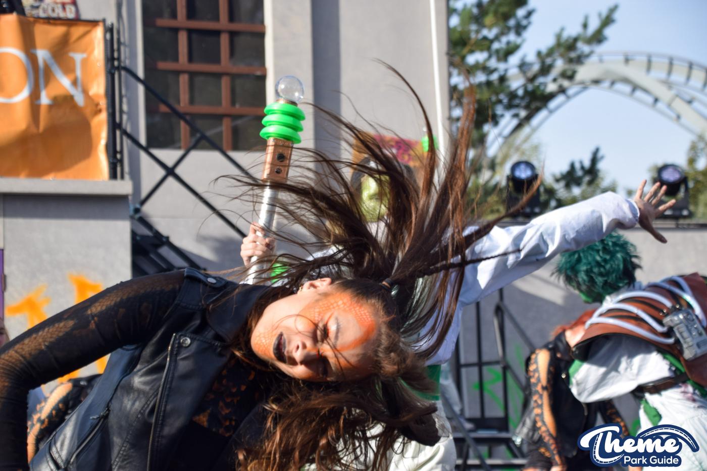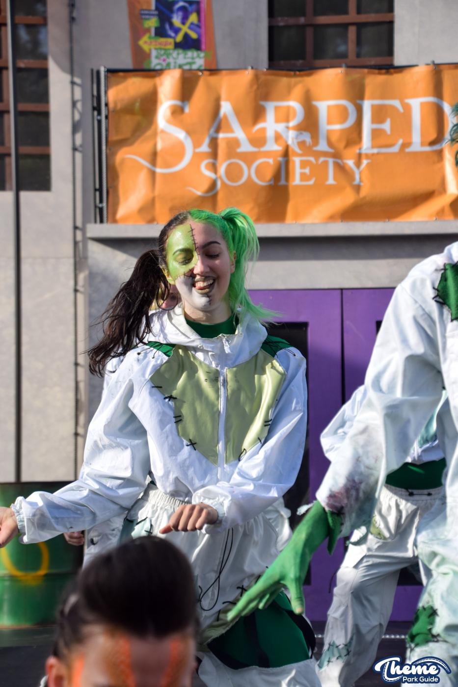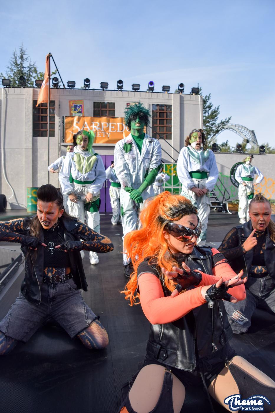 The showpiece of 2025 is undoubtedly Creature Campus: Shock to the System, a reinvention of Thorpe Park’s live entertainment. The stage has been raised, providing excellent sightlines for audiences, and the lighting rig is astonishing – brighter, bolder, and more dynamic than anything seen before at Fright Nights.