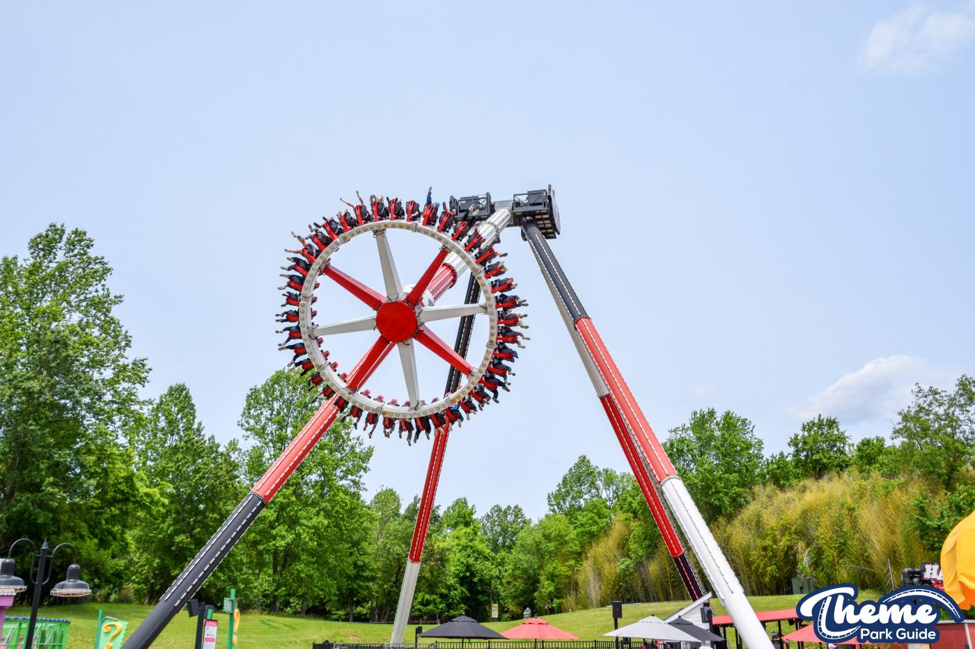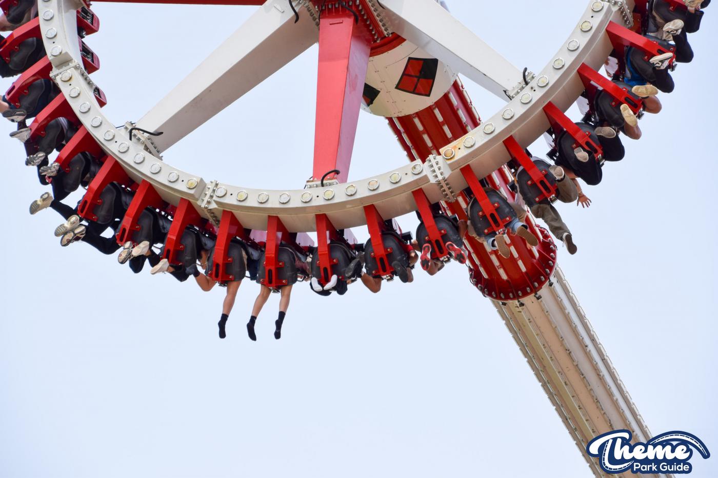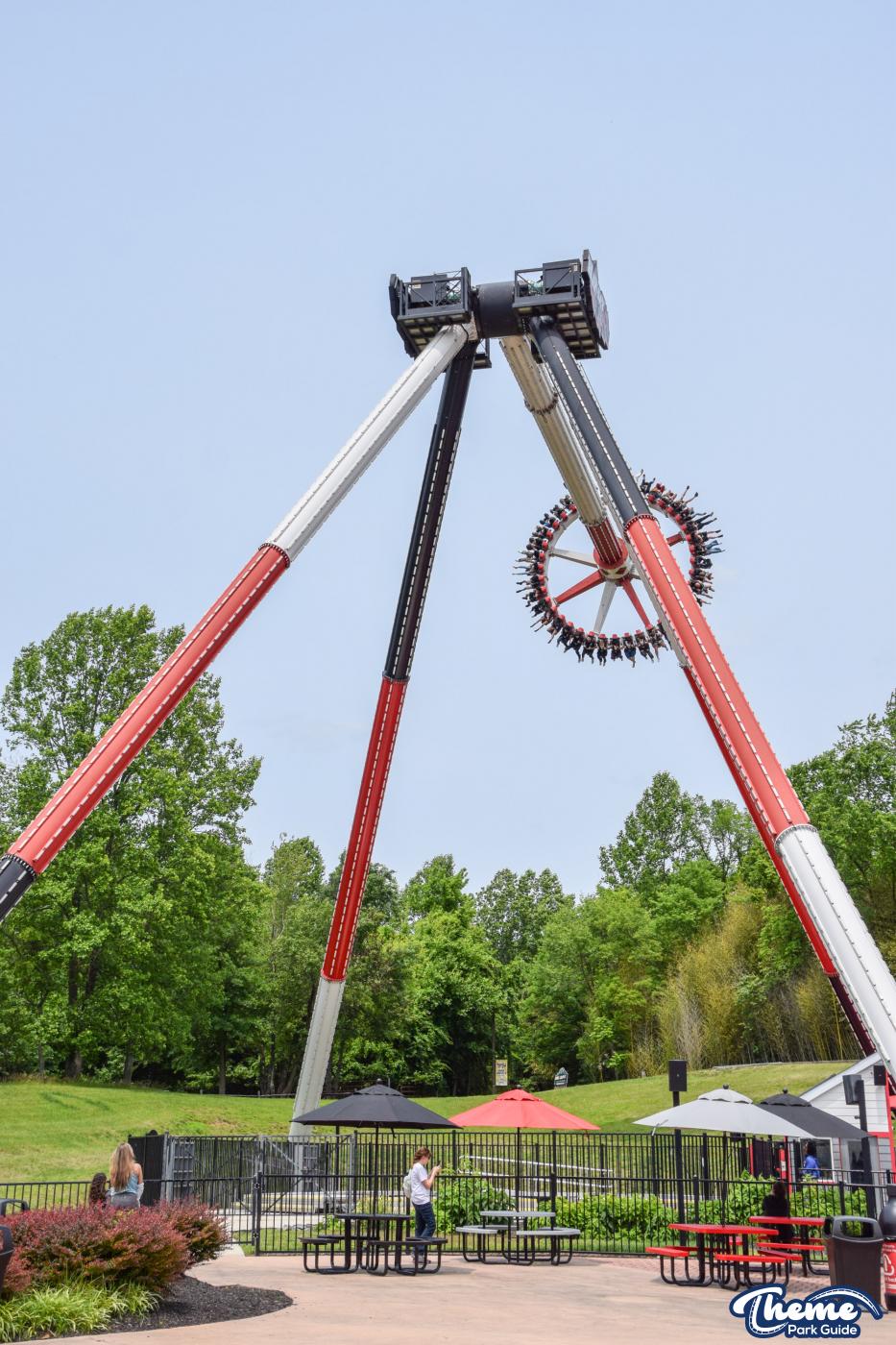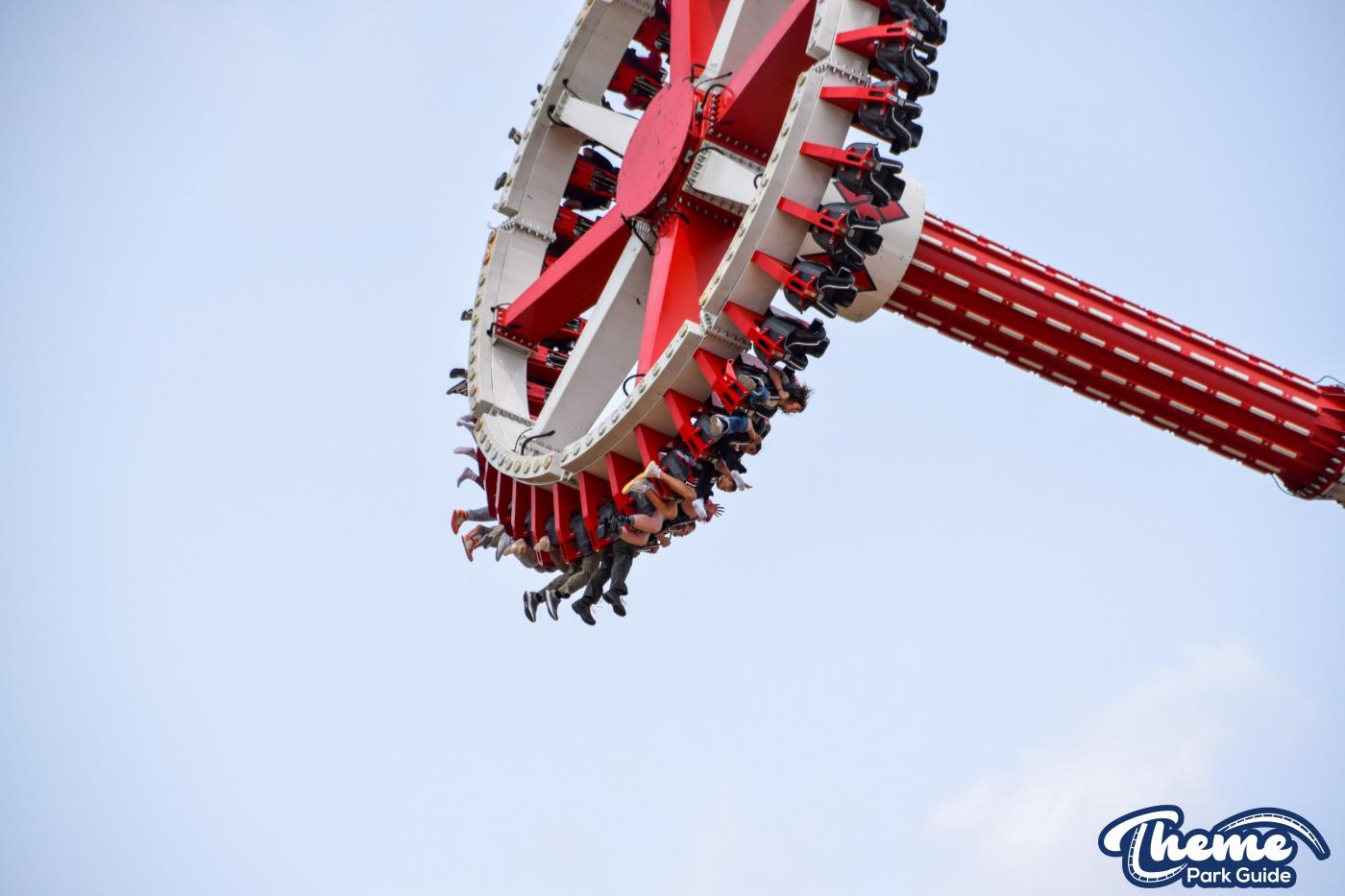 Harley Quinn Spinsanity was one of Six Flags America’s most visually striking thrill rides, located in the Gotham City area. Opened in 2021, the pendulum-style attraction swung riders up to 15 stories in the air while spinning at high speeds—reaching up to 70 mph at the peak of each swing. Manufactured by Zamperla, it seated 40 riders who rotated counter-clockwise as the pendulum arced back and forth, creating intense sensations of weightlessness. The ride was themed to the chaotic DC villain Harley Quinn and stood out as one of the tallest and fastest pendulum rides in the region, adding a new level of thrill to the park’s lineup in its final years.