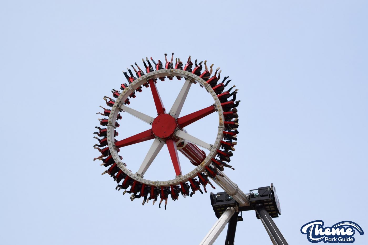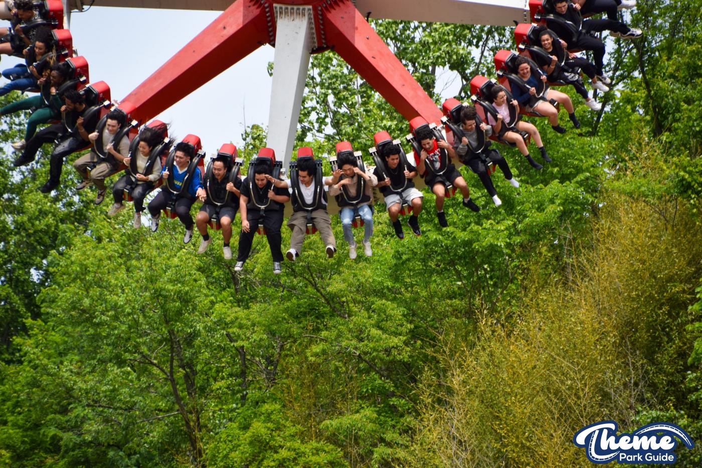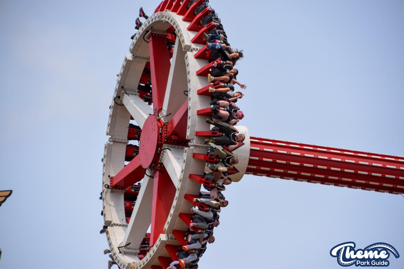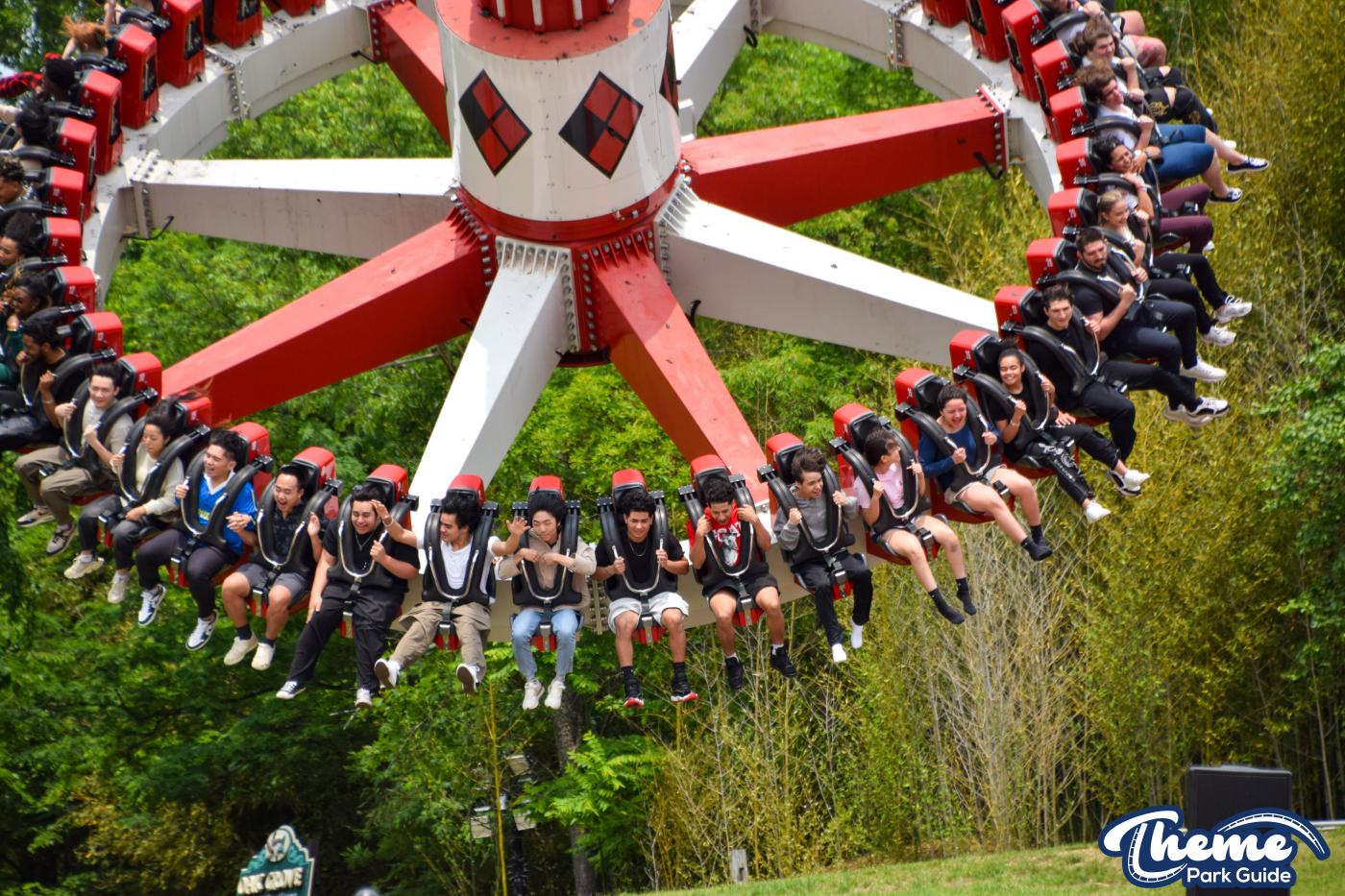Harley Quinn Spinsanity was one of Six Flags America’s most visually striking thrill rides, located in the Gotham City area. Opened in 2021, the pendulum-style attraction swung riders up to 15 stories in the air while spinning at high speeds—reaching up to 70 mph at the peak of each swing. Manufactured by Zamperla, it seated 40 riders who rotated counter-clockwise as the pendulum arced back and forth, creating intense sensations of weightlessness. The ride was themed to the chaotic DC villain Harley Quinn and stood out as one of the tallest and fastest pendulum rides in the region, adding a new level of thrill to the park’s lineup in its final years.