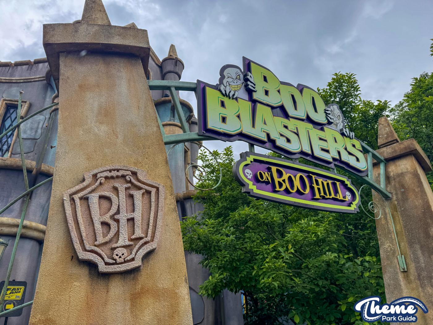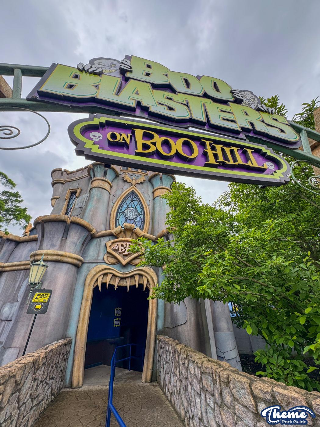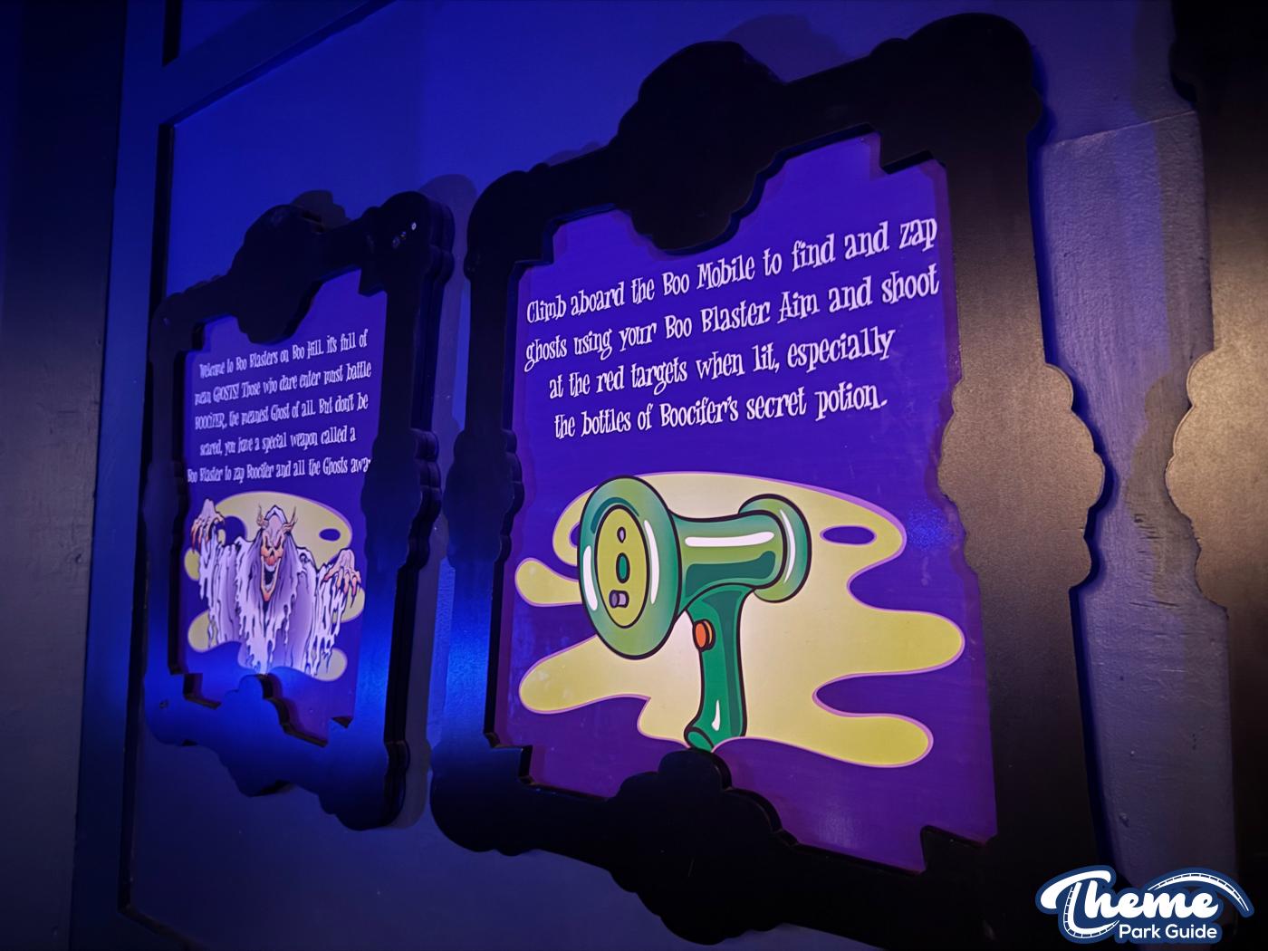 Boo Blasters on Boo Hill was a family-friendly interactive dark ride where guests used laser blasters to score points by hitting targets throughout a series of spooky, cartoon-style scenes. Set inside a haunted manor, it blended practical sets, blacklight effects, and lighthearted humor, making it a popular attraction for younger riders and families. Its mix of gentle motion and competitive gameplay made it an accessible introduction to dark rides and Halloween-style theming. The attraction has now officially closed, marking the end of its run as the park prepares the space for a future experience.