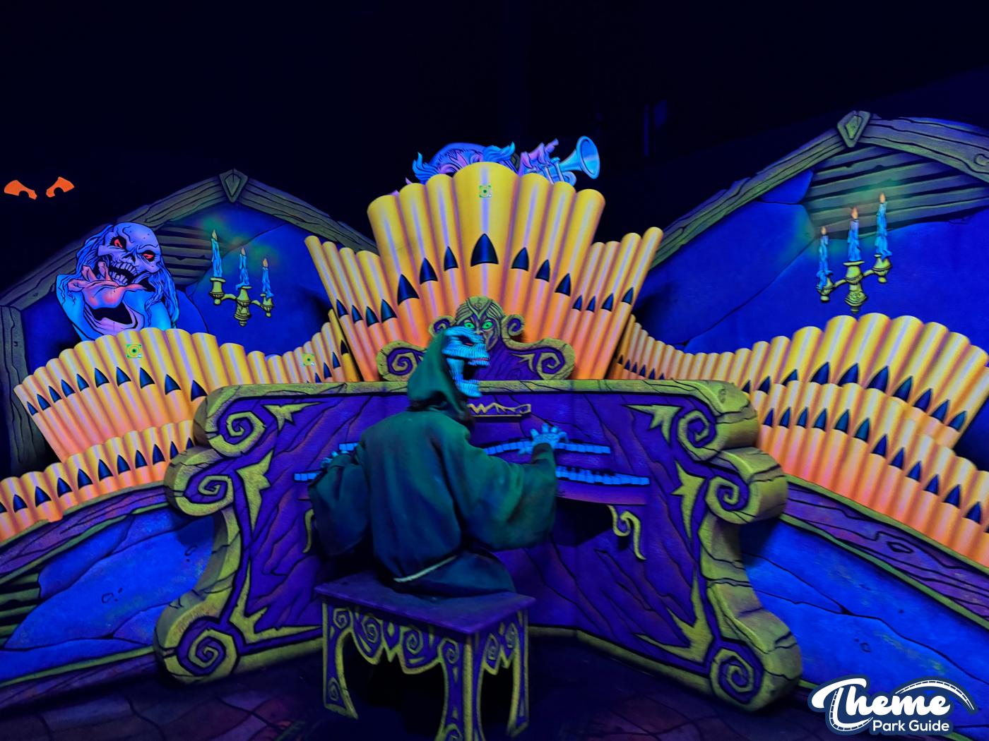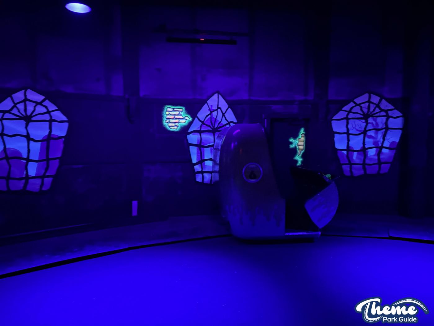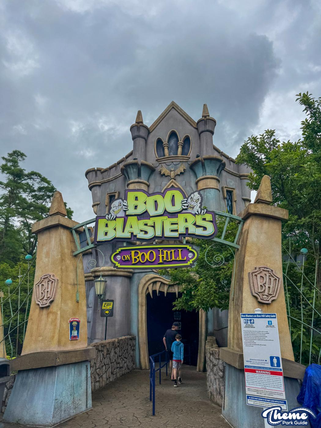 Boo Blasters on Boo Hill was a family-friendly interactive dark ride where guests used laser blasters to score points by hitting targets throughout a series of spooky, cartoon-style scenes. Set inside a haunted manor, it blended practical sets, blacklight effects, and lighthearted humor, making it a popular attraction for younger riders and families. Its mix of gentle motion and competitive gameplay made it an accessible introduction to dark rides and Halloween-style theming. The attraction has now officially closed, marking the end of its run as the park prepares the space for a future experience.