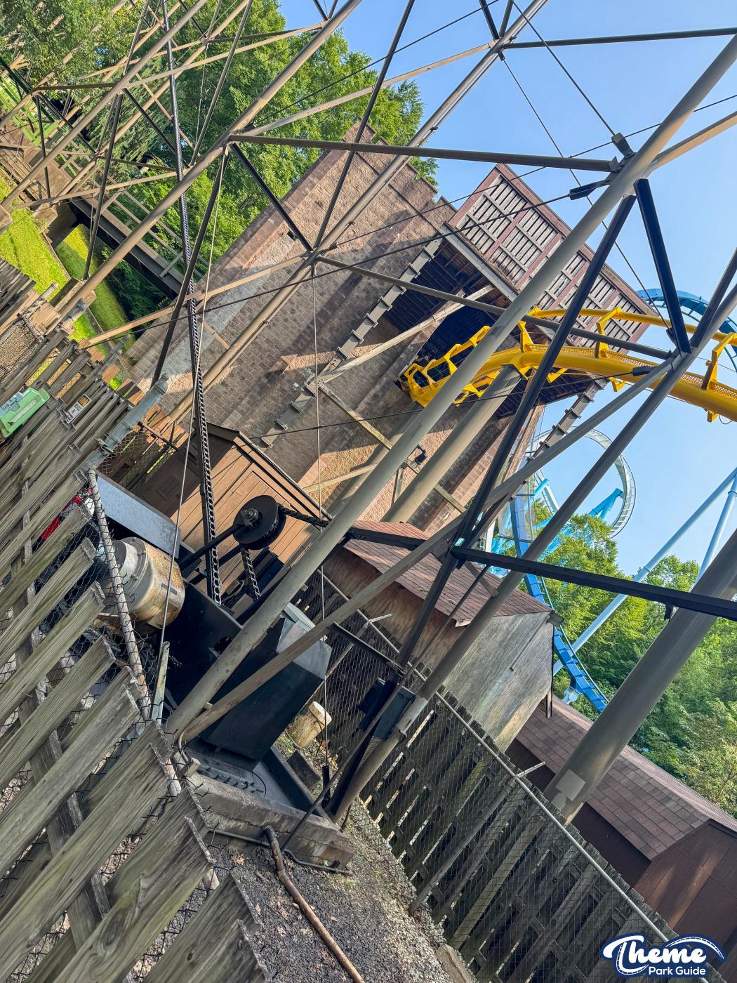 Following our time with the Loch Ness Monster, we made our way to the second part of the day’s behind-the-scenes experience — Griffon. Here, we were treated to an up-close look at the base of the first lift hill, the motor house, and even glimpses of some of the pre-show areas on the route to the lift. Seeing these engineering marvels from such a close perspective was both educational and awe-inspiring.