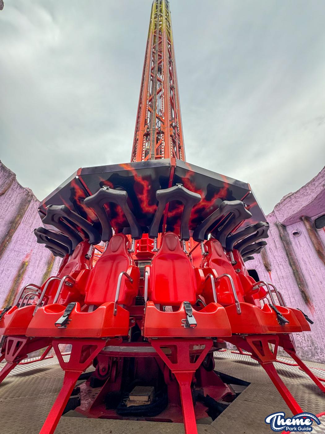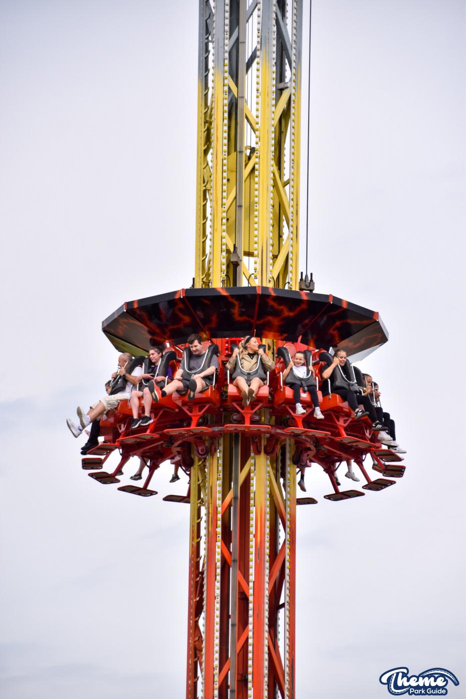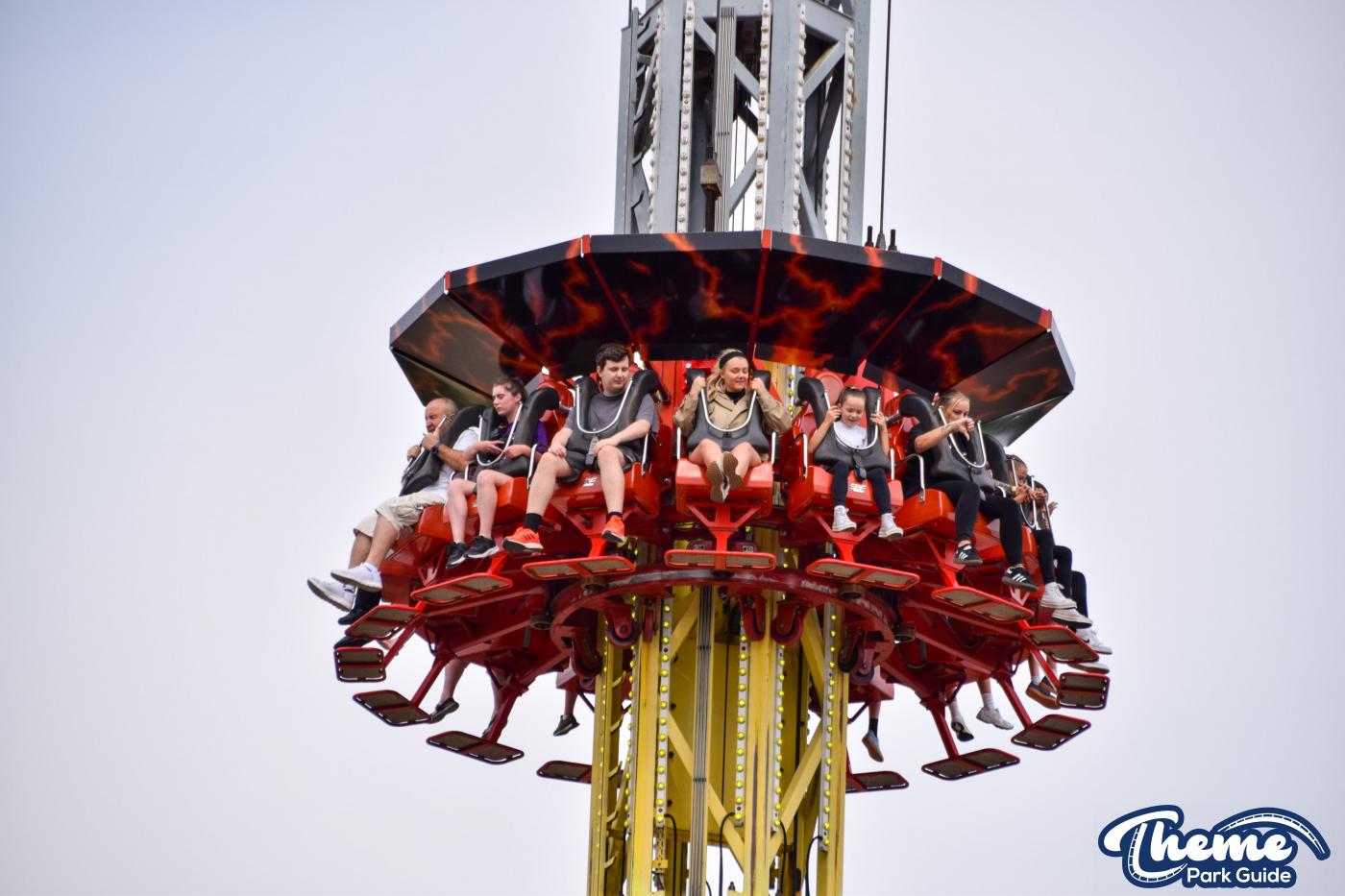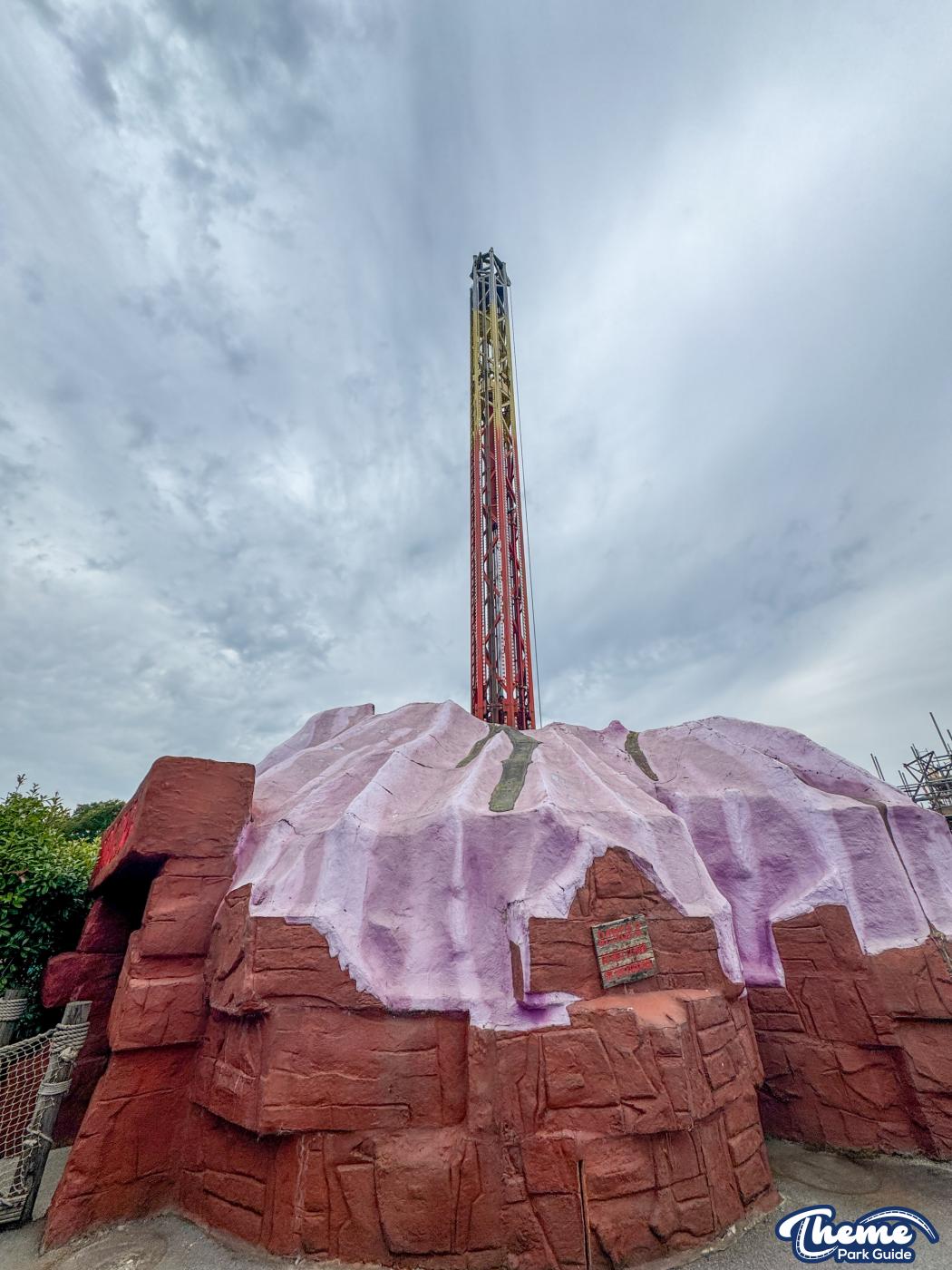 Hidden beneath the silently smoking volcano MAGMA awaits. Only the brave enter the caverns of molten rock and discover the Jurassic secret entombed below. When MAGMA erupts adventurers rise up and spin out from the smoke 25 metres into the clear sky above, only to face a stomach churning plunge back into the fiery heart of the mountain below!