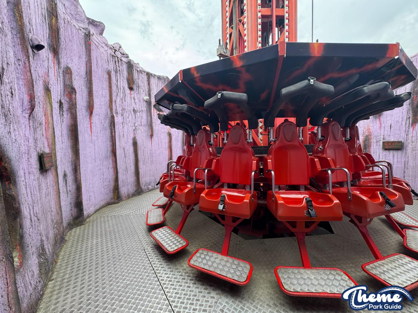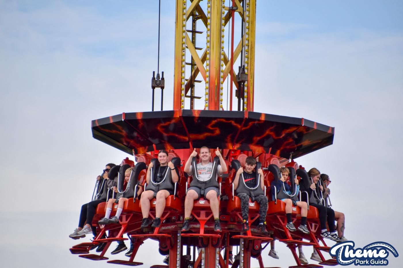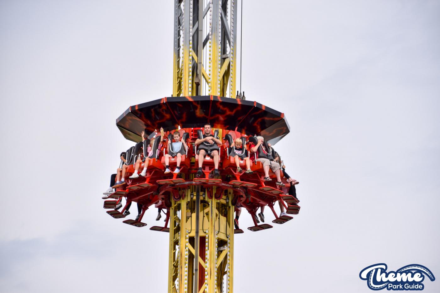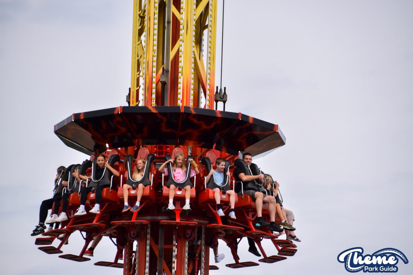 Hidden beneath the silently smoking volcano MAGMA awaits. Only the brave enter the caverns of molten rock and discover the Jurassic secret entombed below. When MAGMA erupts adventurers rise up and spin out from the smoke 25 metres into the clear sky above, only to face a stomach churning plunge back into the fiery heart of the mountain below!