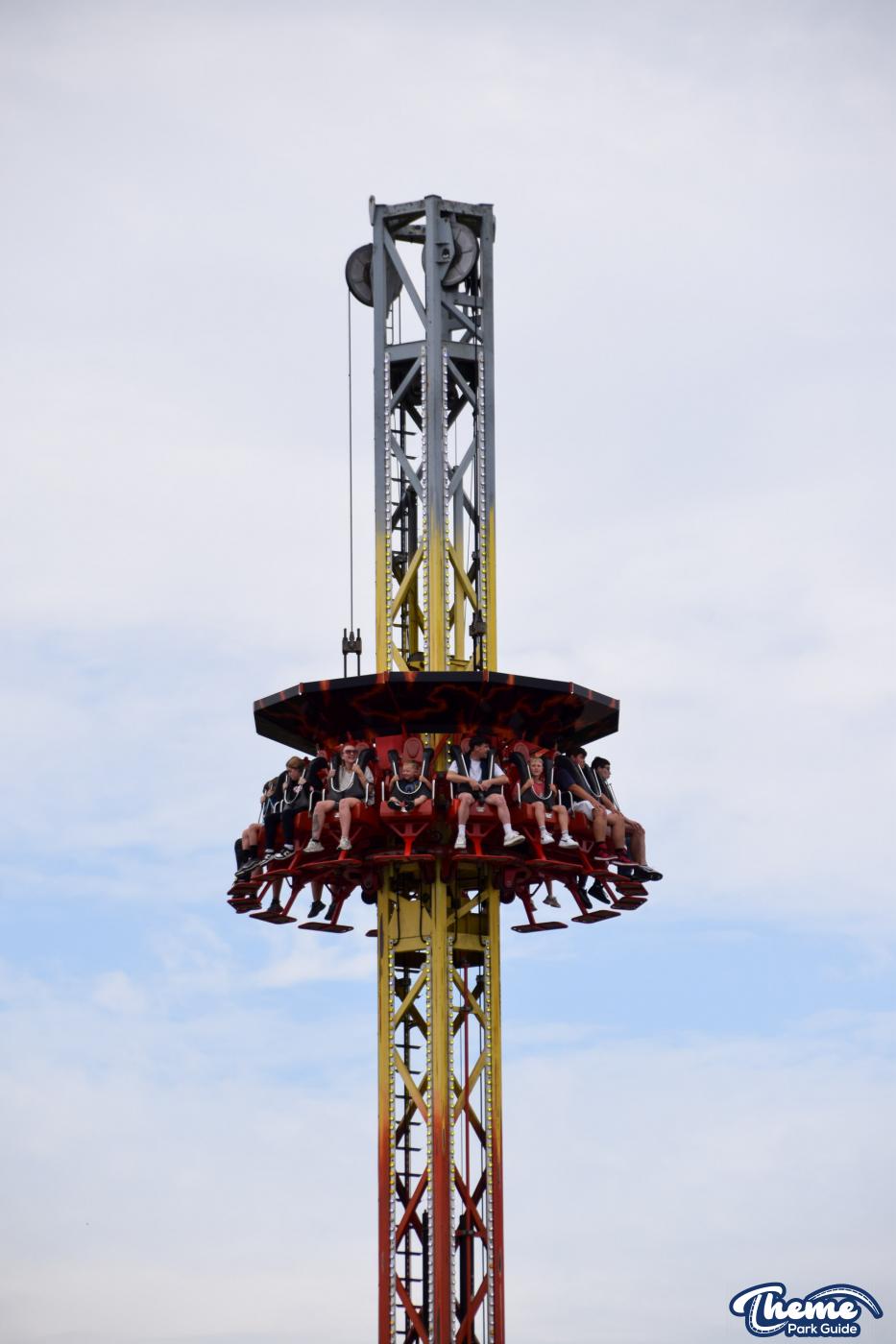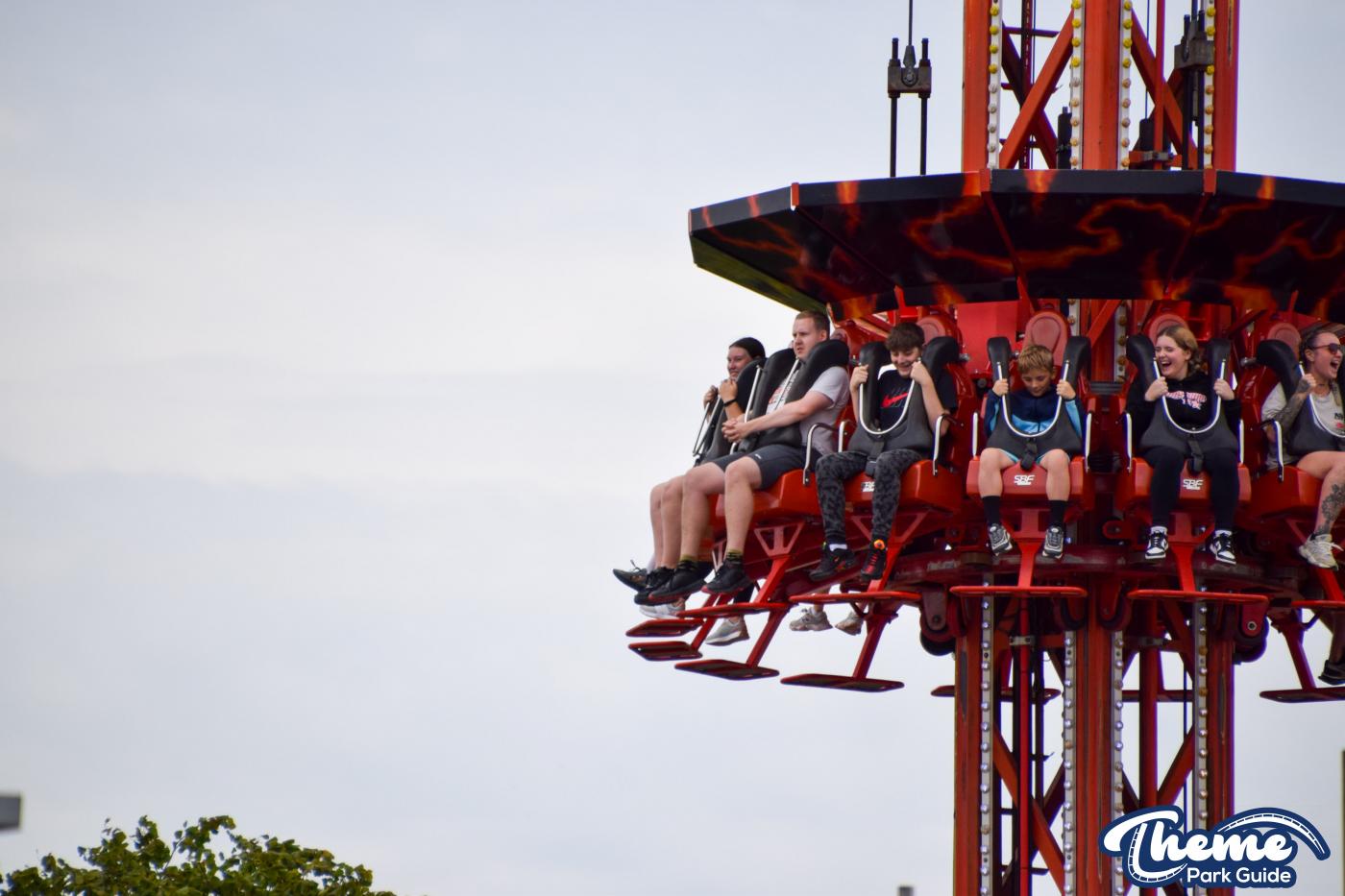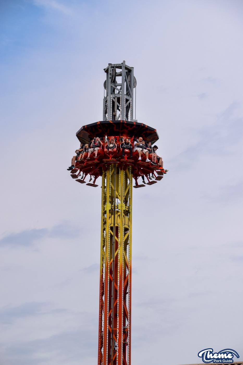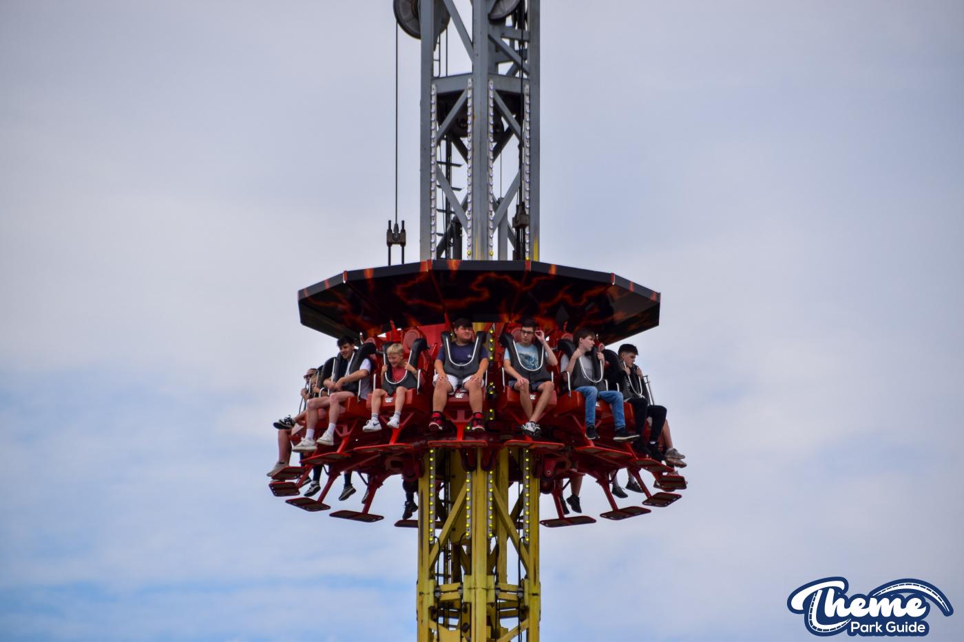 Hidden beneath the silently smoking volcano MAGMA awaits. Only the brave enter the caverns of molten rock and discover the Jurassic secret entombed below. When MAGMA erupts adventurers rise up and spin out from the smoke 25 metres into the clear sky above, only to face a stomach churning plunge back into the fiery heart of the mountain below!