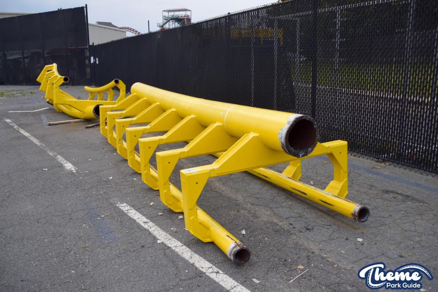 Nighthawk was once a flying coaster that let riders soar face-down through loops and turns, creating the feeling of gliding across the park. Although the ride has now been removed from Carowinds, its memory still lingers for those who experienced its unique layout. When visiting, you can still spot pieces of the old roller-coaster track sitting out in the parking lot, a reminder of the attraction that once stood there.