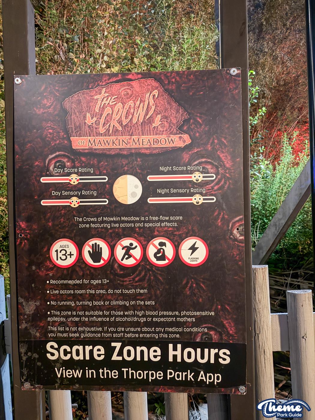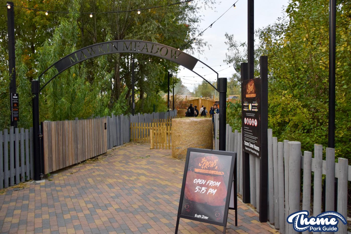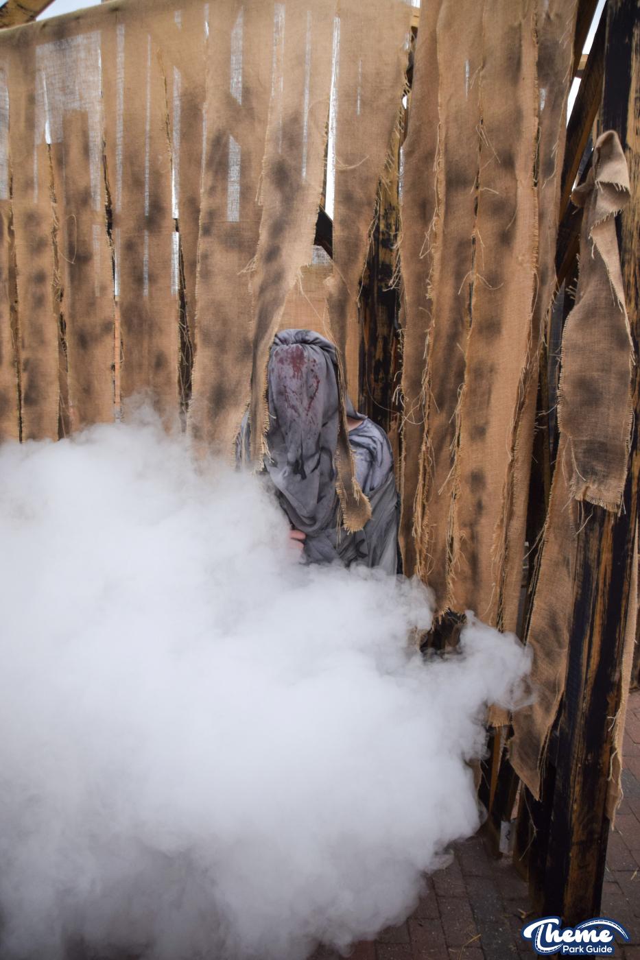 The Crows Of Mawkin Meadow have returned for another year of nightmares, however, this year this small scare zone has been given a huge upgrade and expansion. Previously you would only have 1 route to take through the scare zone whereas this year there are now 2 routes through The Crows scare zone. Route 1 follows the same path as last year, whereas route number 2 takes you through sections of the old Saw Alive queue line. Walking through "Crones Cottage" you come face to face with the village of The Crows, walking through this small village you can see the remains of a cottage and the homes of some of The Crows. We absolutely love the evolution of the crows and it feels like every year the crow cast and story grow stronger and stronger, with the scare zone getting expanded this year. Could we see them feature in a maze next year? Other changes in the scare zone are a huge new sign at the entrance and some new farm-style fences creating a slalom effect towards the end of the maze. There's no escape from The Crows!