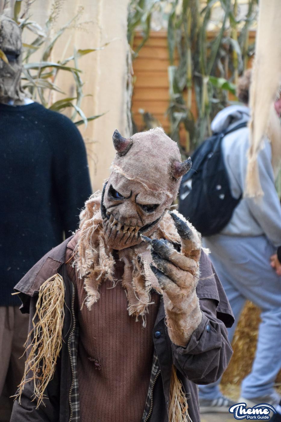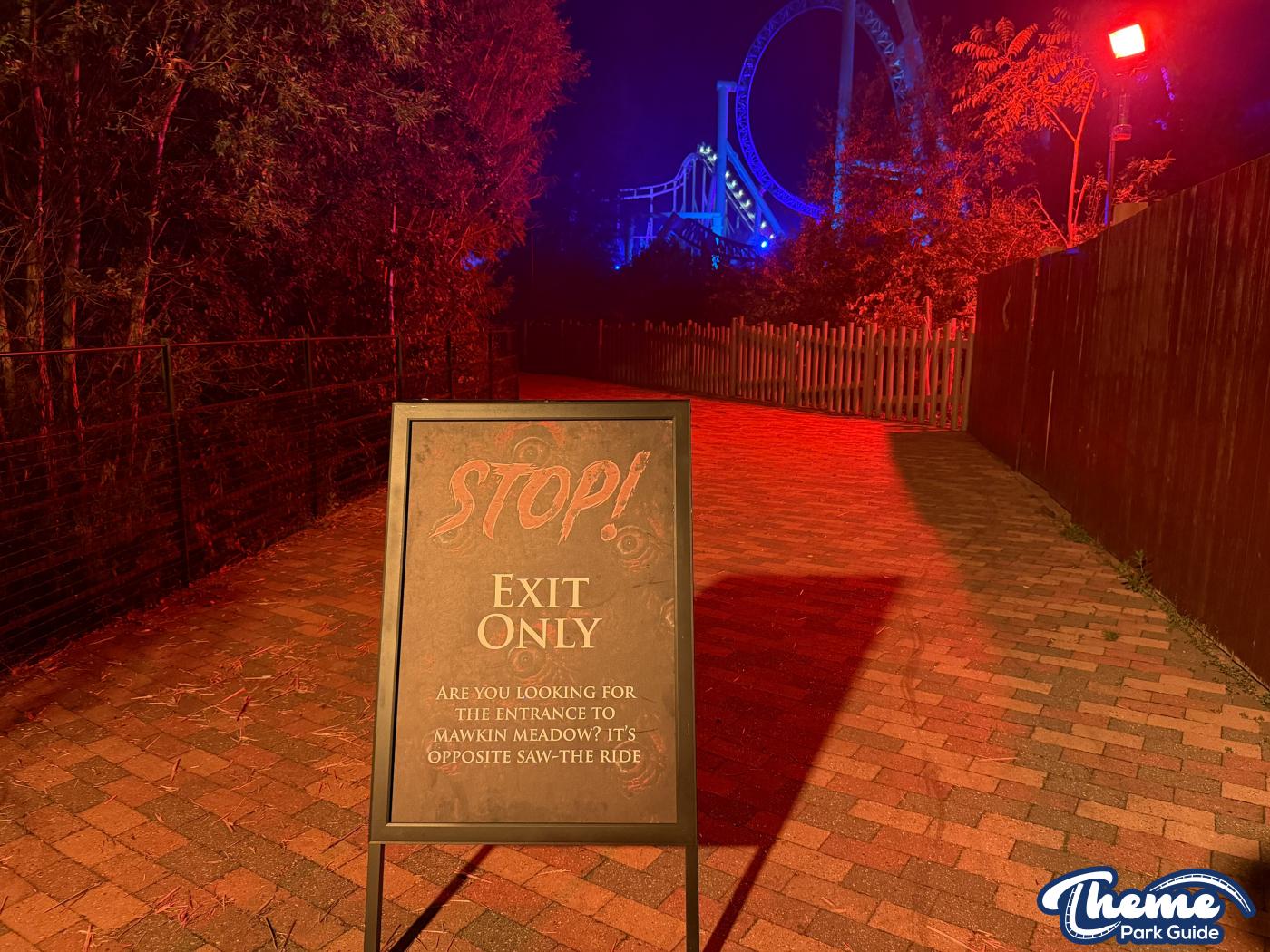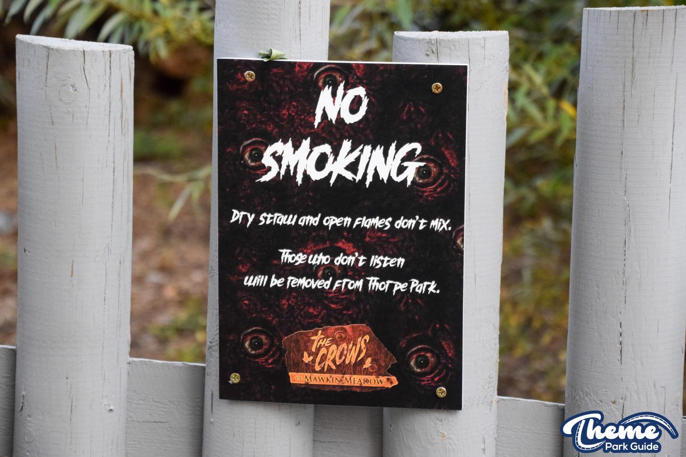 The Crows Of Mawkin Meadow have returned for another year of nightmares, however, this year this small scare zone has been given a huge upgrade and expansion. Previously you would only have 1 route to take through the scare zone whereas this year there are now 2 routes through The Crows scare zone. Route 1 follows the same path as last year, whereas route number 2 takes you through sections of the old Saw Alive queue line. Walking through "Crones Cottage" you come face to face with the village of The Crows, walking through this small village you can see the remains of a cottage and the homes of some of The Crows. We absolutely love the evolution of the crows and it feels like every year the crow cast and story grow stronger and stronger, with the scare zone getting expanded this year. Could we see them feature in a maze next year? Other changes in the scare zone are a huge new sign at the entrance and some new farm-style fences creating a slalom effect towards the end of the maze. There's no escape from The Crows!