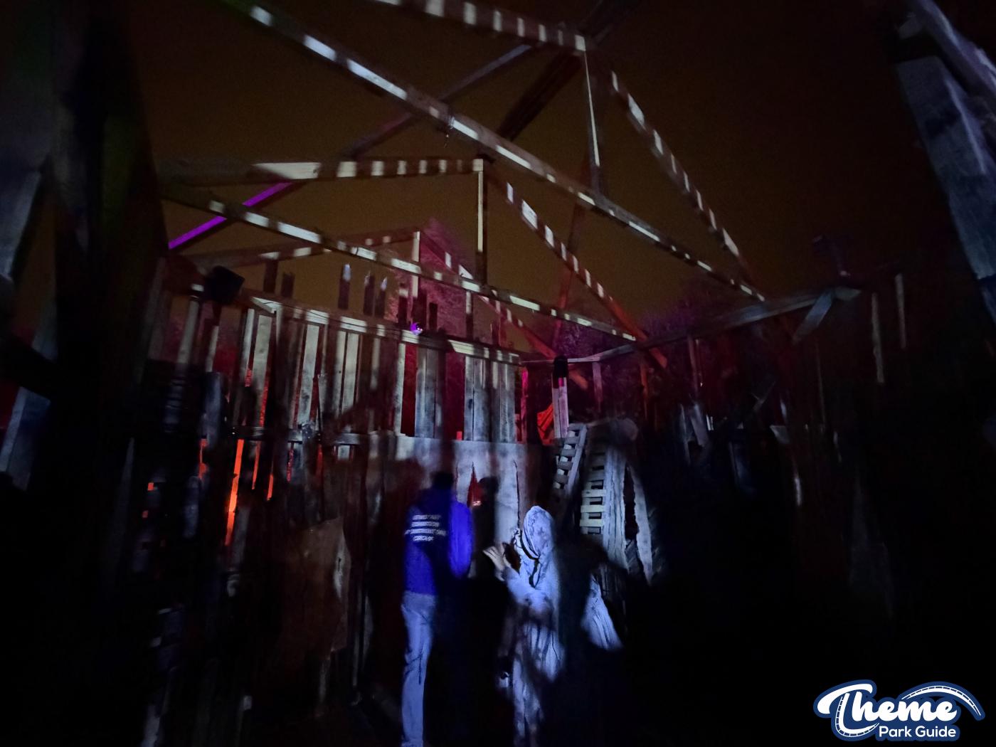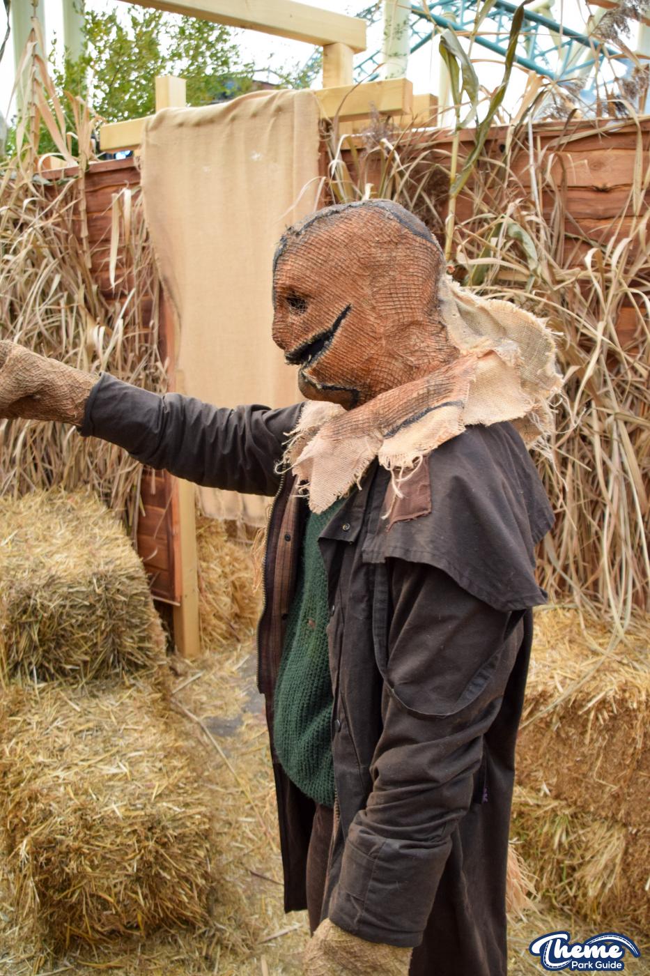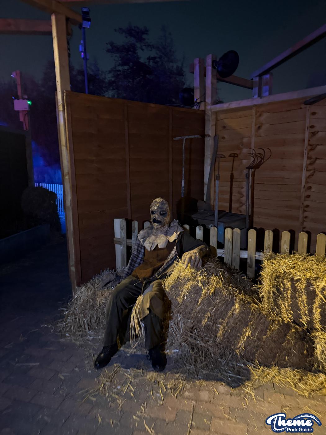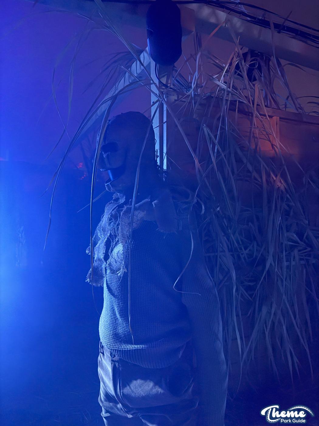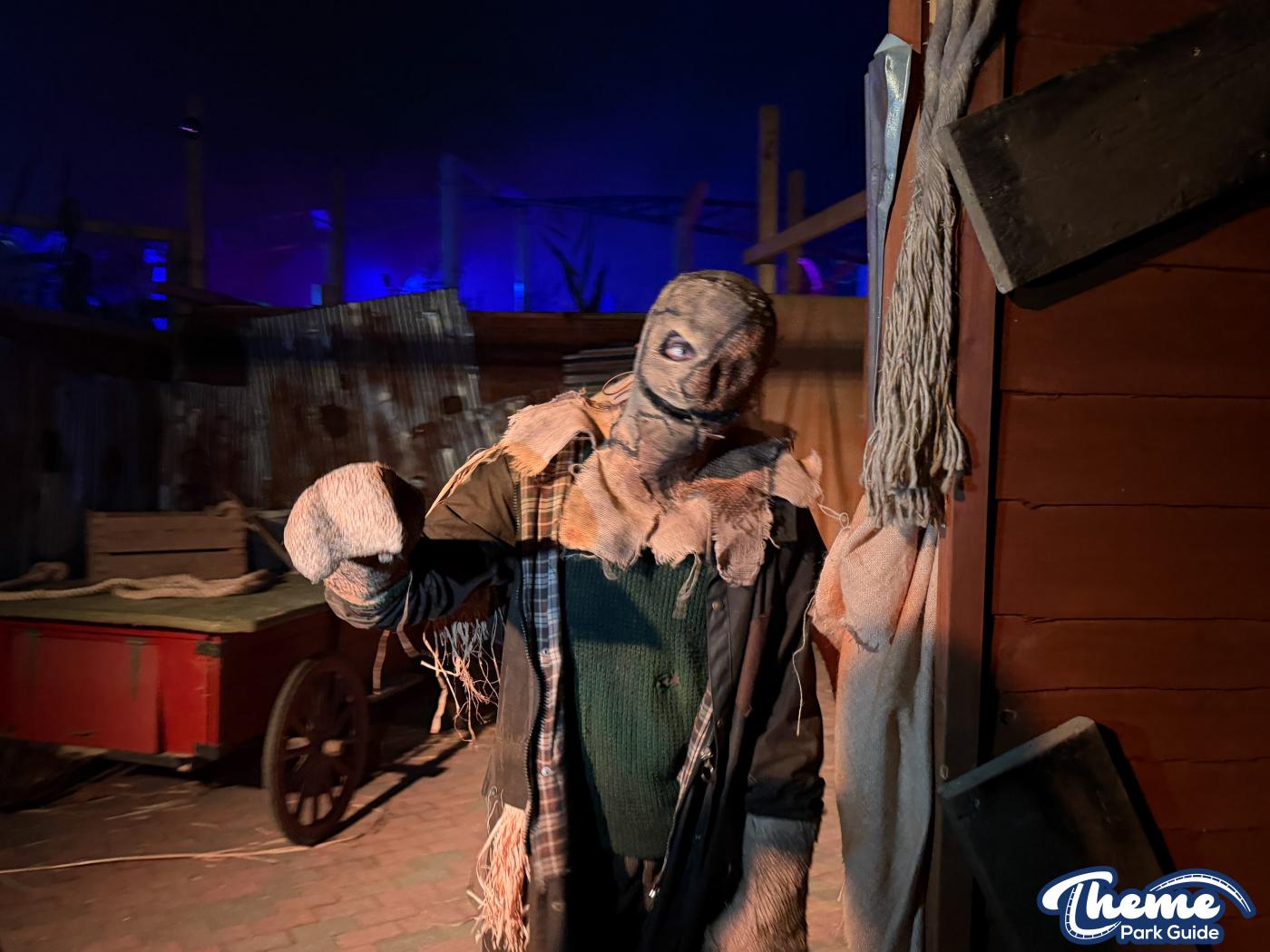 The Crows Of Mawkin Meadow has had a major upgrade for 2023. With the Saw Alive queue line and boat now gone the space for this carezone has been doubled and the park is using every inch of this etra space. Scenes from some of the promo videos have now appeared in the scare zone. You now go through the barn and experience the crows and how the videos portrayed it happening. What we thought was quite clever was towards the end there was an actor that was half straw half human. Showing the process of being turned into a crow.