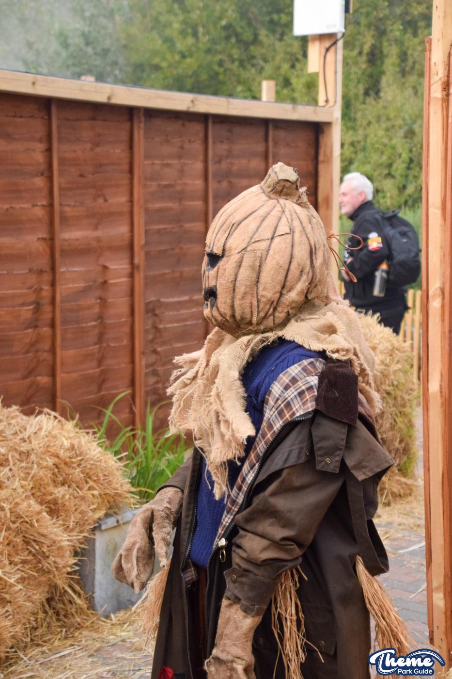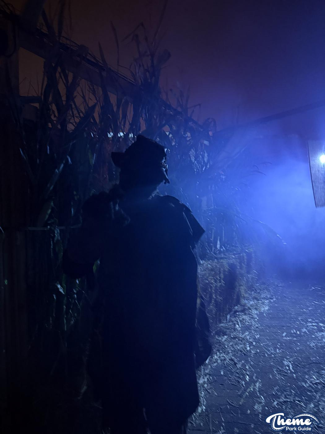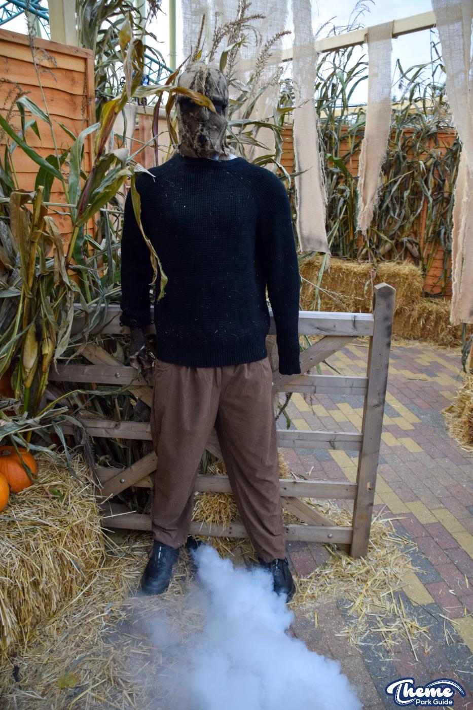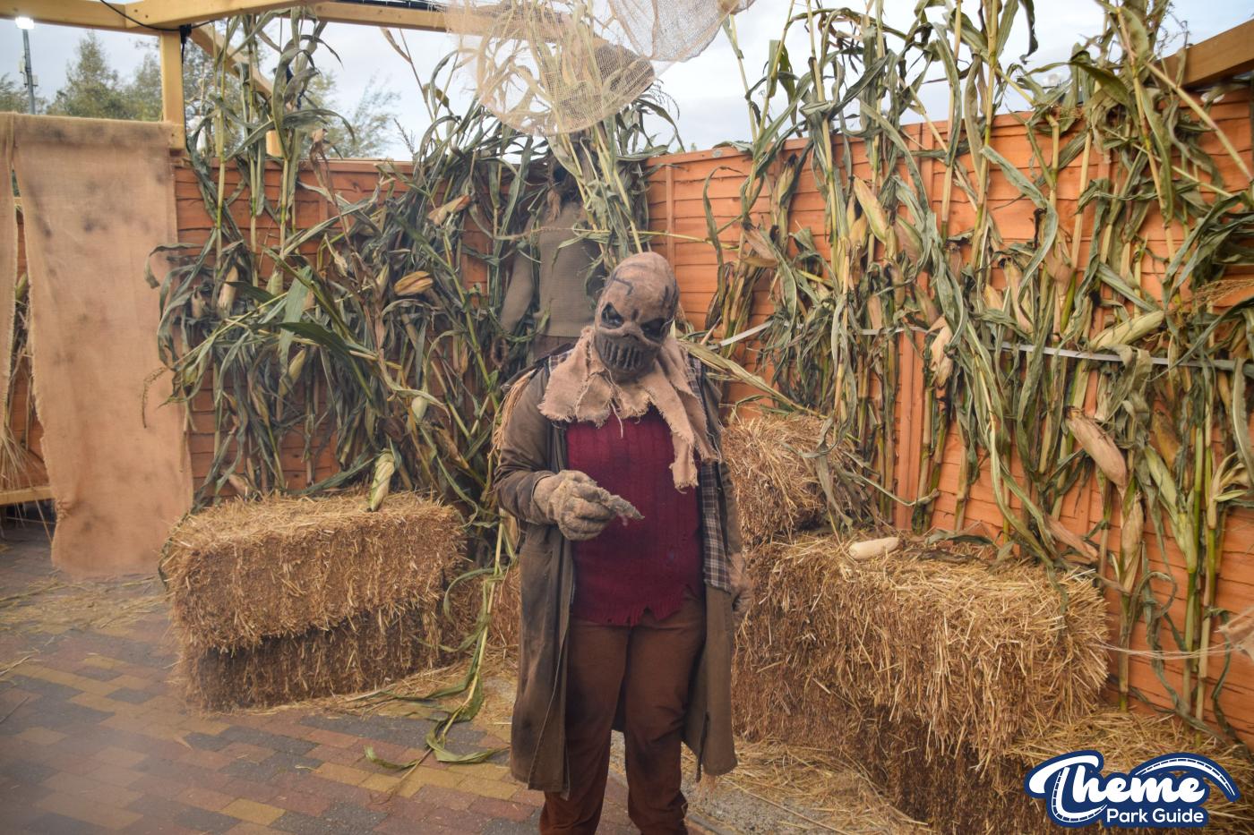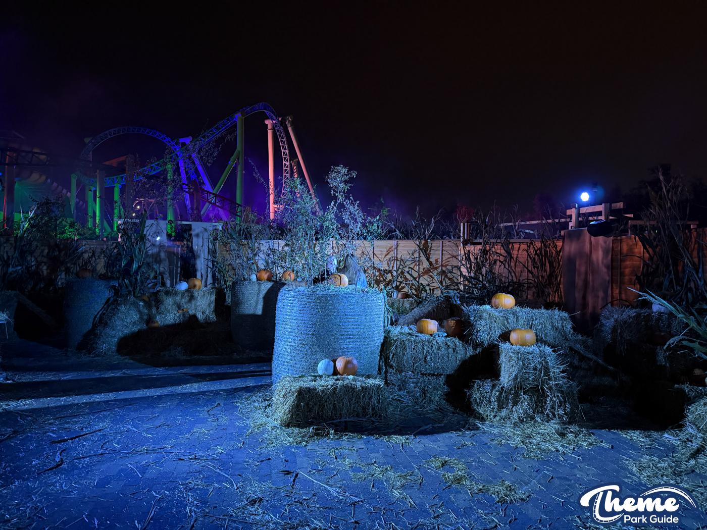 The Crows Of Mawkin Meadow has had a major upgrade for 2023. With the Saw Alive queue line and boat now gone the space for this carezone has been doubled and the park is using every inch of this etra space. Scenes from some of the promo videos have now appeared in the scare zone. You now go through the barn and experience the crows and how the videos portrayed it happening. What we thought was quite clever was towards the end there was an actor that was half straw half human. Showing the process of being turned into a crow.