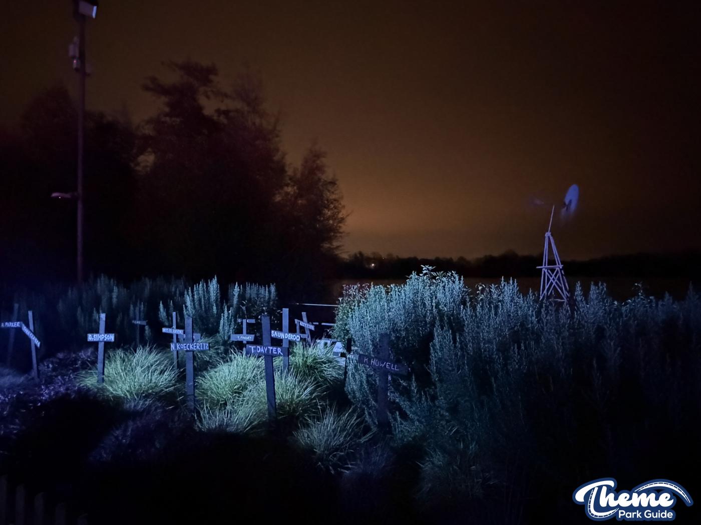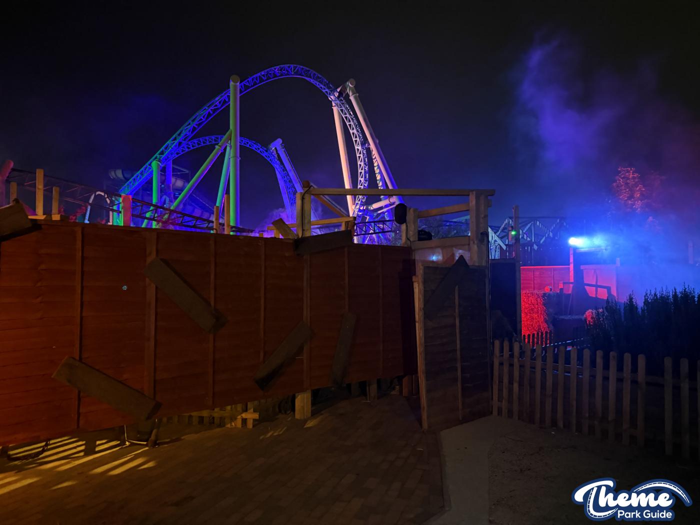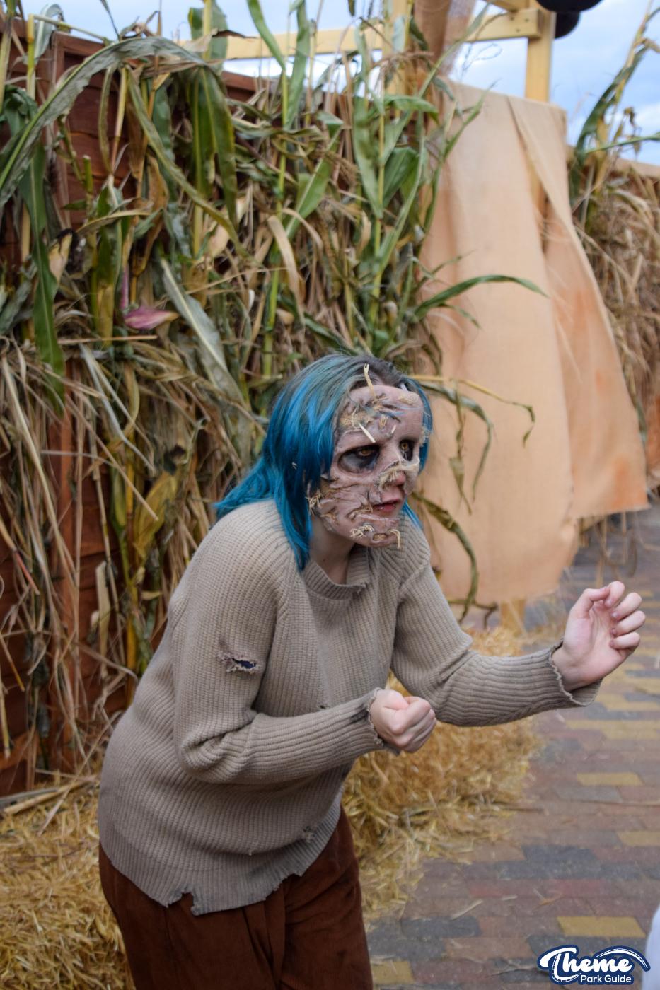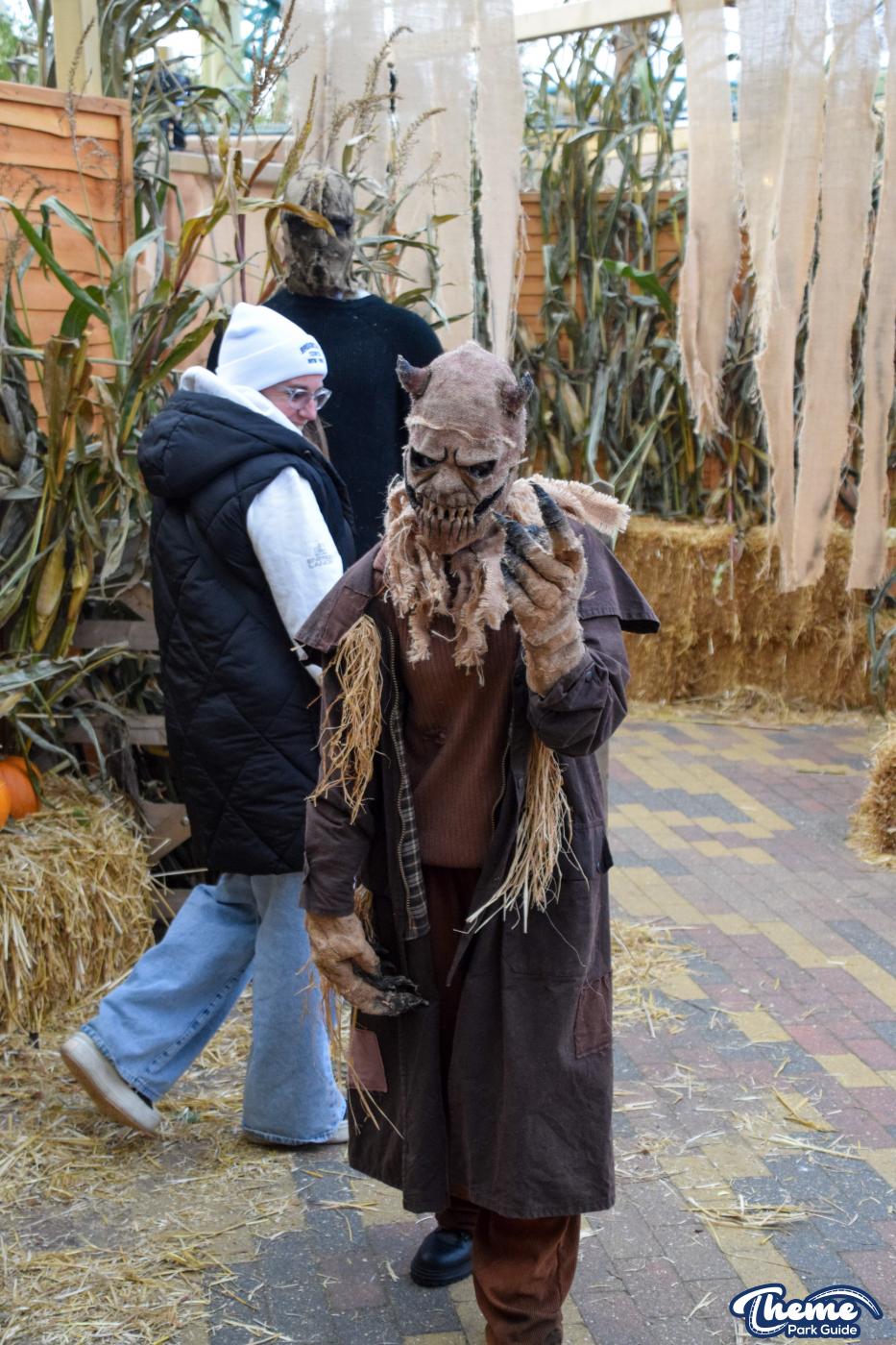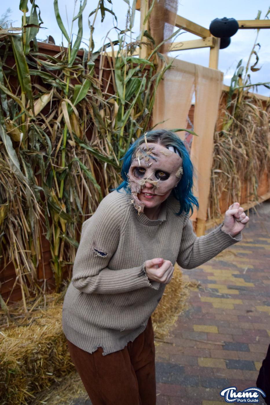 The Crows Of Mawkin Meadow has had a major upgrade for 2023. With the Saw Alive queue line and boat now gone the space for this carezone has been doubled and the park is using every inch of this etra space. Scenes from some of the promo videos have now appeared in the scare zone. You now go through the barn and experience the crows and how the videos portrayed it happening. What we thought was quite clever was towards the end there was an actor that was half straw half human. Showing the process of being turned into a crow.