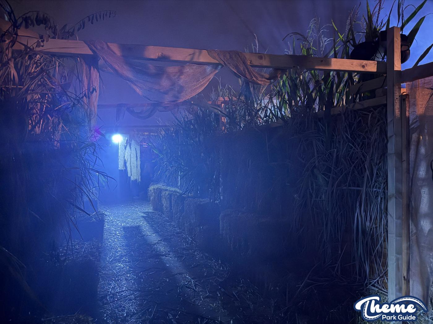 The layout of the maze is very confusing this year but the theming used throughout is fantastic. In the pitch black and with all the smoke machines going it can be quite hard to see where you're going. The Crows Of Mawkin Meadow have upgraded for 2023, are you brave enough to walk through?