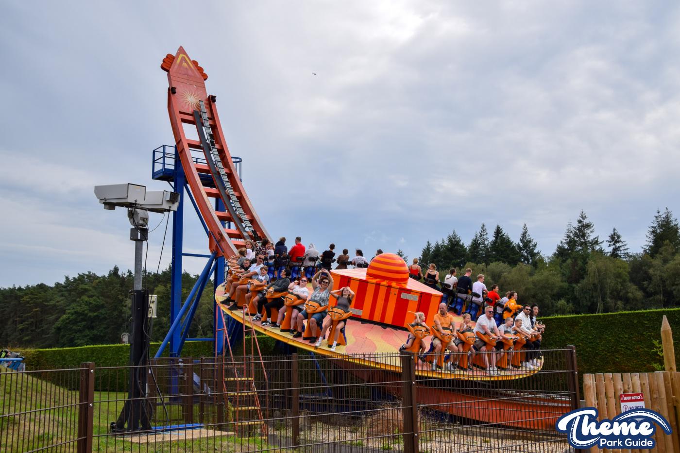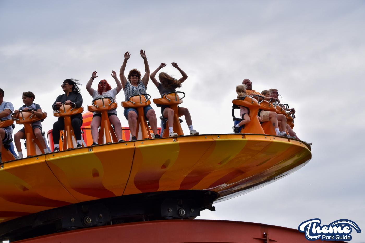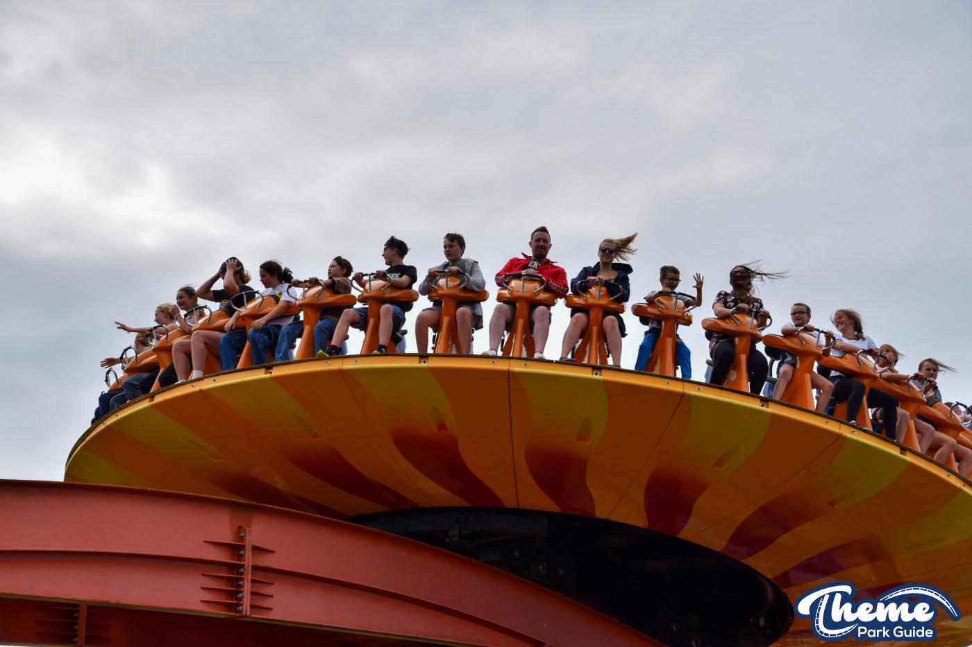 Riders swoop and spin through the air reaching a height of 15 metres on a giant disc travelling along a 90 metre track at 43mph! The first in the UK, Edge features a 'camelback' hill to create an amazing floating sensation! Things will never be quite the same again once you have ridden on The Edge!