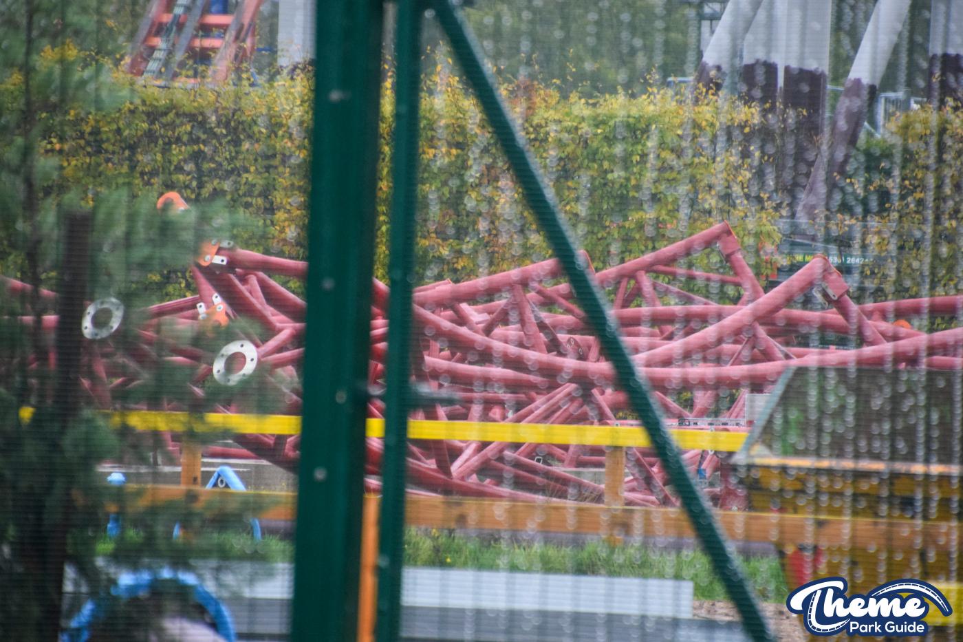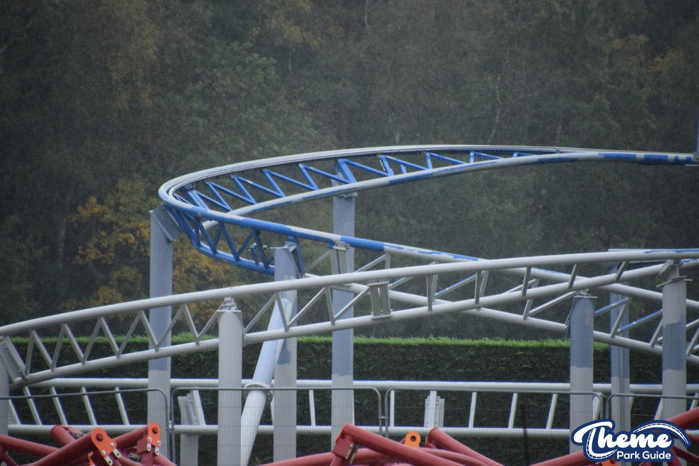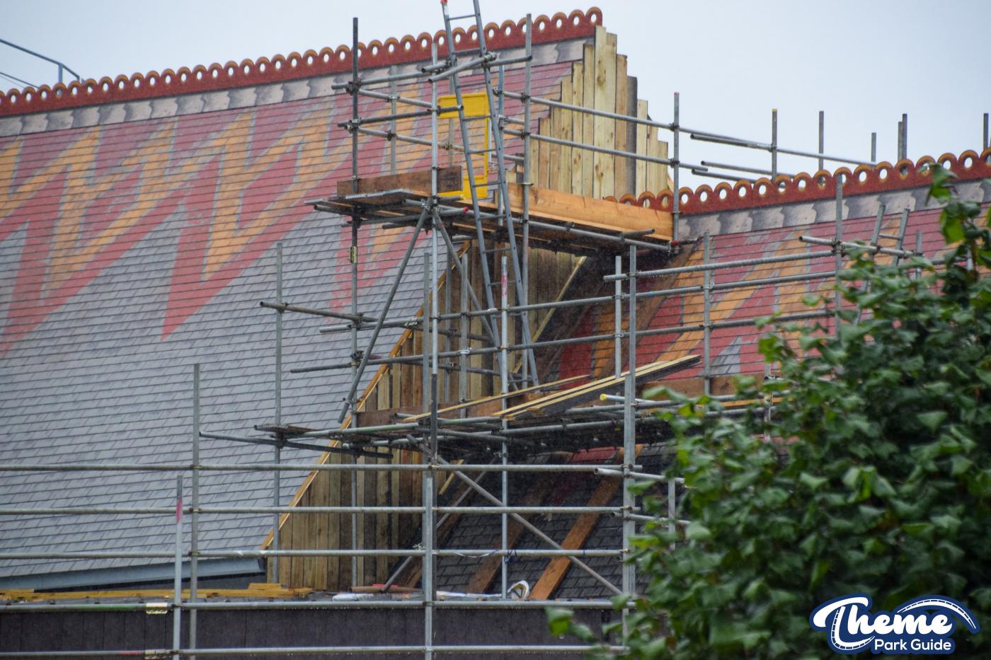 Meanwhile, over at Raven (formerly Cobra), the transformation continues. The ride’s undercoat now covers most of the structure, and its final new paintwork is being applied to several sections of track and supports. In addition, a brand-new roof is being installed over the station building, giving the attraction a refreshed and refined look.
