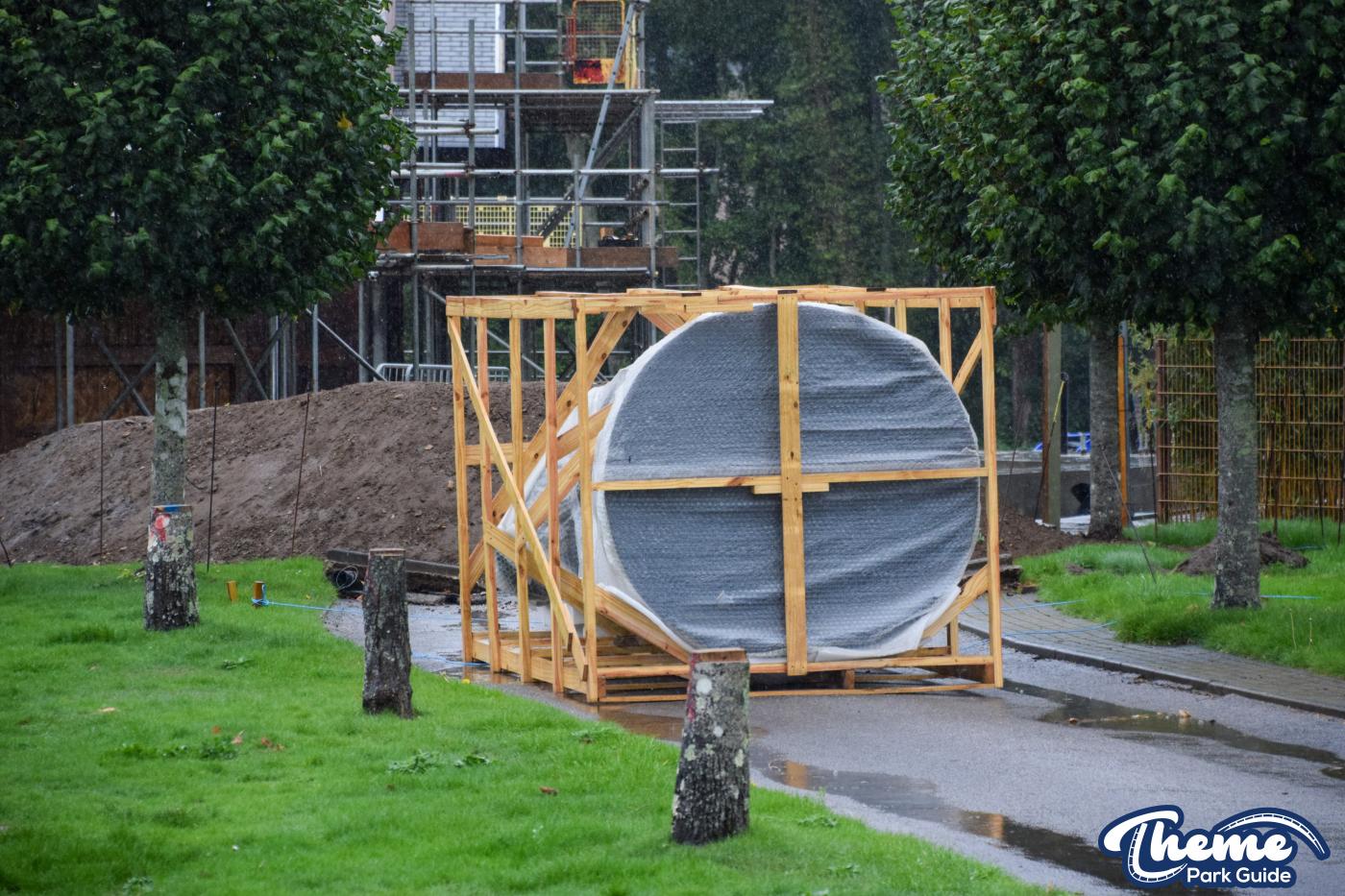 The Vild Swing — the UK’s first of its kind — is also making great progress. The operator’s booth is now complete, the air compressor tank has been fitted, and a piece of theming resembling a totem pole has been delivered, hinting at the Nordic-inspired design of Valgard.