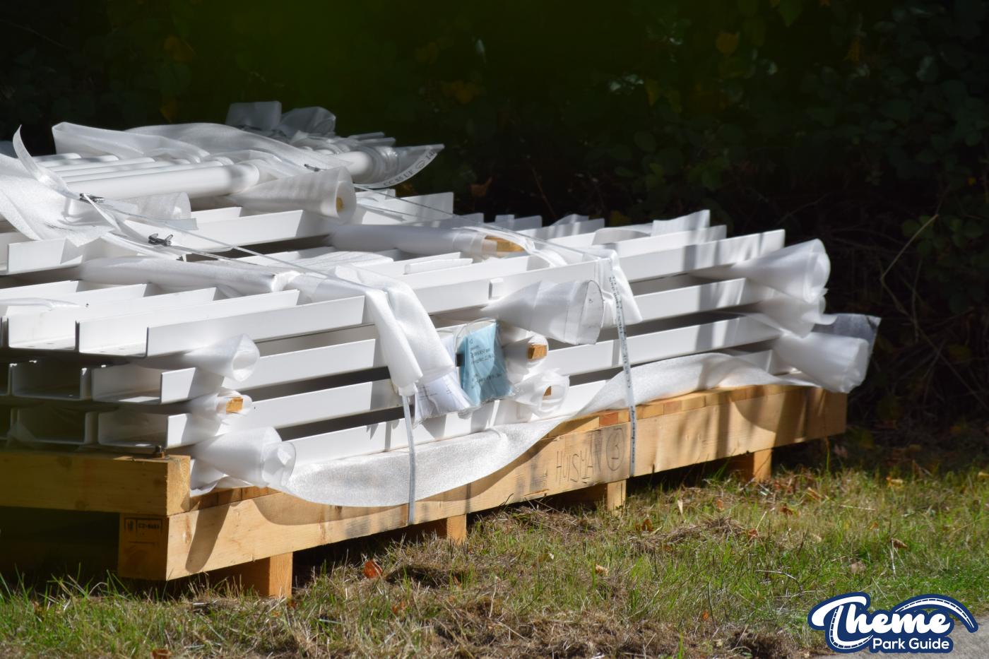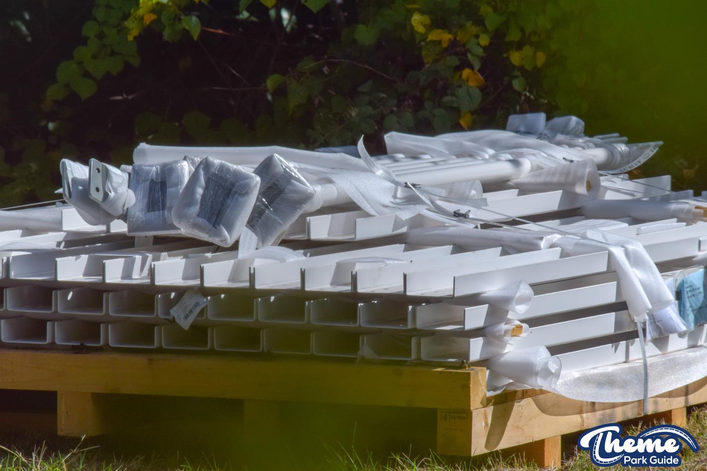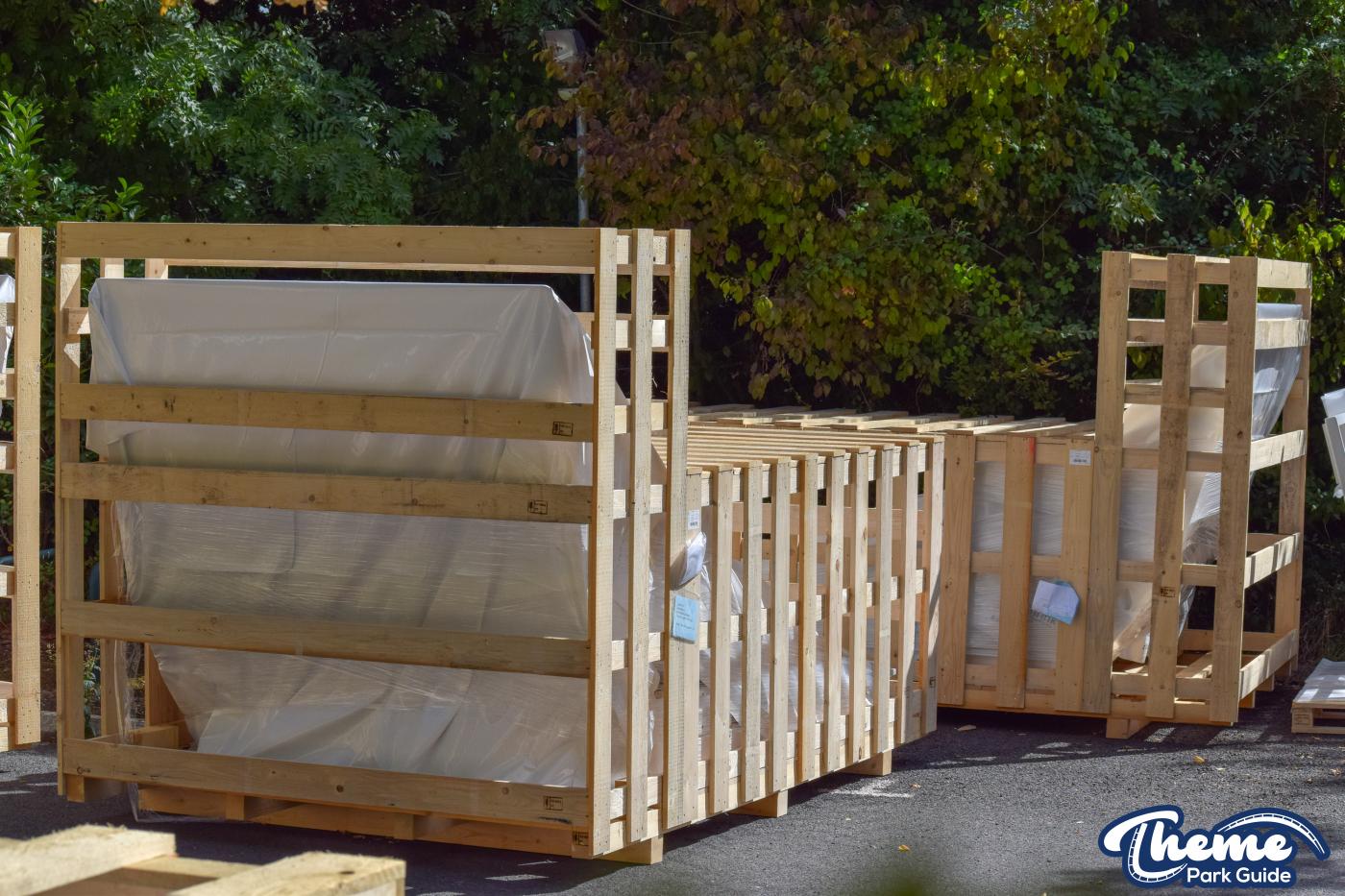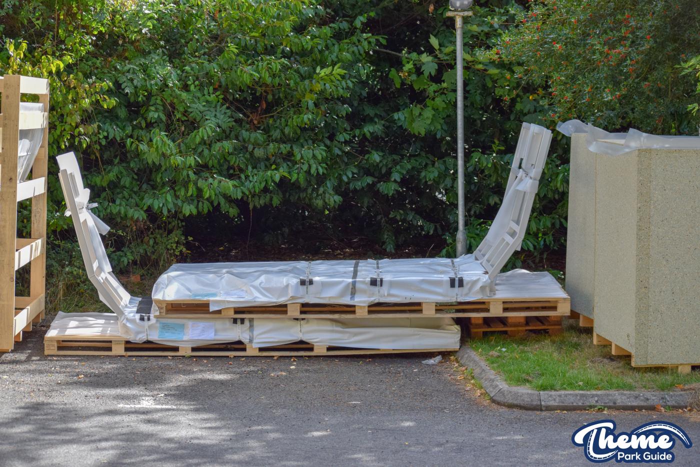 Today we can reveal that the madhouse ride has started to be delivered to Legoland Windsor. Stored in a staff carpark, ride components are being stored ready for installation over the next few weeks. Parts for the ride have been labeled up as “Seat + Floor 4 + lapbars 1 piece”