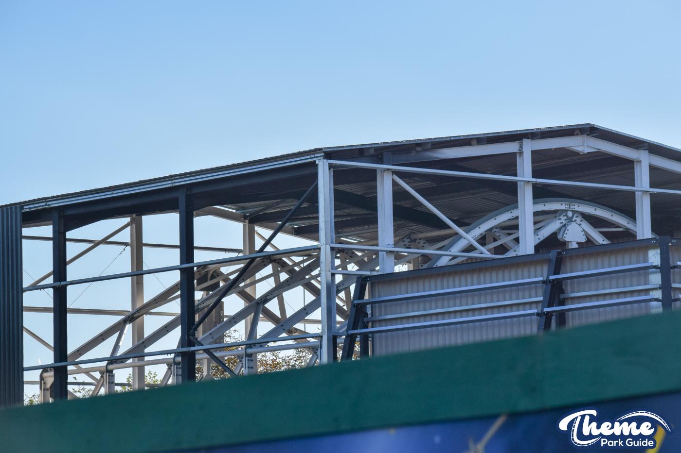 Over the past two weeks construction work on the warehouse for the madhouse has been progressing nicely. With two mount points added at both ends of the building, it was only a matter of time until the components for the ride was delivered to the park. All of the ride building structure has been installed and the outside is now being prepared to be cladded and made watertight ready for winter. Then work can begin on theming the inside and the outside of the ride.