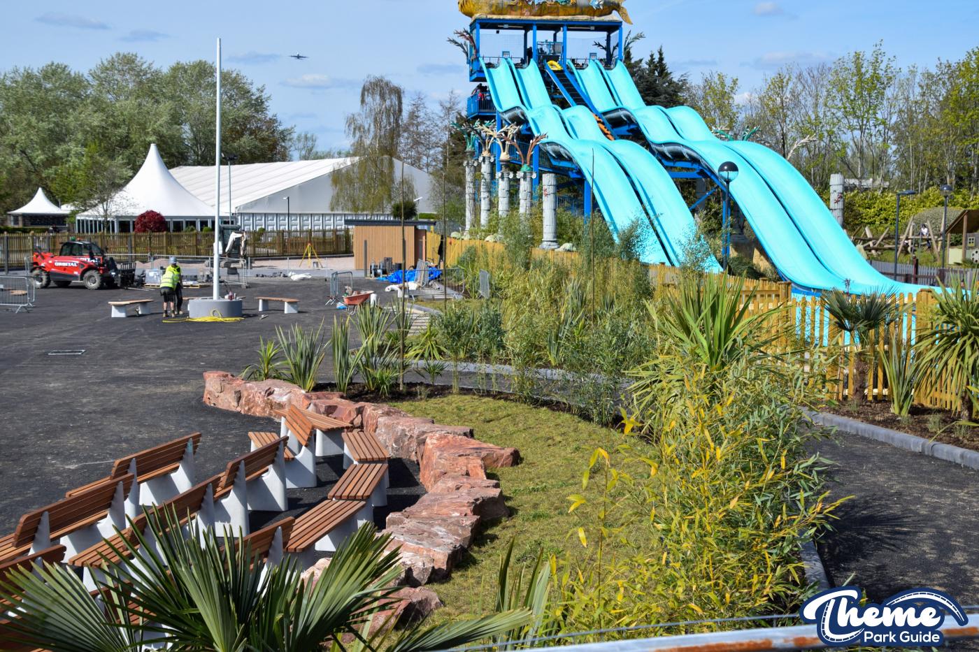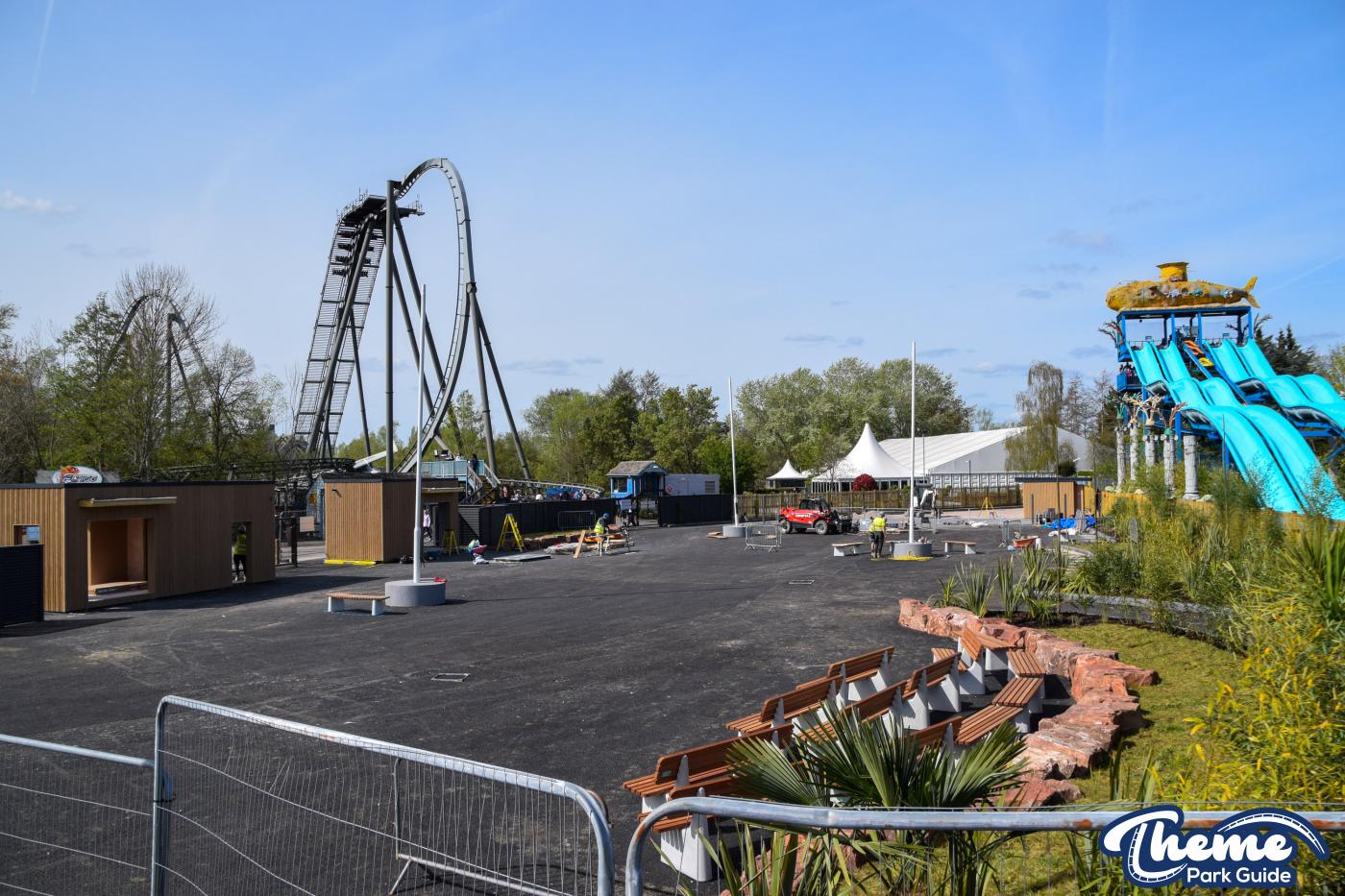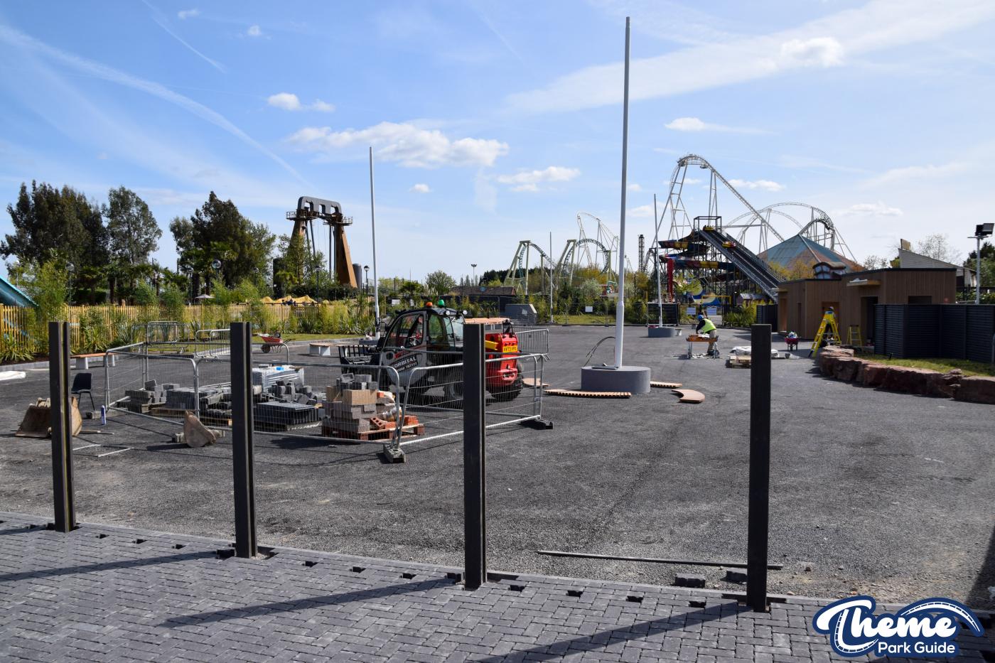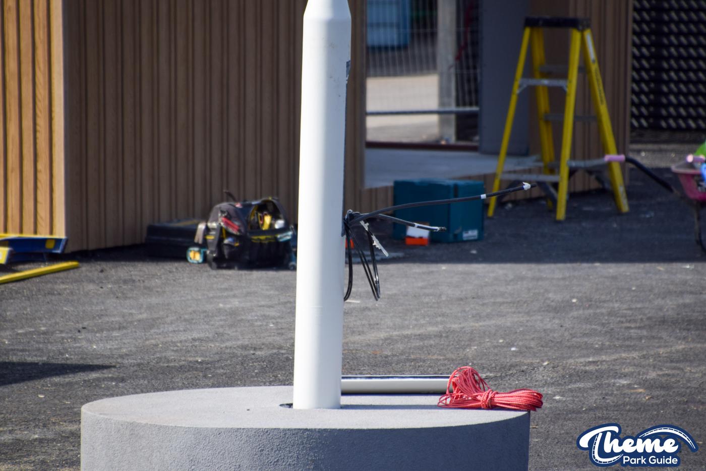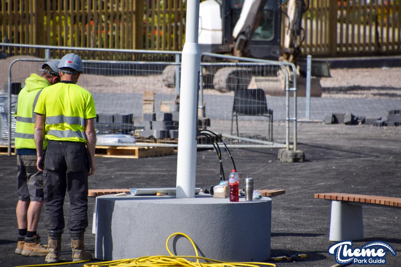 Launch Pad at Thorpe Park is progressing well, with brick paving now being installed towards the far end of the site. More lighting poles are being added into the concrete footings, while benches are also starting to appear around the area.