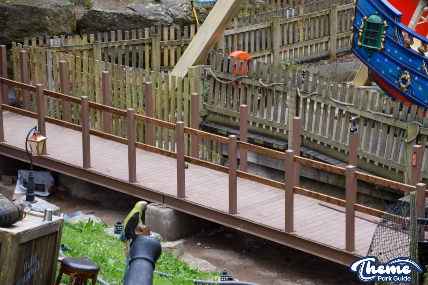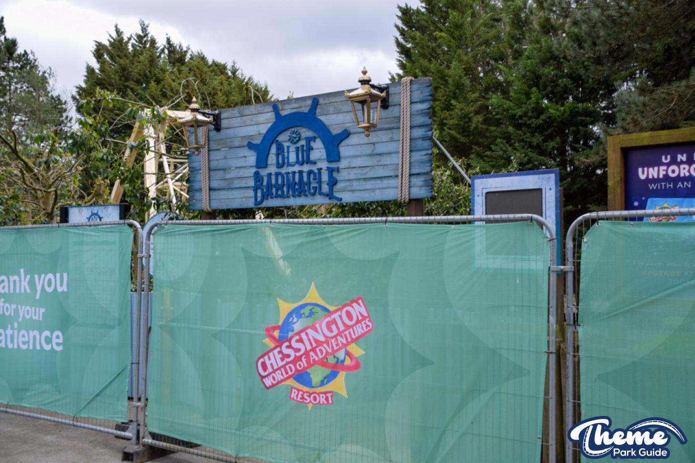 There have been several noticeable changes to Blue Barnacle at Chessington. The queue line for the ride has been completely relocated, moving from its previous position opposite the Captain’s Fish and Chips shop to a new area on the other side near Barrel Bail Out, changing how guests approach the attraction and making the entrance feel more open and direct.