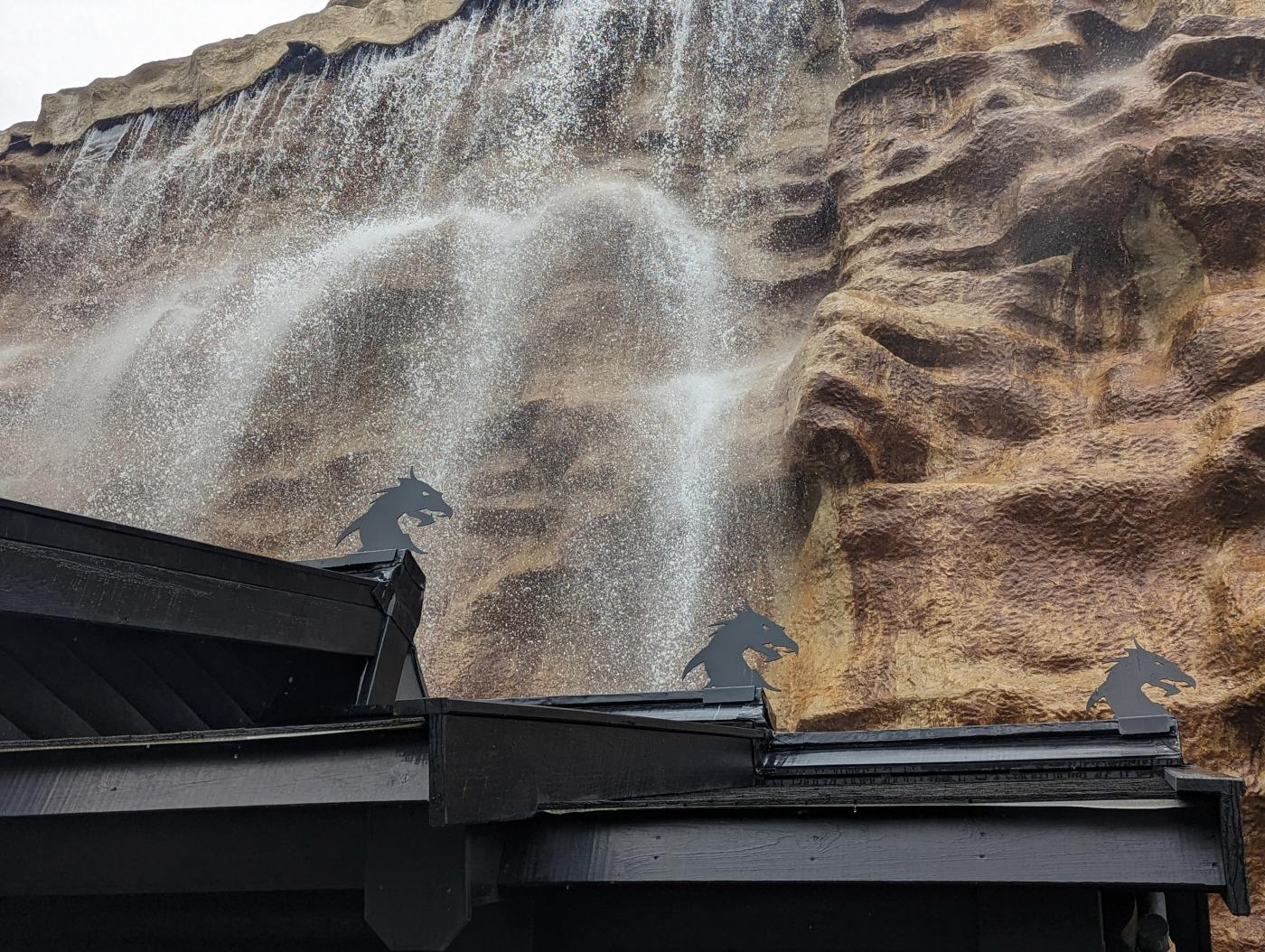 The ride, whose famous tagline reminds riders “You will get wet, you may get soaked”, includes a reservoir holding over one and a half million gallons of water – enough to fill more than two Olympic sized swimming pools.