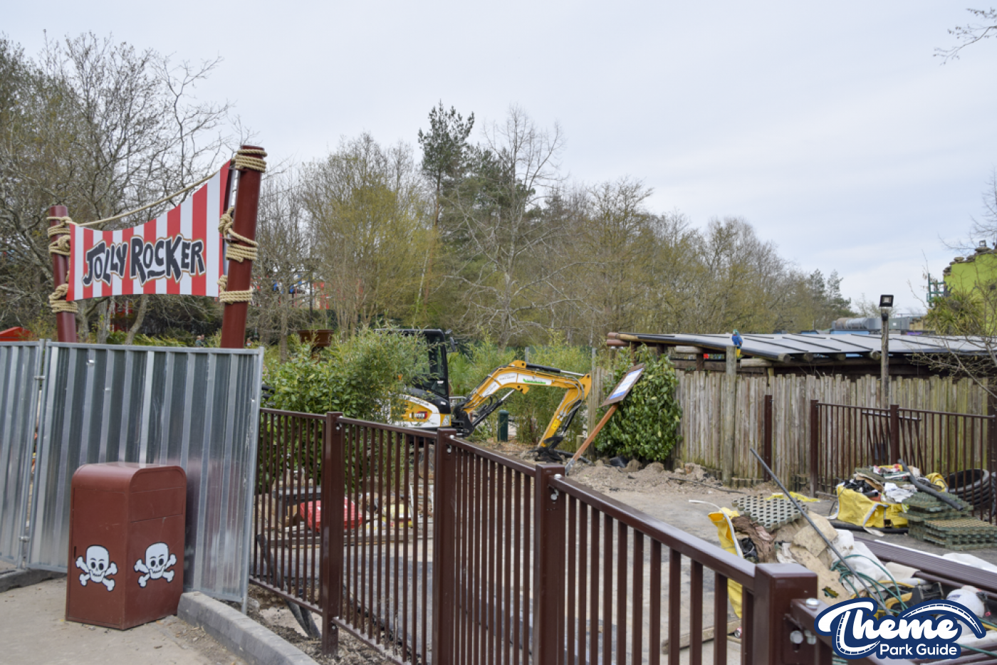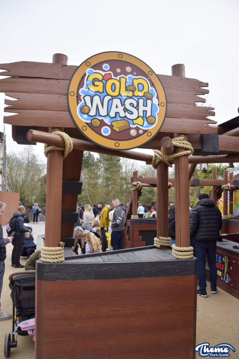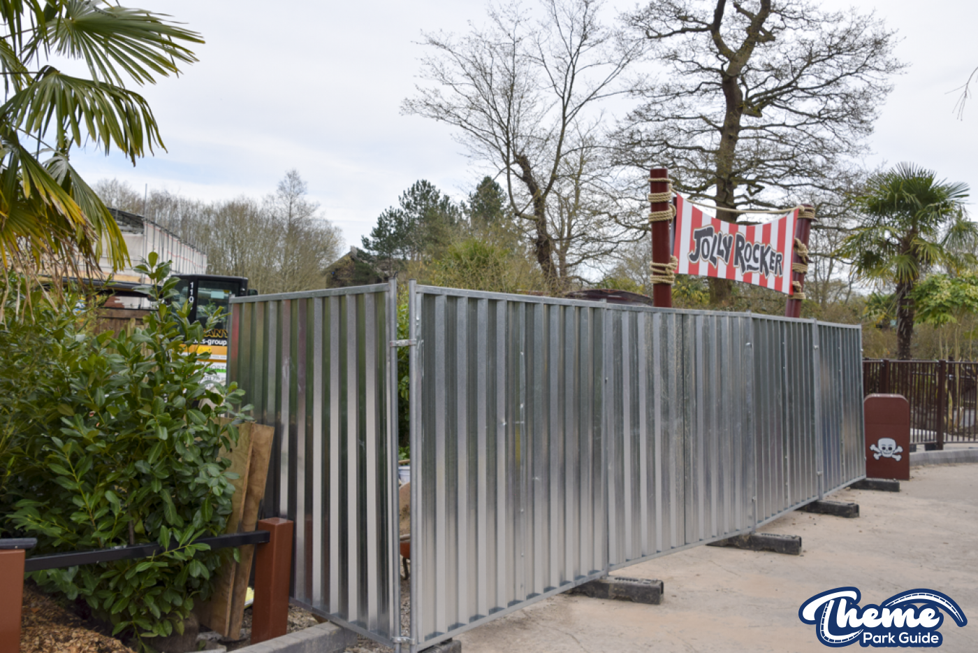 In Pirates Landing, construction is still ongoing. The queue line and entrance sign for Jolly Rocker are being redone, along with new flooring throughout the area. There is also a new queue times sign for Pirate Falls, and the Burger Kitchen is receiving a retheme and makeover. Gold Wash has now returned and looks fantastic.
