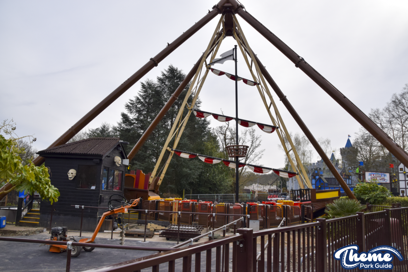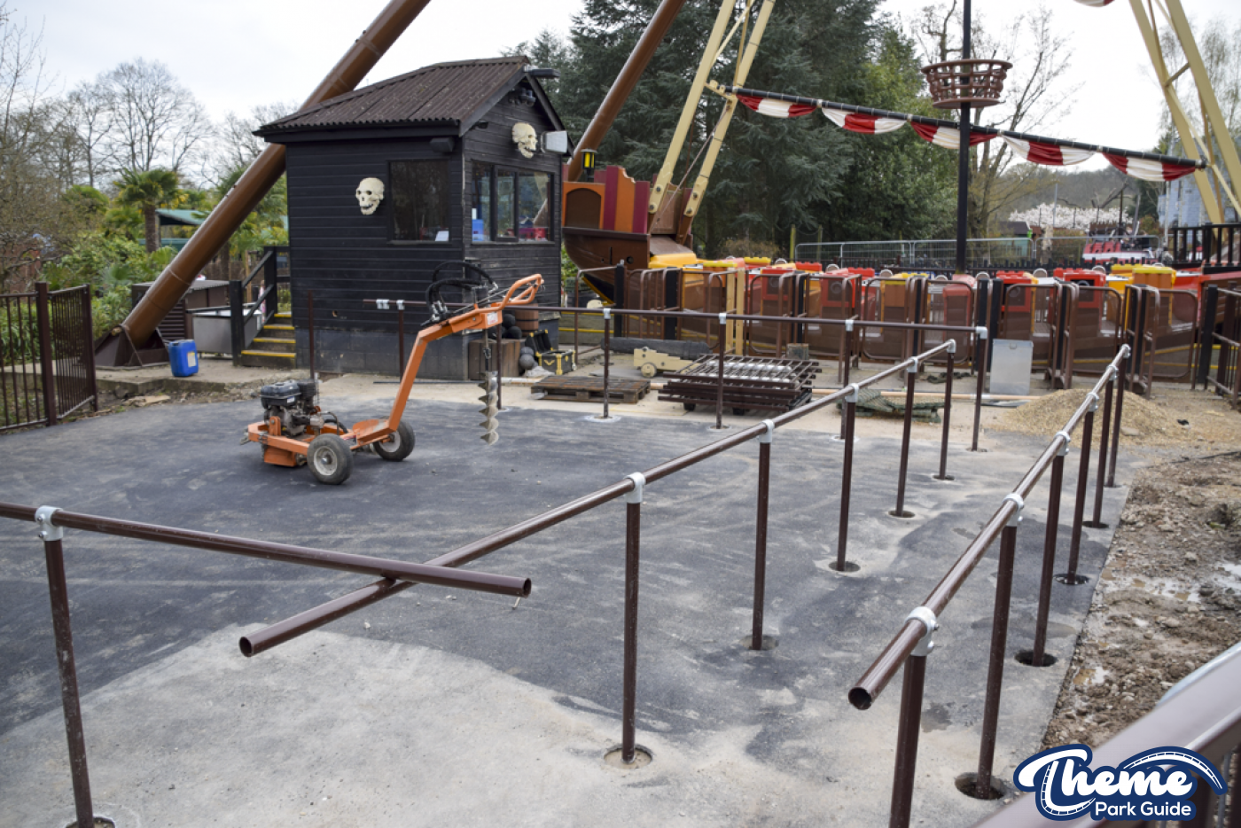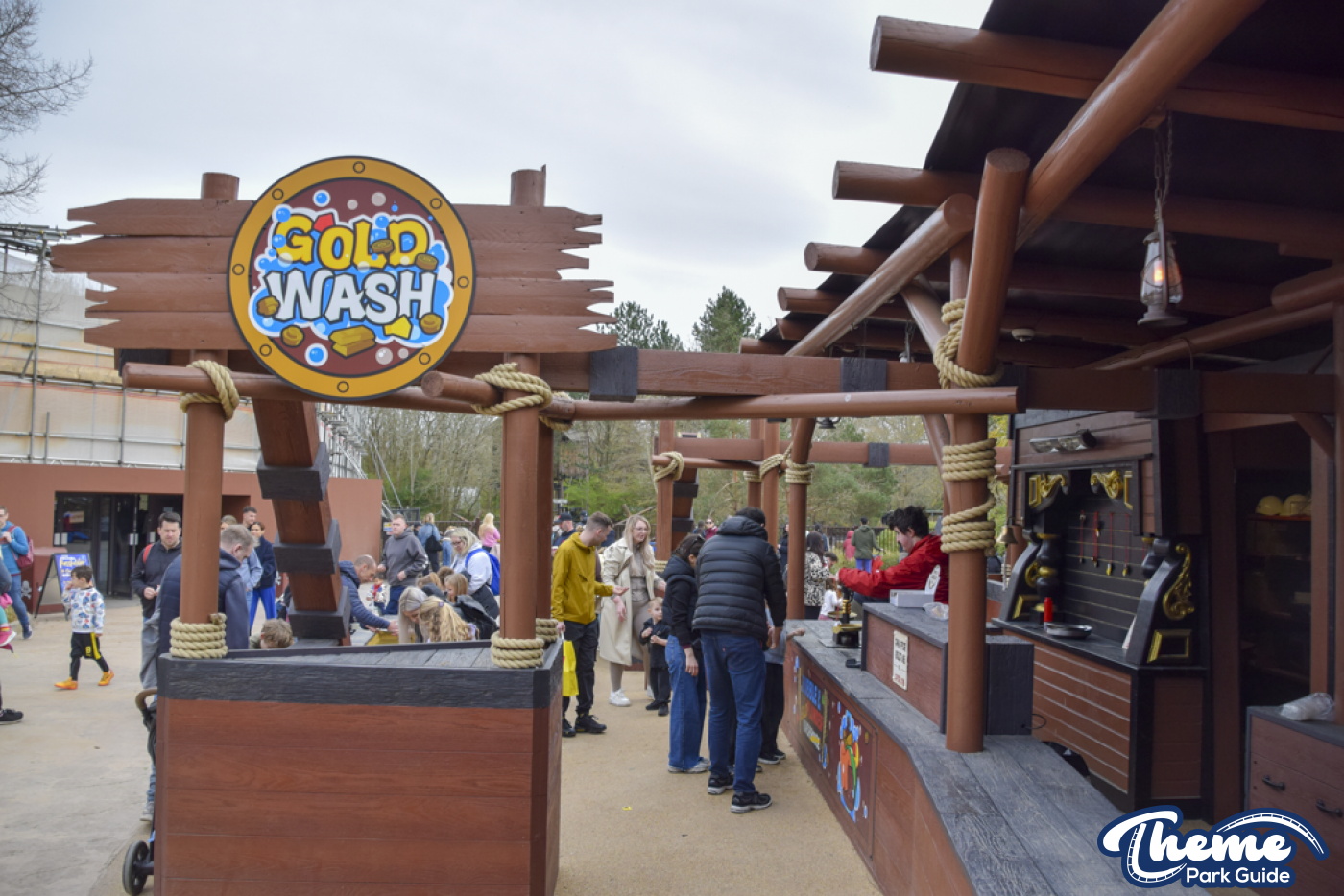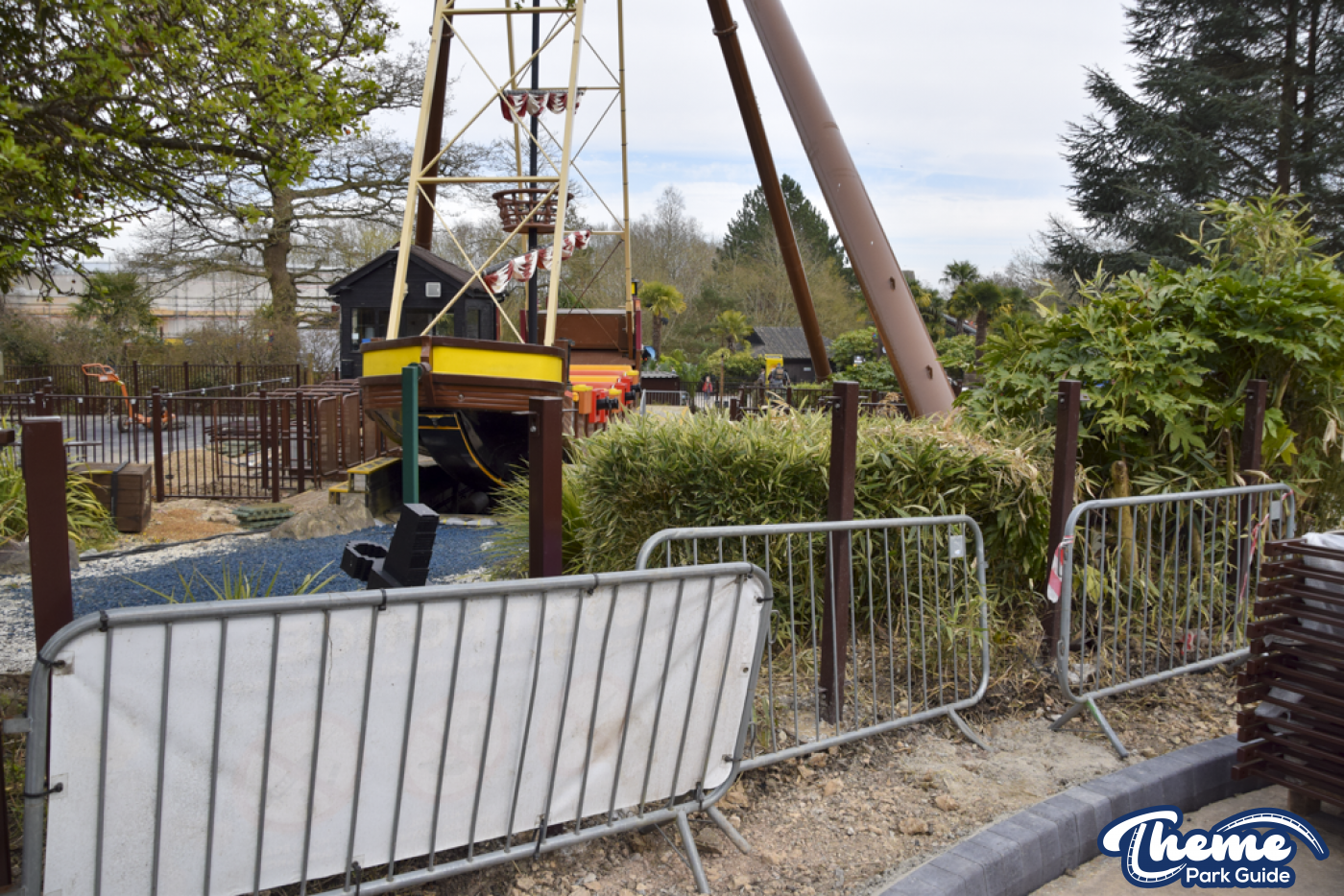 In Pirates Landing, construction is still ongoing. The queue line and entrance sign for Jolly Rocker are being redone, along with new flooring throughout the area. There is also a new queue times sign for Pirate Falls, and the Burger Kitchen is receiving a retheme and makeover. Gold Wash has now returned and looks fantastic.