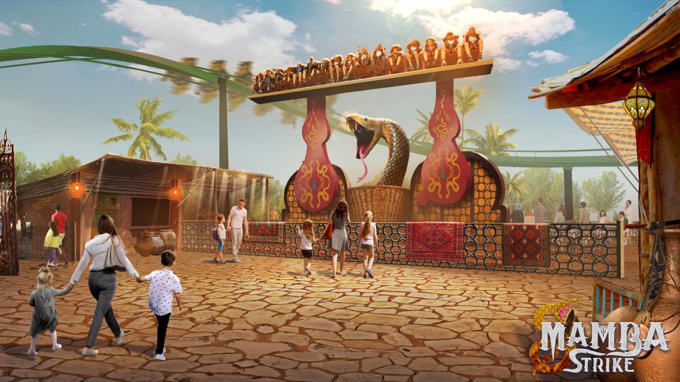 Dodge the fangs of the black mamba on a dizzying, untameable ride in the bazaar, Mamba Strike. Then swerve a herd of stampeding ostriches on a whirlwind ride in the dunes on Ostrich Stampede.
