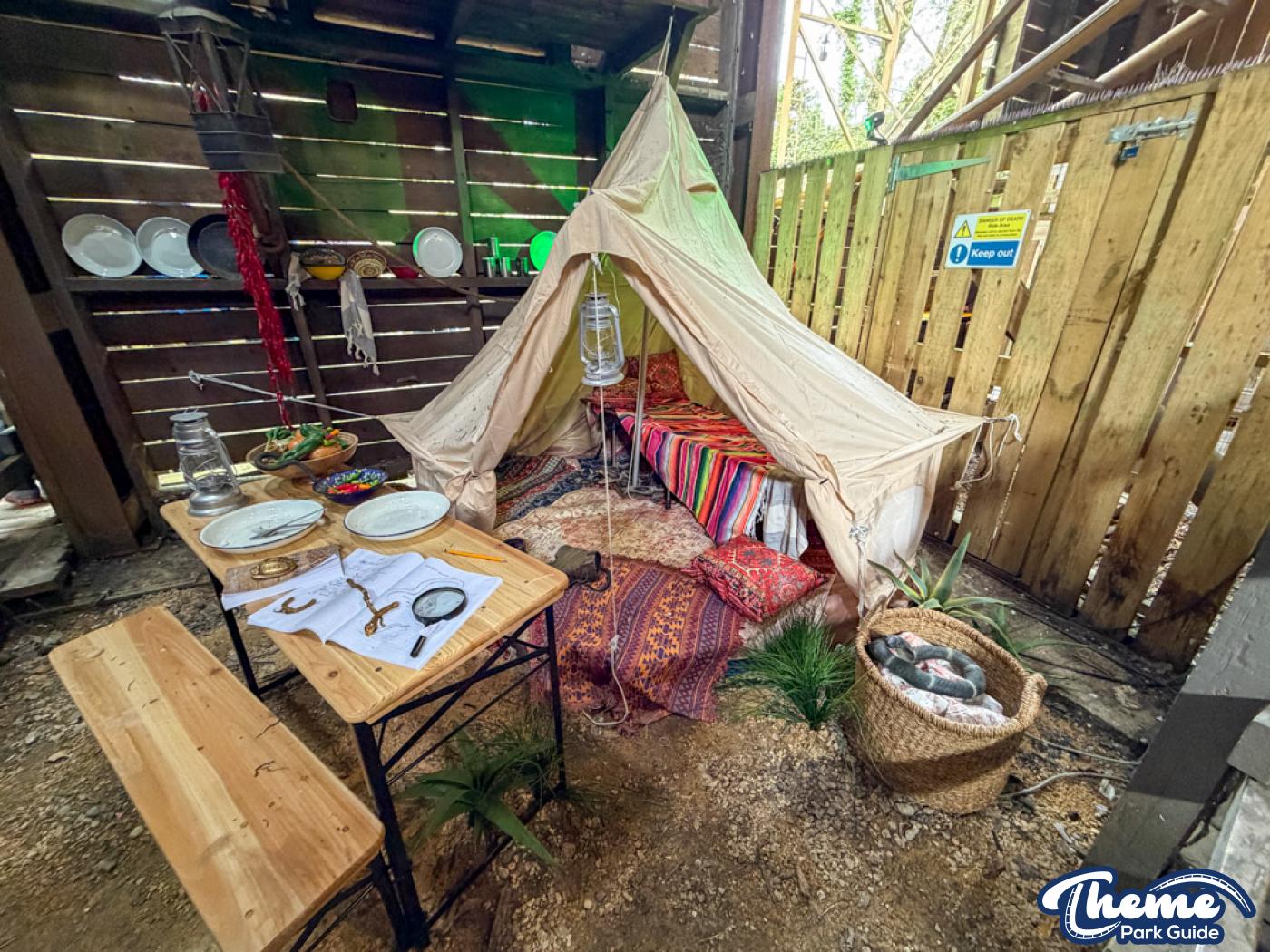 With Rattlesnake no longer being based on a Mexican theme at Chessington, the ride has now been re-themed to fit within the Forbidden Kingdom area. The attraction has undergone a small makeover, with some of the old mine-style theming removed and replaced with new elements.