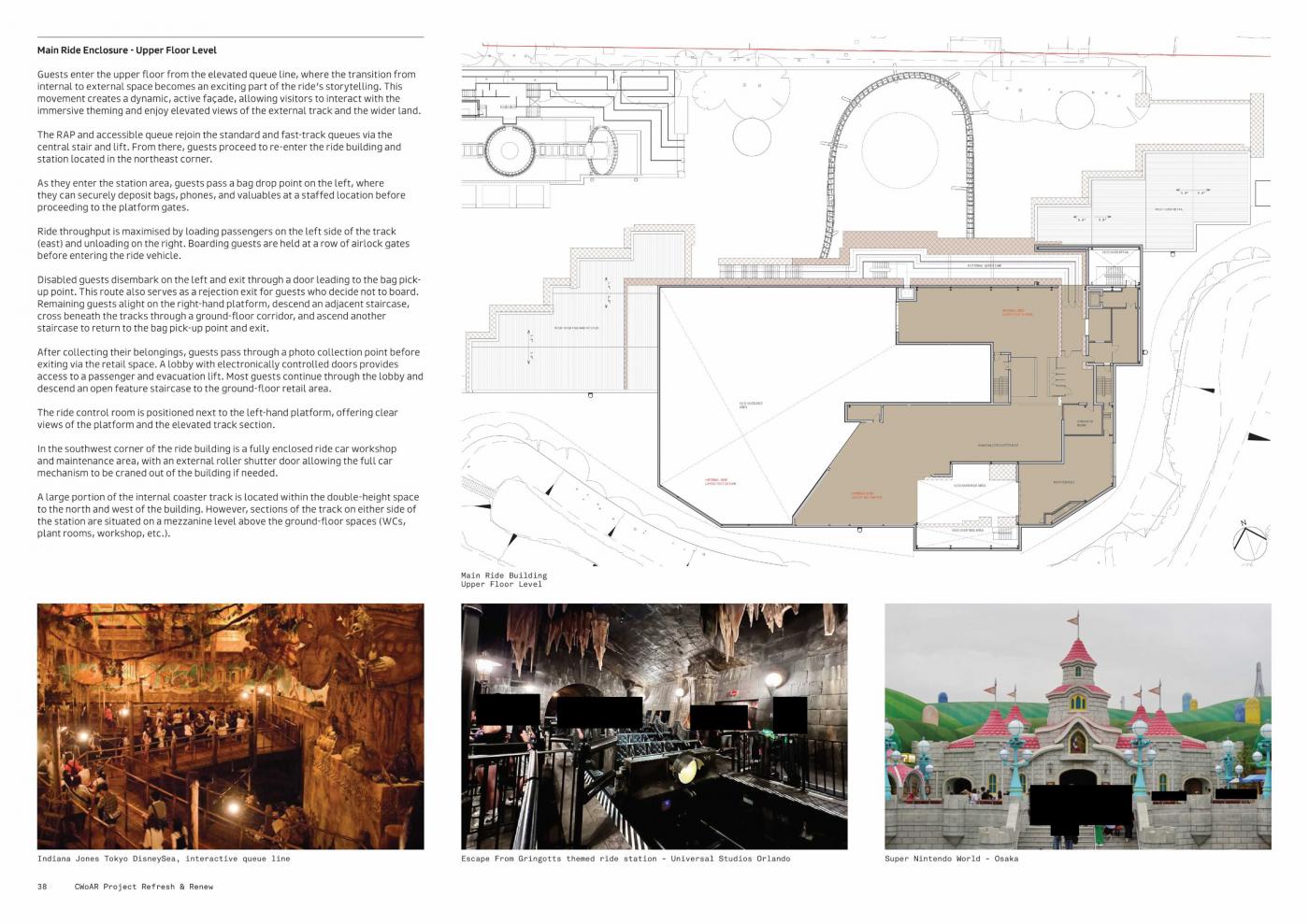 Looking at what's new coming to this area, a new rollercoaster will be located at the front of the area with a small section of the rollercoaster going outside for a turnaround section. In the plans when looking at side views of the building it looks like the rollercoaster will have a spike inside similar to the Intamin Multi Dimension Coaster Uncharted at PortAventura. Lockers and bag drop-off can be seen on the station platform, could we finally see double-sided lockers like a lot of other parks have to improve throughput and not require a bag room with staff? Plans for the rollercoaster include a dark ride section with reference images to Rock and Rollercoaster and Harry Potter and the Escape from Gringotts. This could be the best-themed rollercoaster Chessington has ever seen.