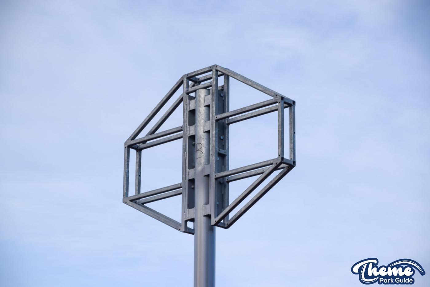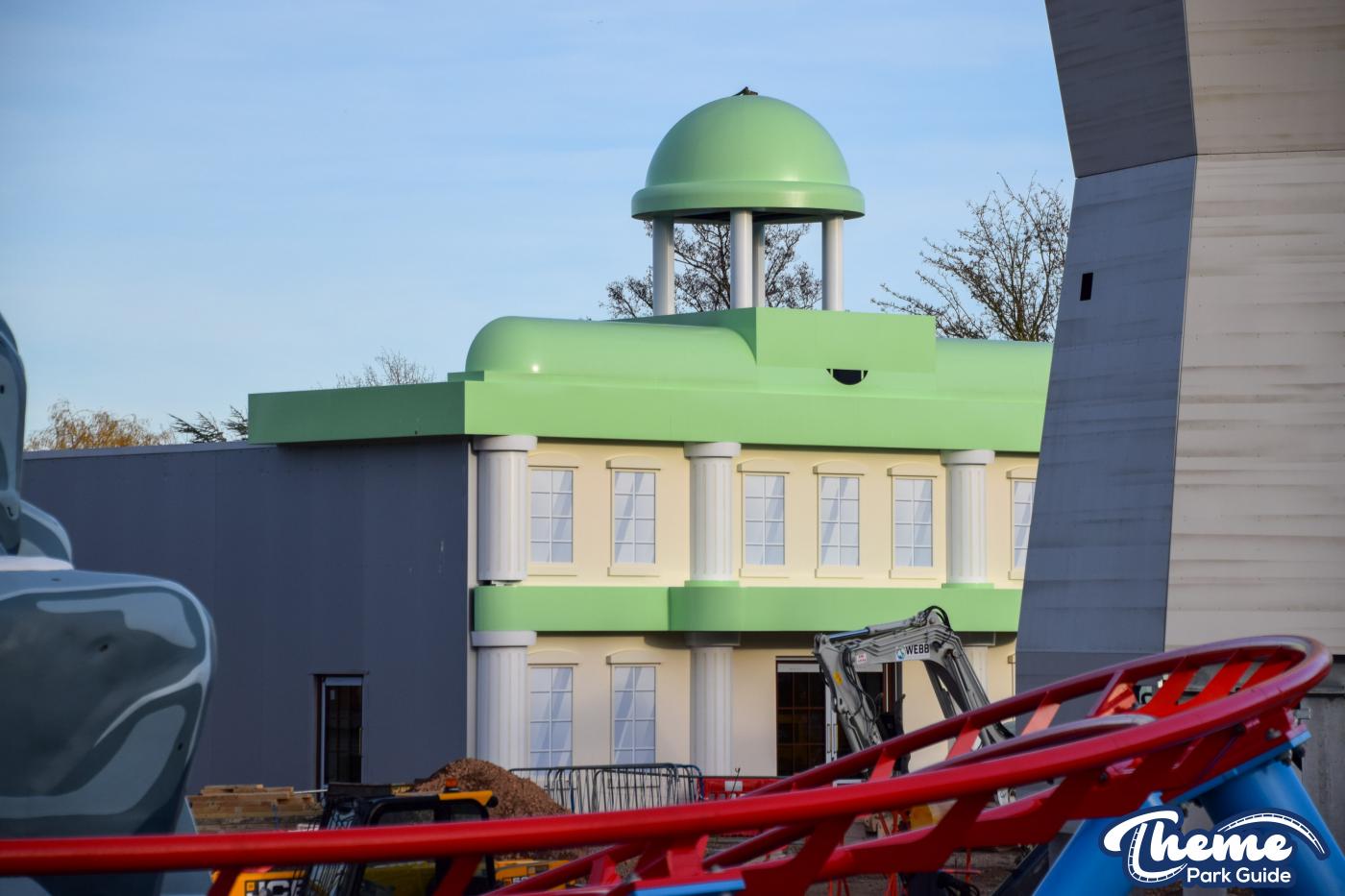 A giant metal framework around the area to inclose it and make it more themed is being installed. This will become a facade to theme the area backgrounds and make it like your inside the cartoon.
