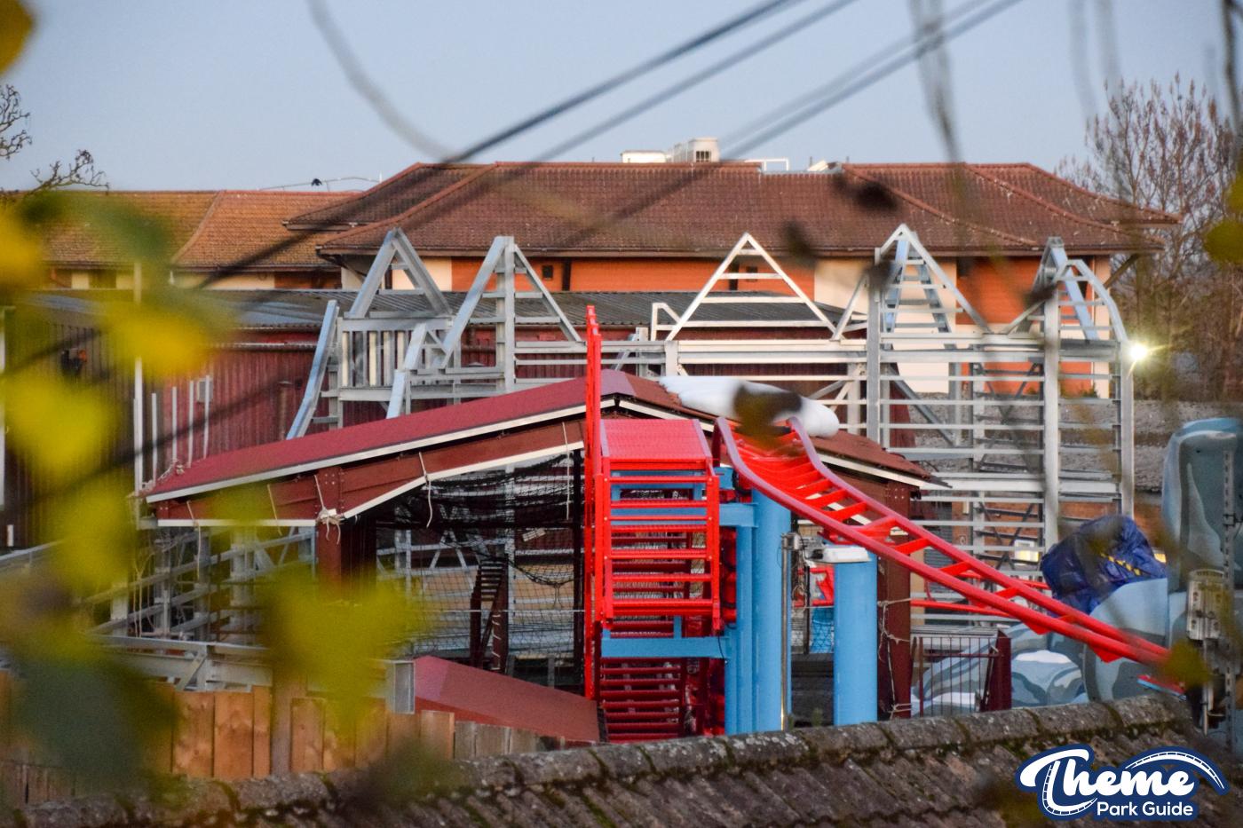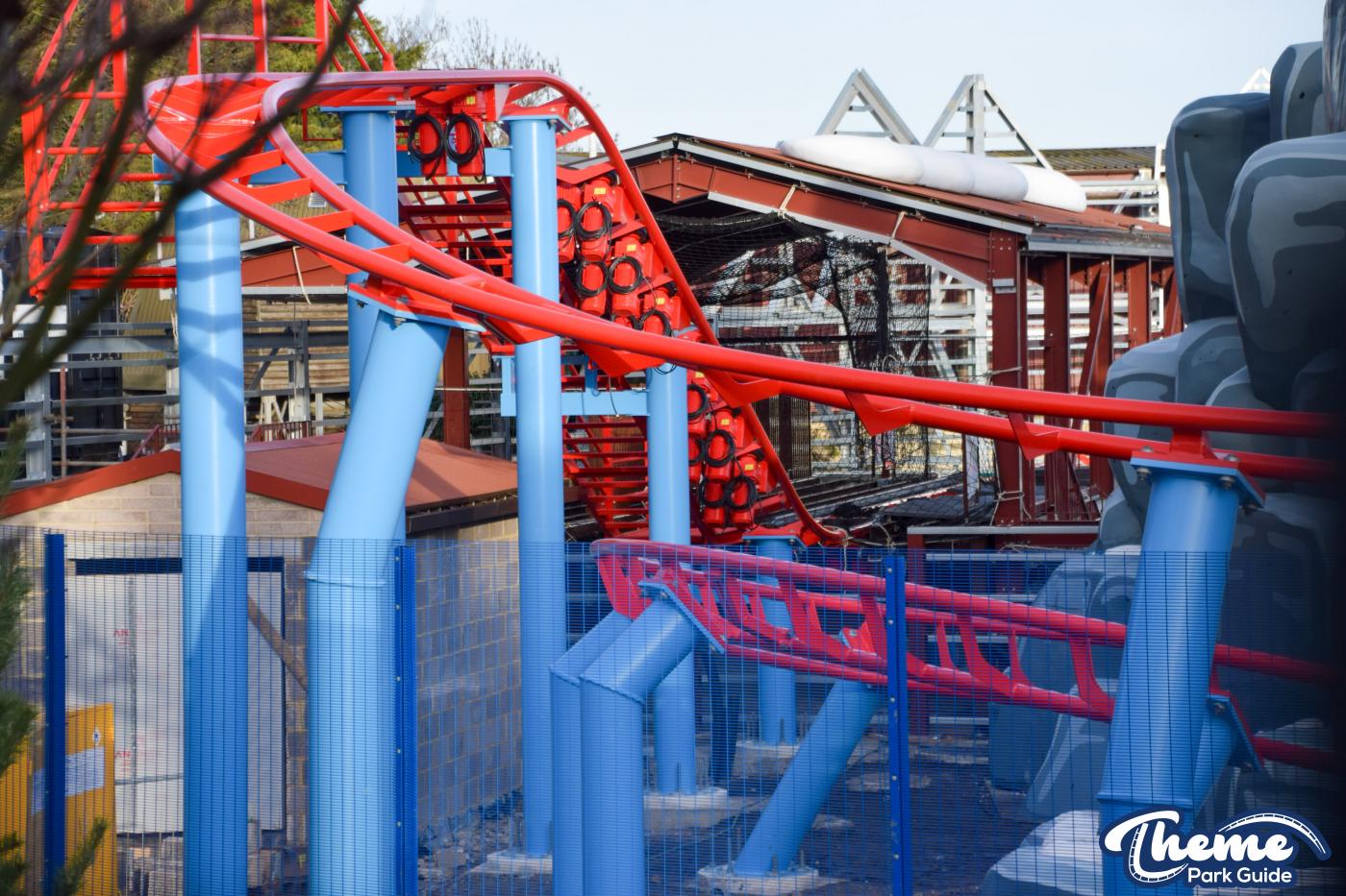 The new rollercoaster looks great and we love the colour scheme. It would appear that blue fences for the ride area have already been installed. Along with paths for the area