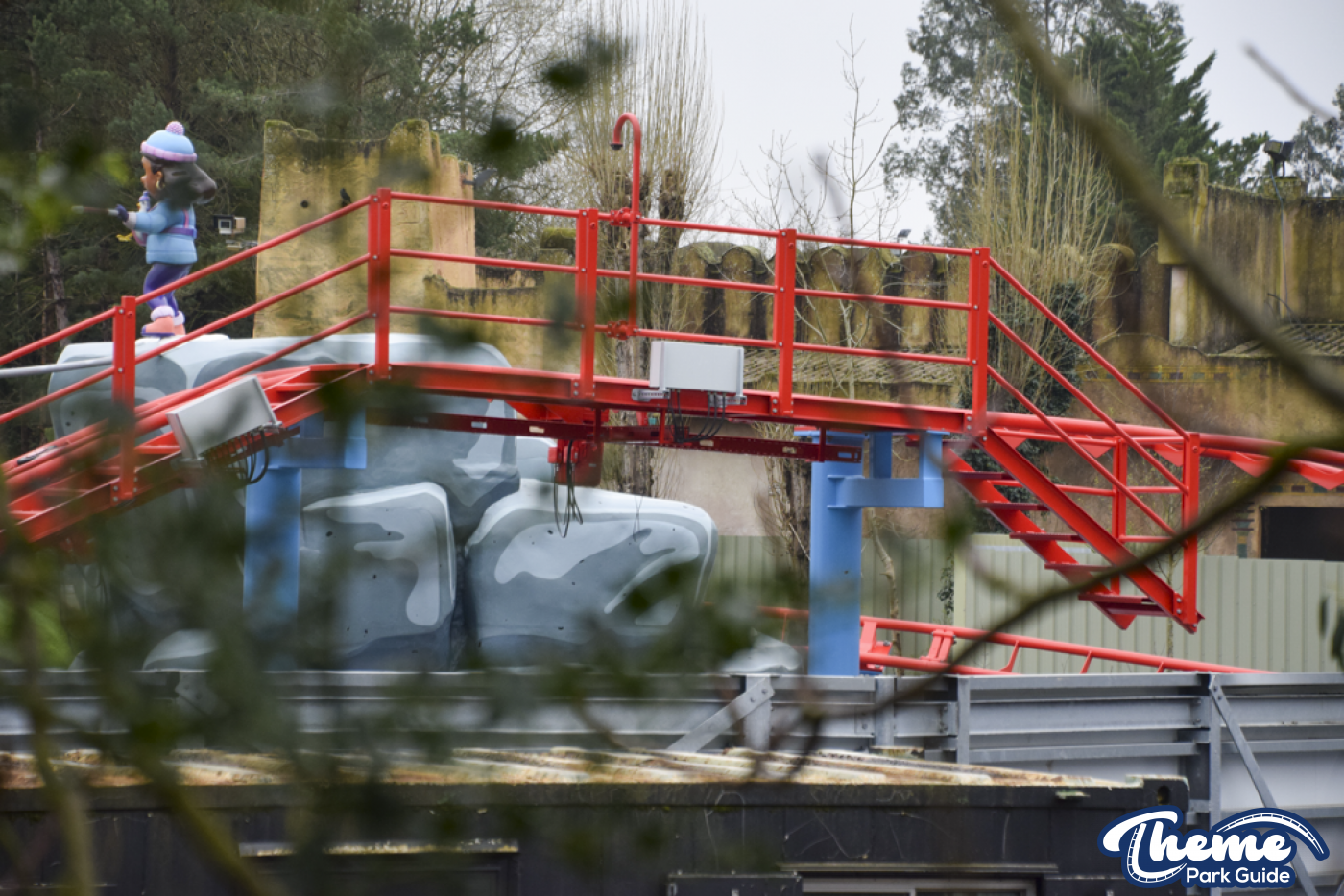 Elsewhere, some of the character models on the mountains surrounding the rollercoaster have had their protective wrapping removed, giving us our first clearer look at some of the theming elements.