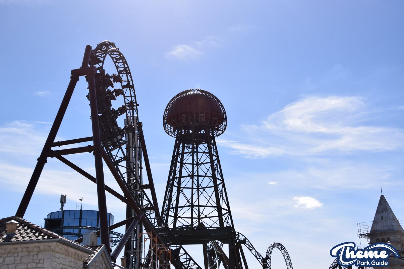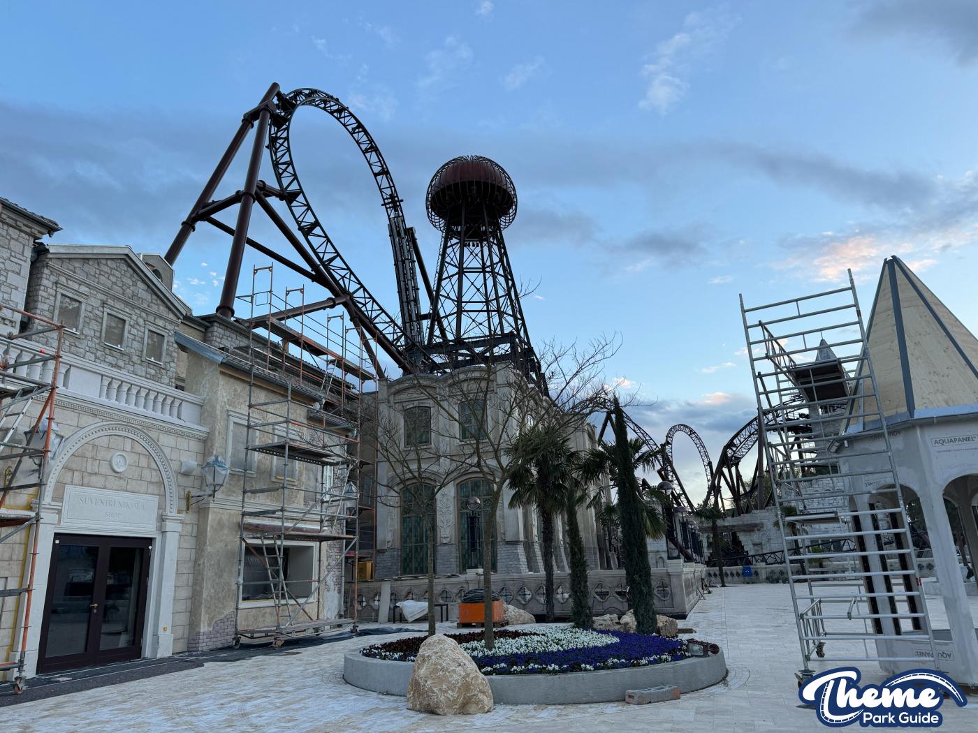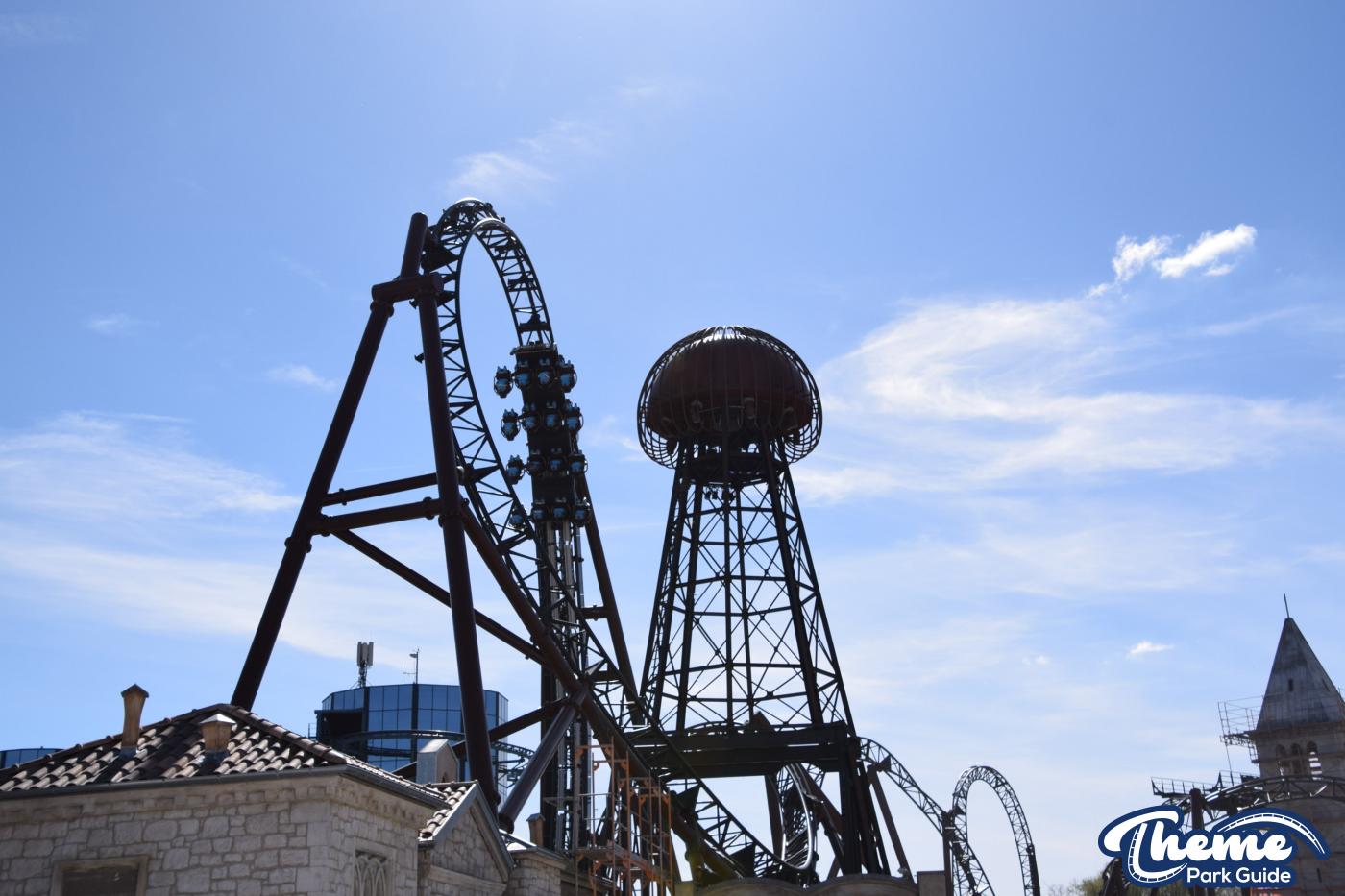 Built by Mack Rides in collaboration with Rimac, Voltron features multiple launches, seven inversions, and a record‑breaking steep launch angle. From inside the Croatian-themed area, visitors could see the coaster’s dramatic “Voltron” spires and explore parts of the immersive queue and themed landscaping.